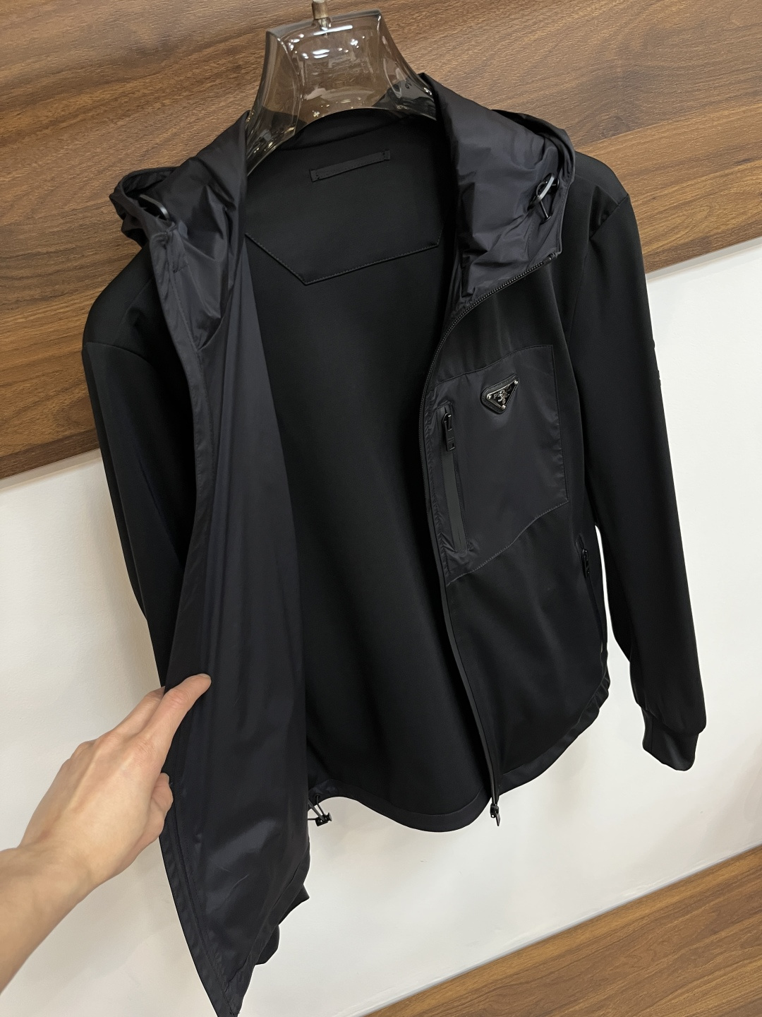 这款衣服是AAAAA 1:1 质量 (非常棒). 使用了和原版一模一样的材料. 商标部分也保持了和普拉达/Prada一样. 图片拍摄是实物衣服拍摄, 您所收到的实物保证和我们图片一模一样.