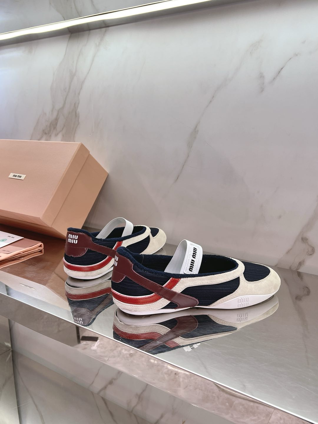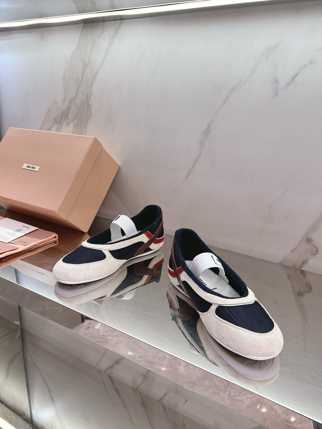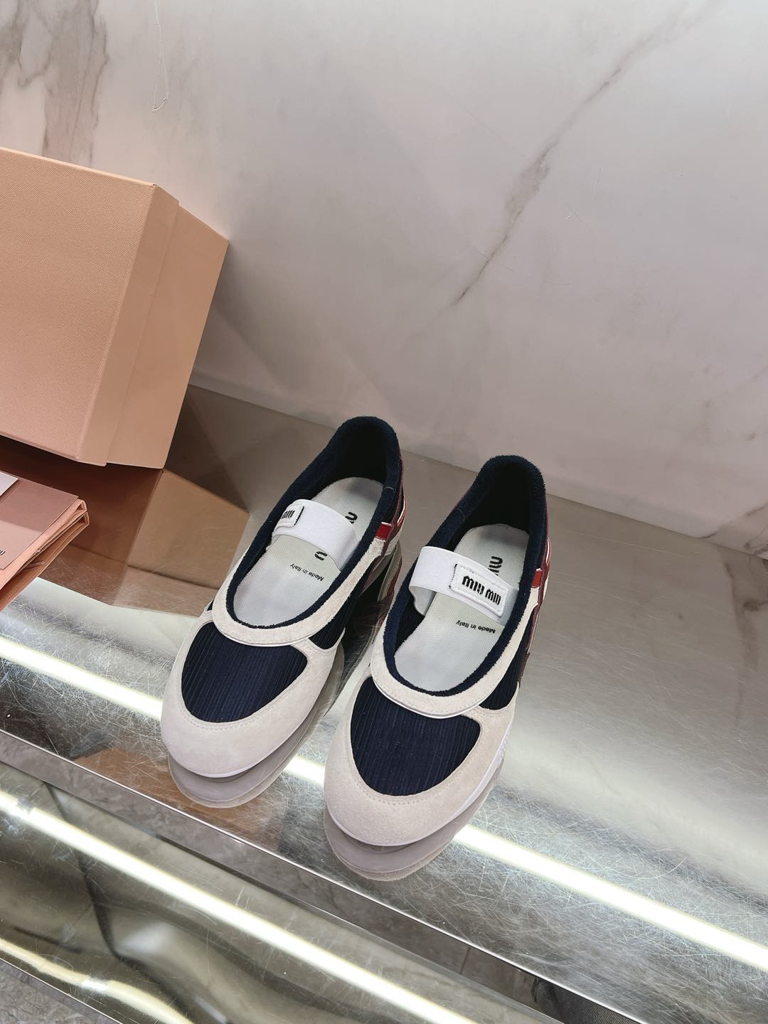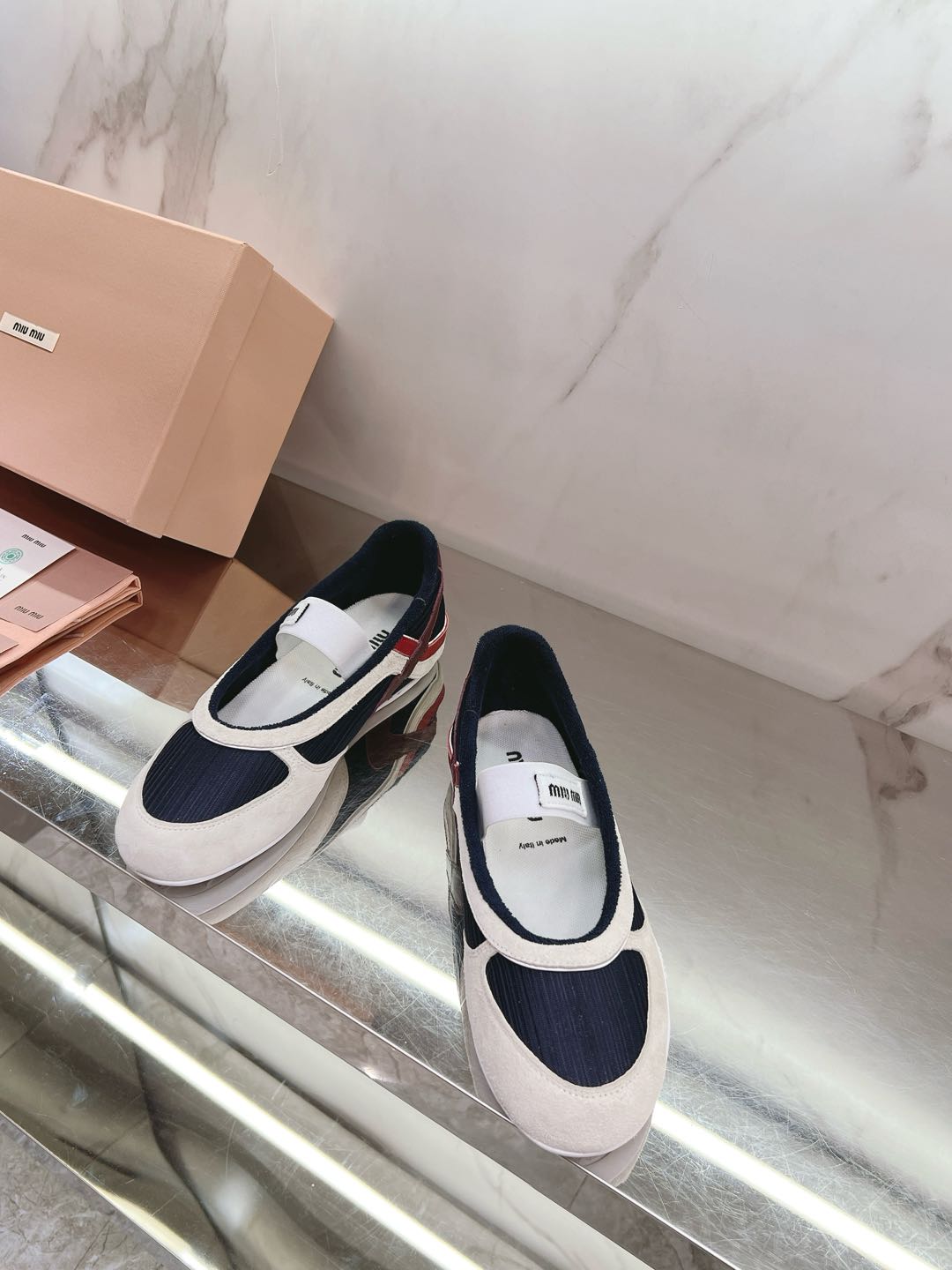这款鞋子是AAAAA 1:1 质量 (非常棒). 使用了和原版一模一样的材料. 商标部分也保持了和缪缪/Miu Miu一样. 图片拍摄是实物鞋子拍摄, 您所收到的实物保证和我们图片一模一样.