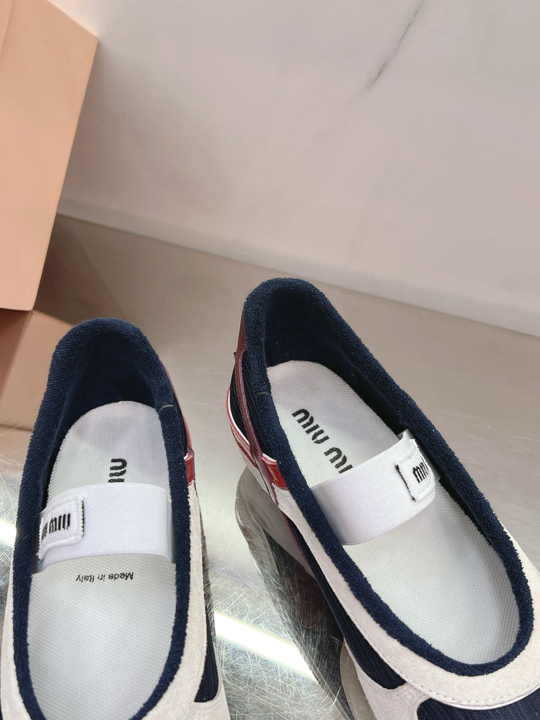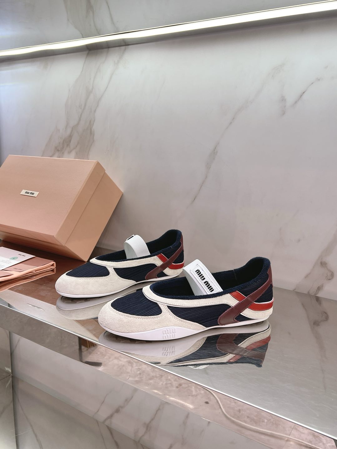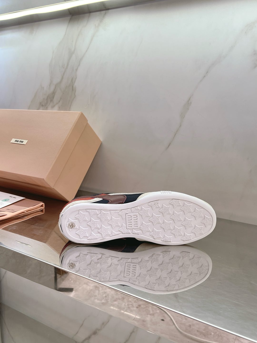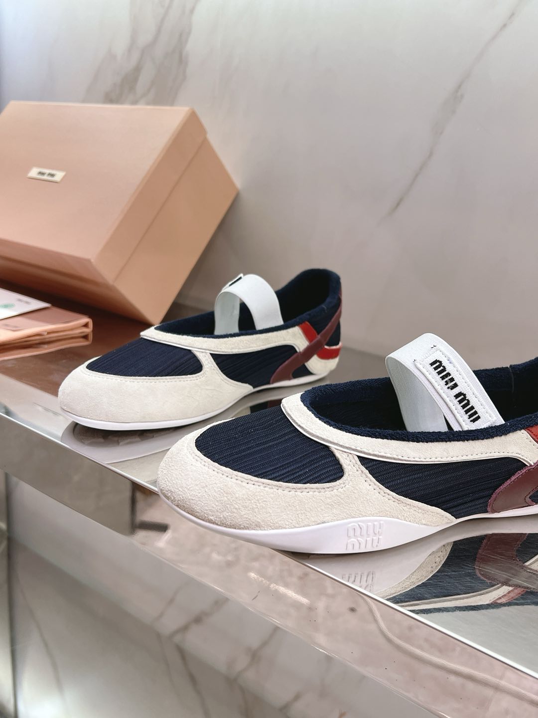 这款鞋子是AAAAA 1:1 质量 (非常棒). 使用了和原版一模一样的材料. 商标部分也保持了和缪缪/Miu Miu一样. 图片拍摄是实物鞋子拍摄, 您所收到的实物保证和我们图片一模一样.
