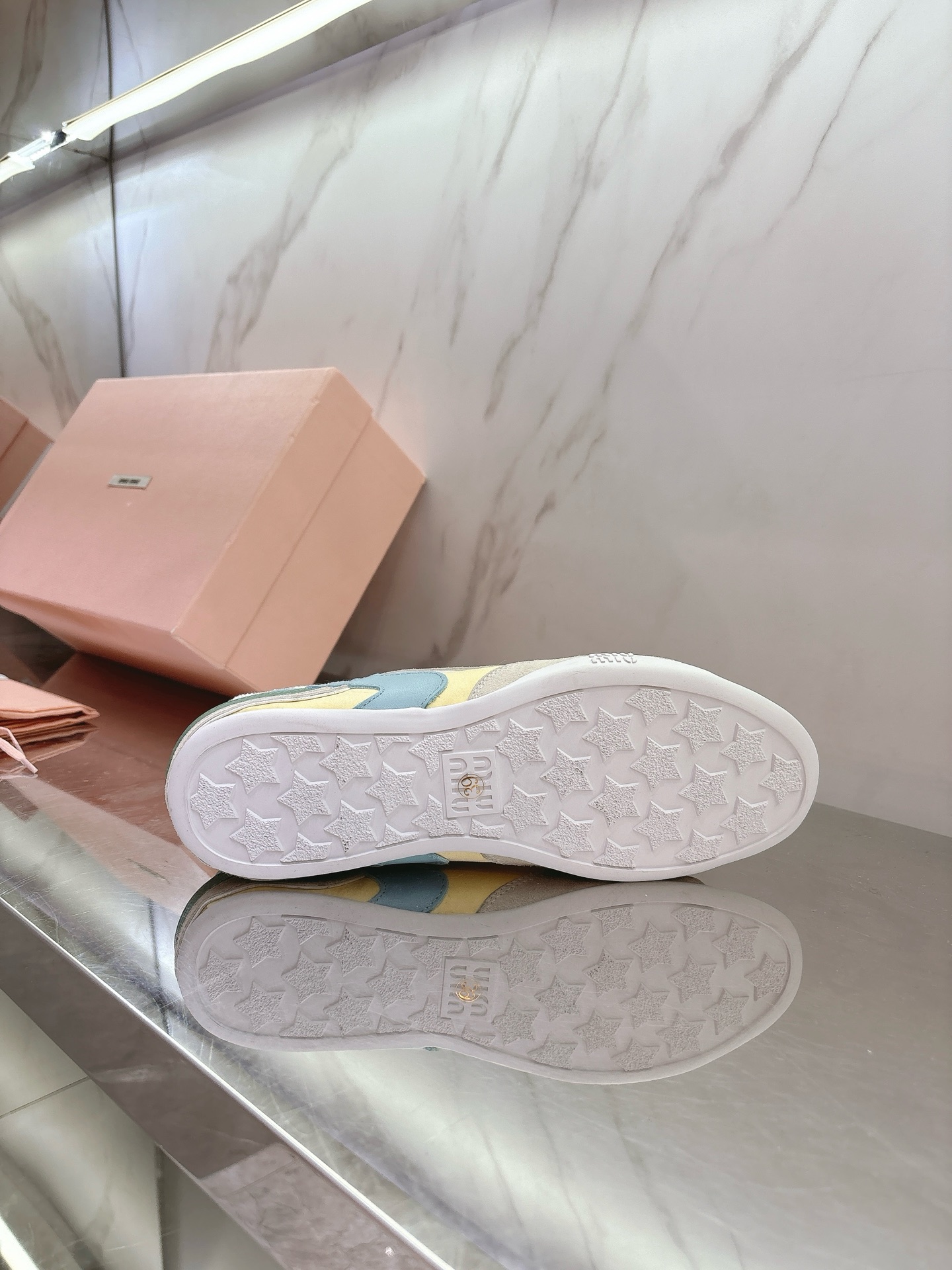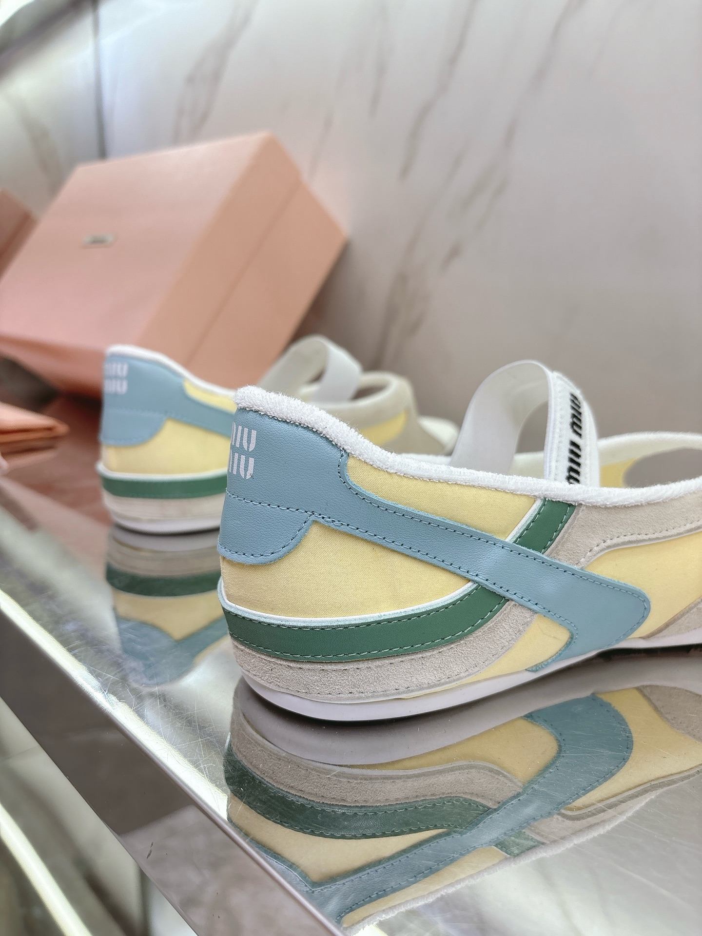 这款鞋子是AAAAA 1:1 质量 (非常棒). 使用了和原版一模一样的材料. 商标部分也保持了和缪缪/Miu Miu一样. 图片拍摄是实物鞋子拍摄, 您所收到的实物保证和我们图片一模一样.