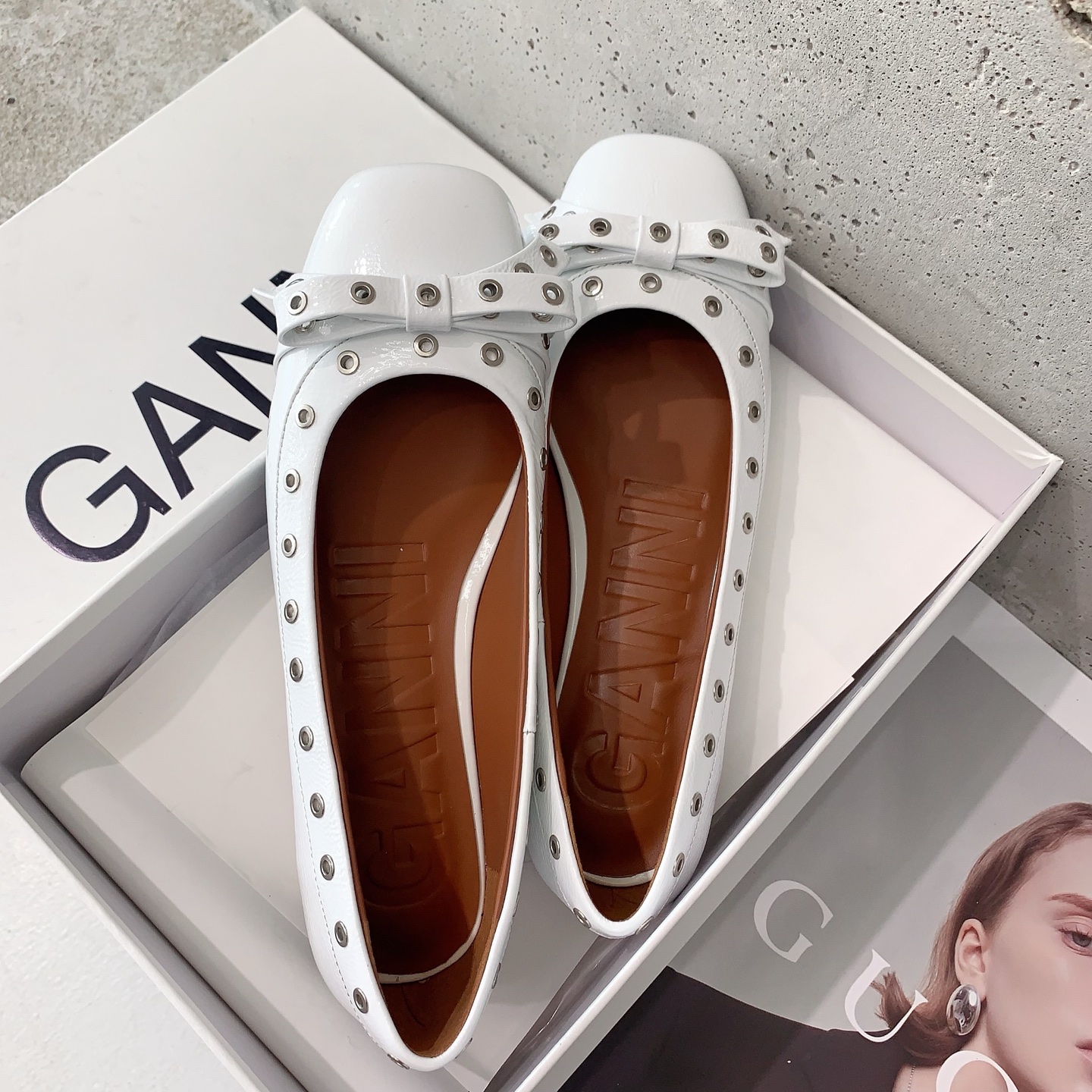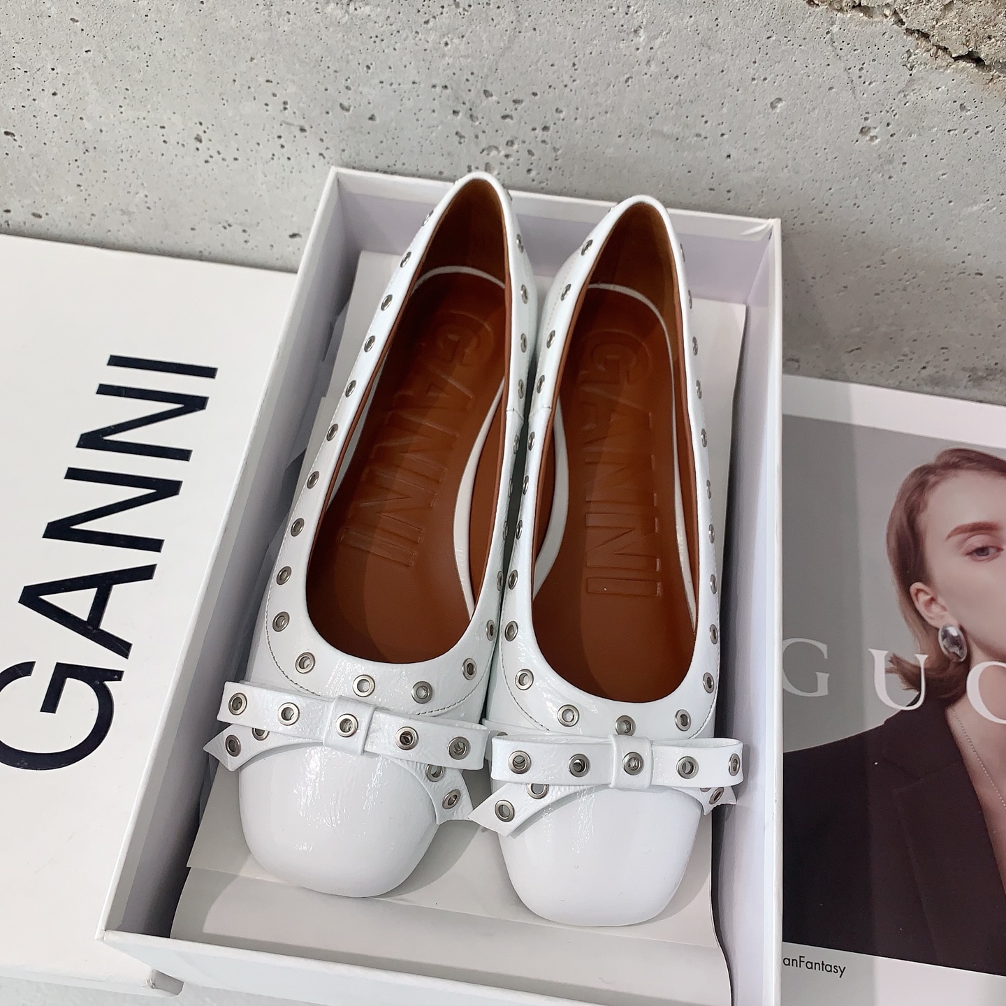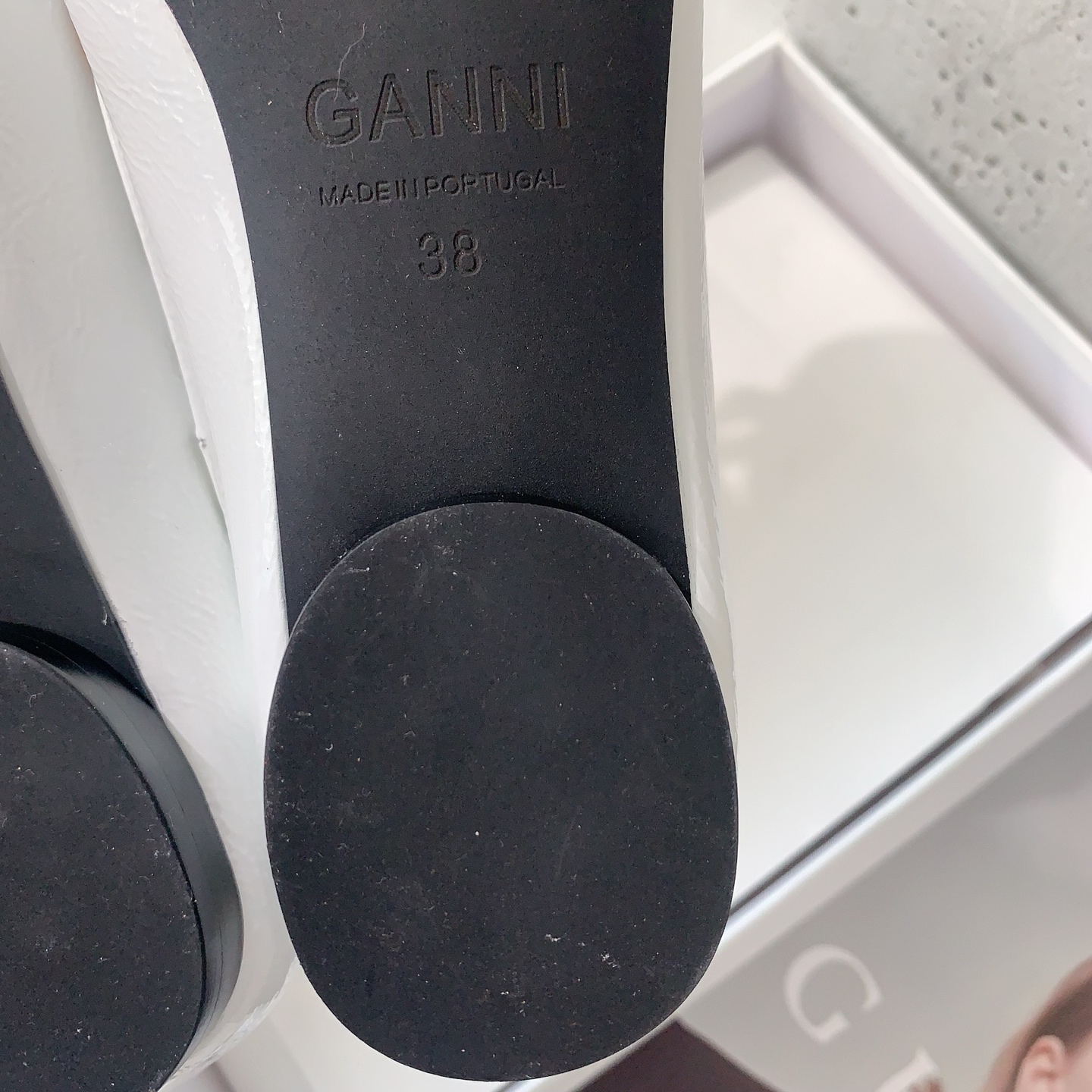这款鞋子是AAAAA 1:1 质量 (非常棒). 使用了和原版一模一样的材料. 商标部分也保持了和GANNI一样. 图片拍摄是实物鞋子拍摄, 您所收到的实物保证和我们图片一模一样.