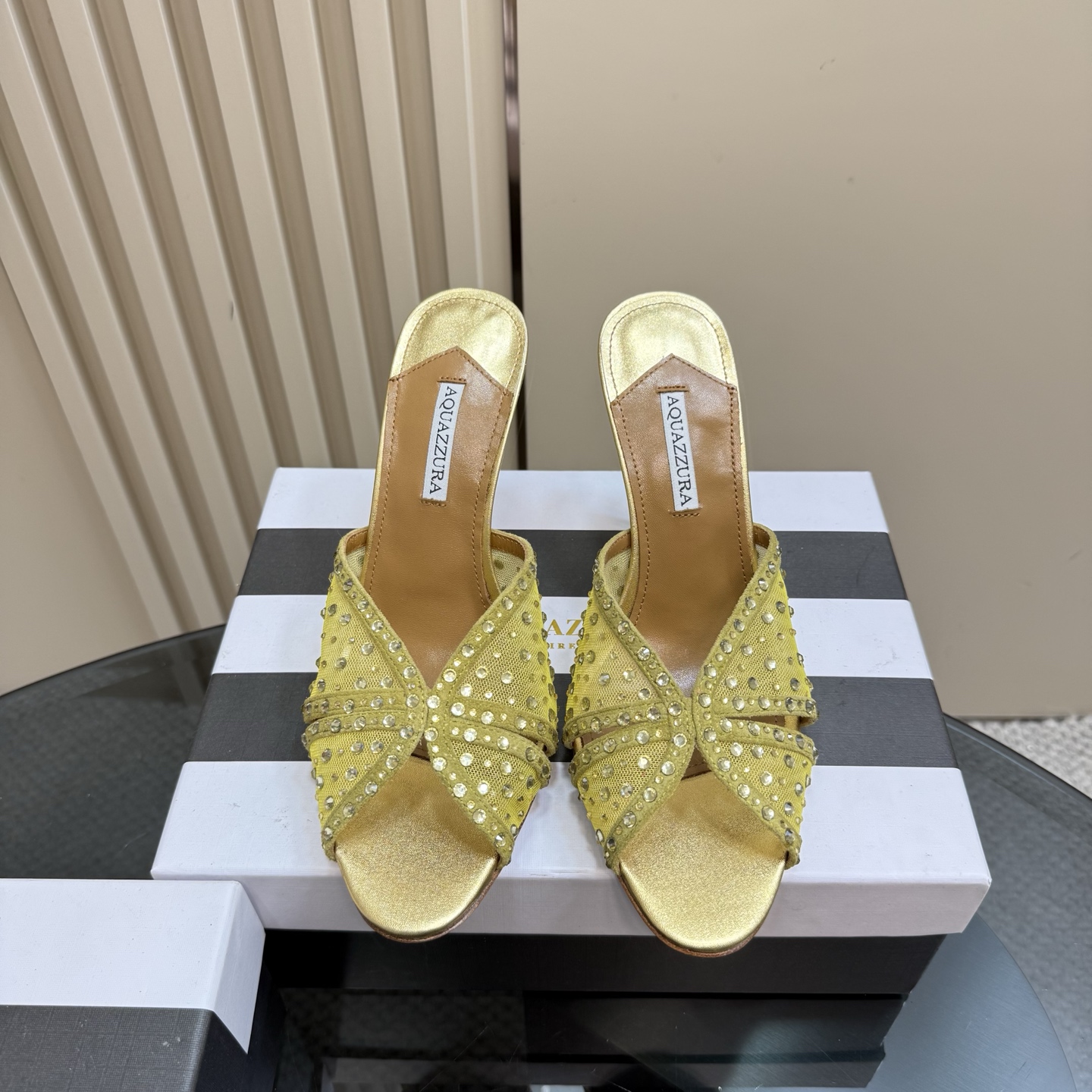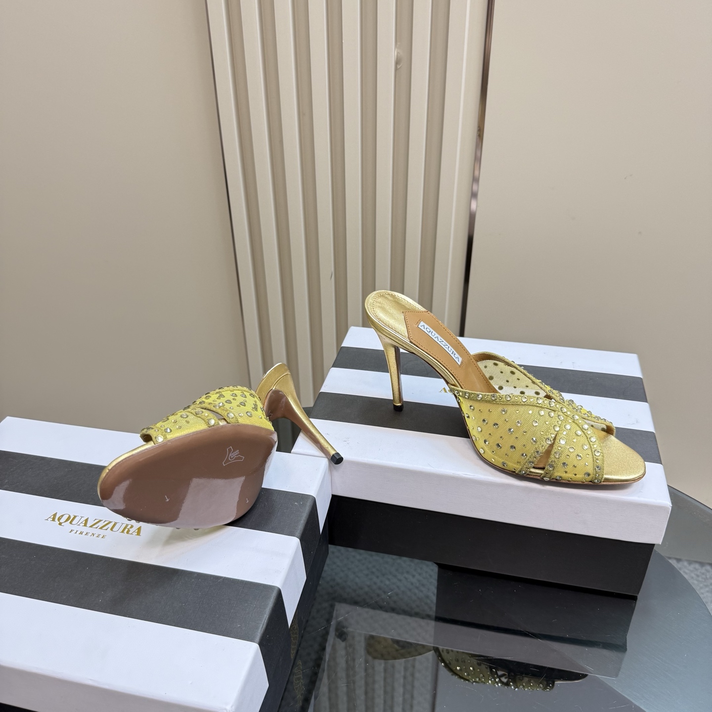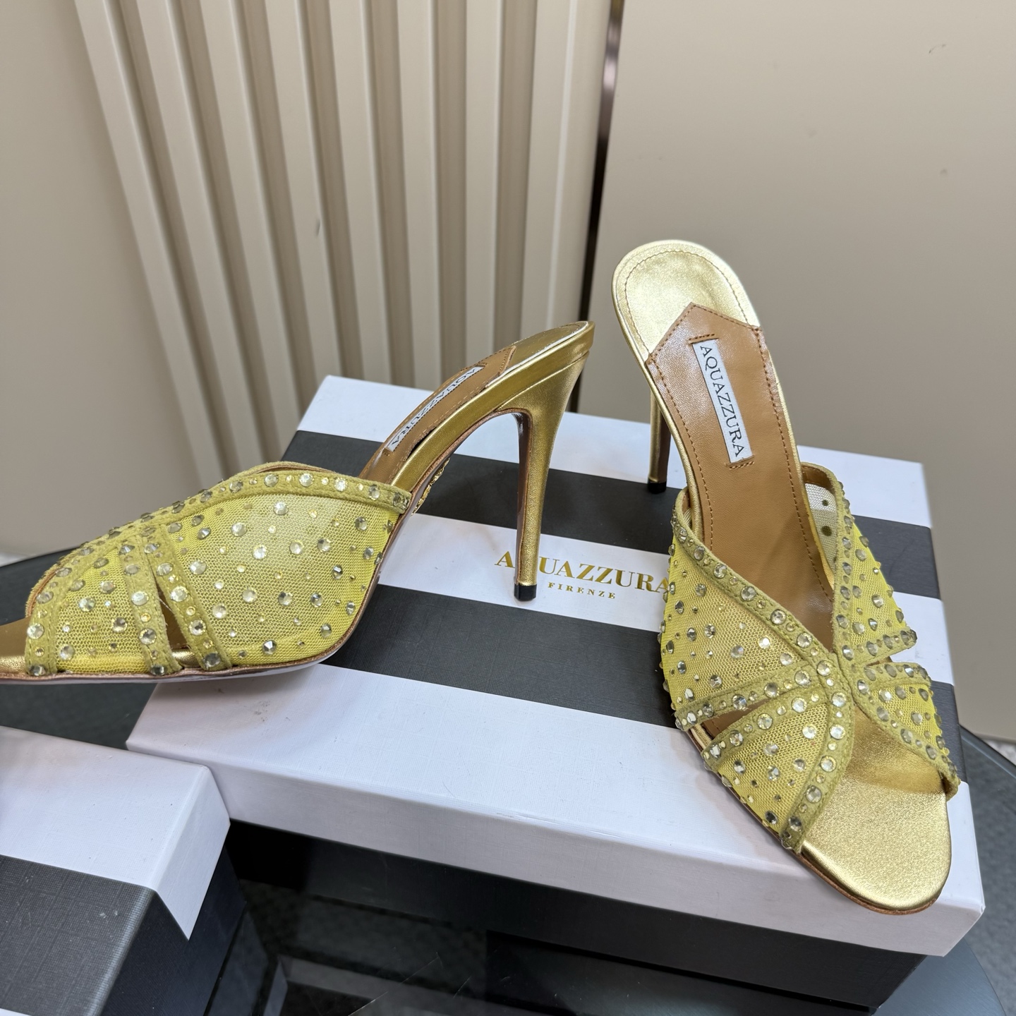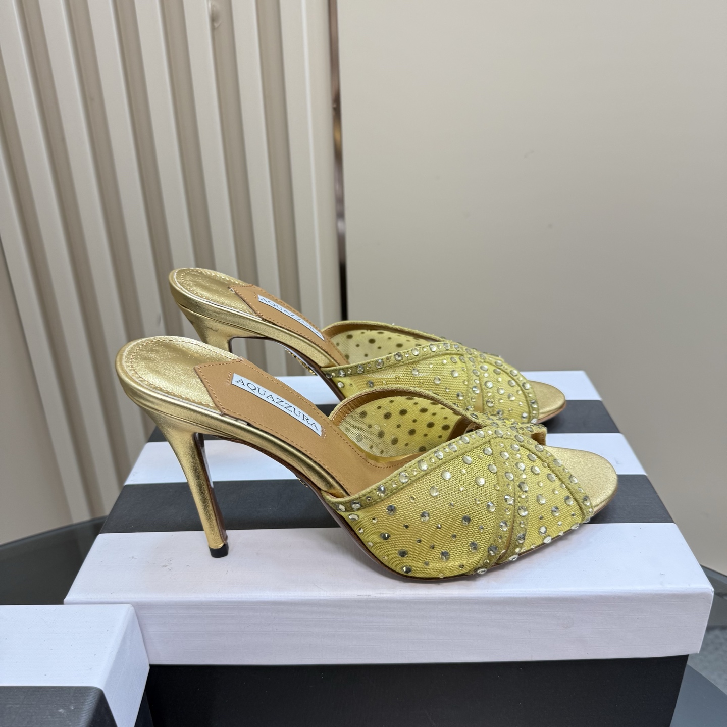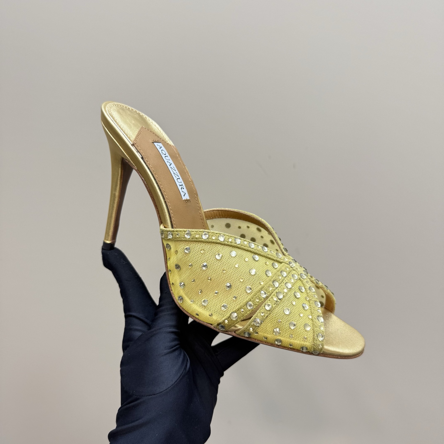 这款鞋子是AAAAA 1:1 质量 (非常棒). 使用了和原版一模一样的材料. 商标部分也保持了和Aquazzura一样. 图片拍摄是实物鞋子拍摄, 您所收到的实物保证和我们图片一模一样.