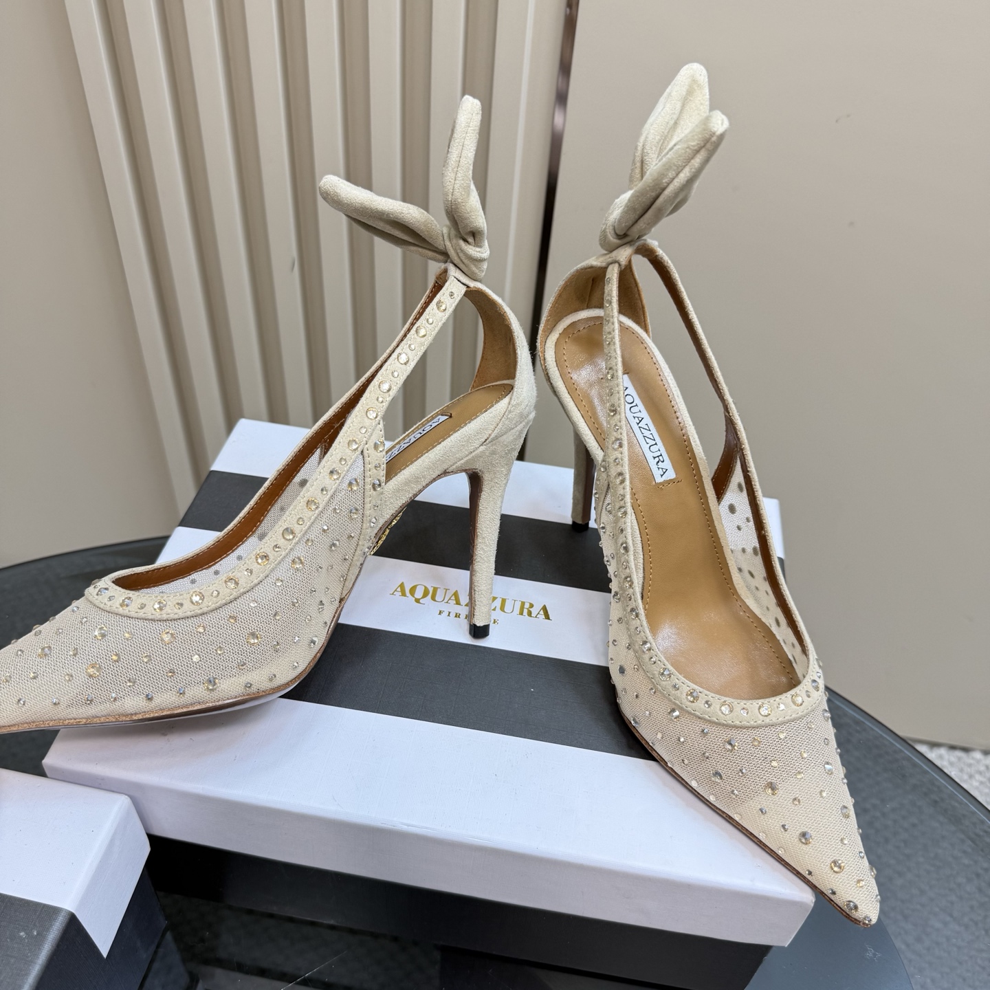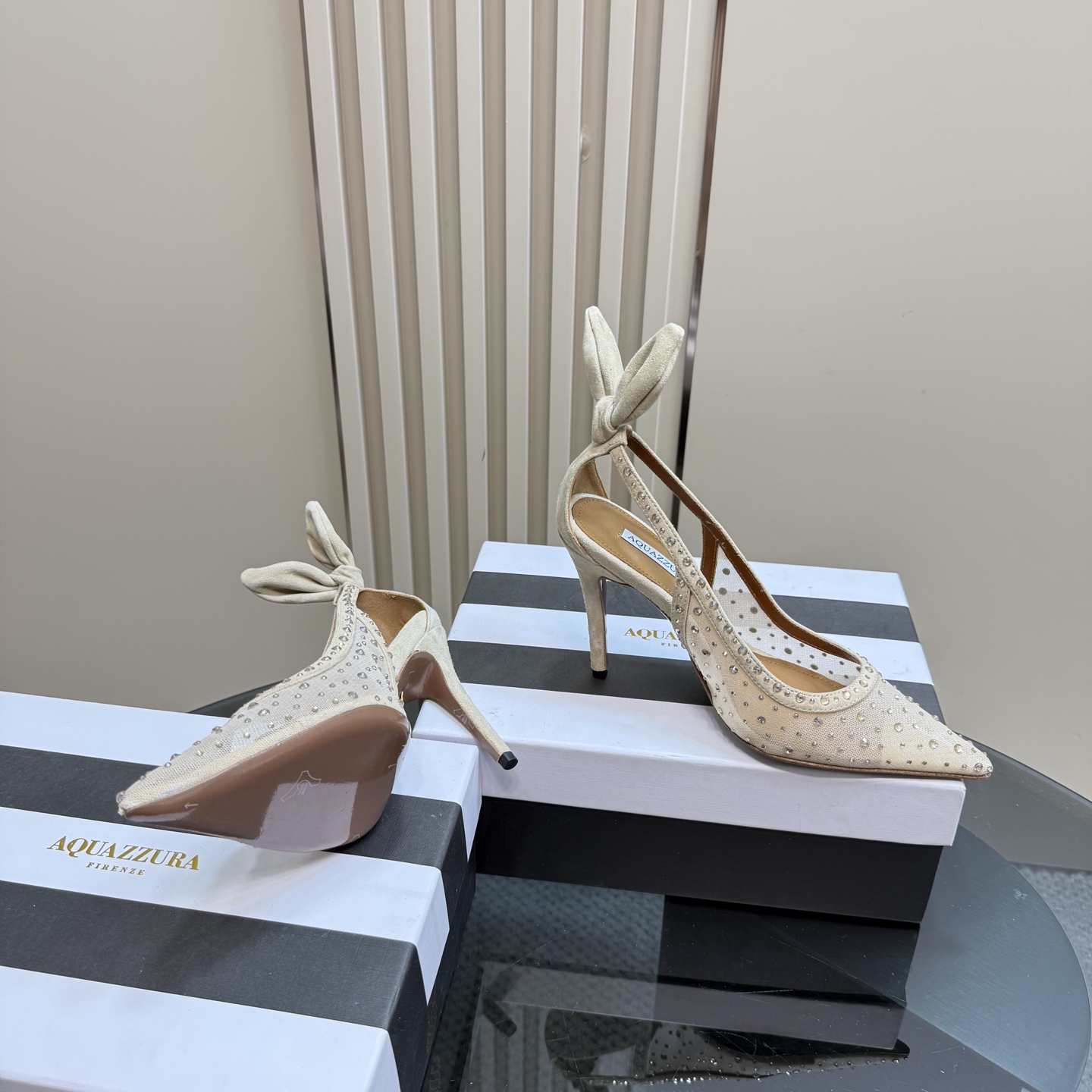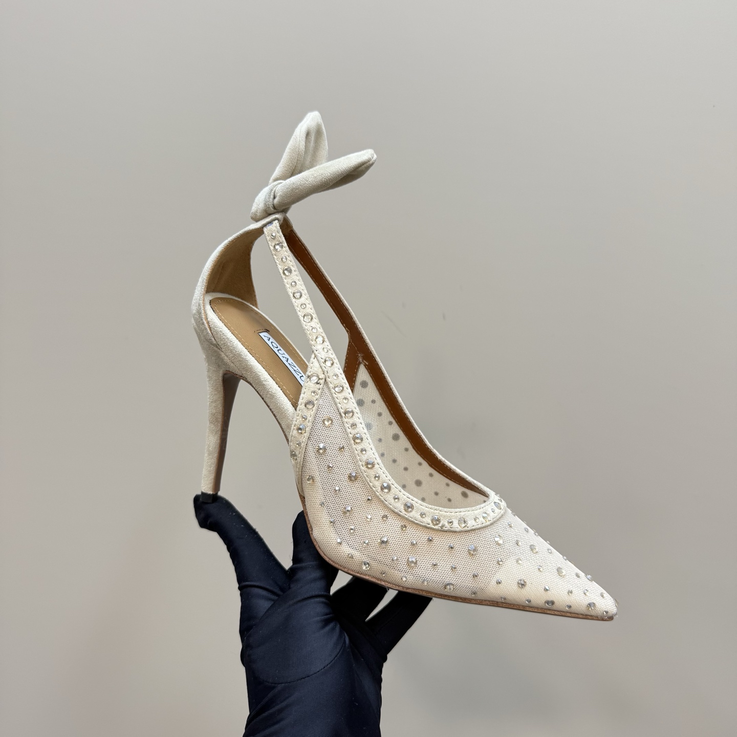 这款鞋子是AAAAA 1:1 质量 (非常棒). 使用了和原版一模一样的材料. 商标部分也保持了和Aquazzura一样. 图片拍摄是实物鞋子拍摄, 您所收到的实物保证和我们图片一模一样.