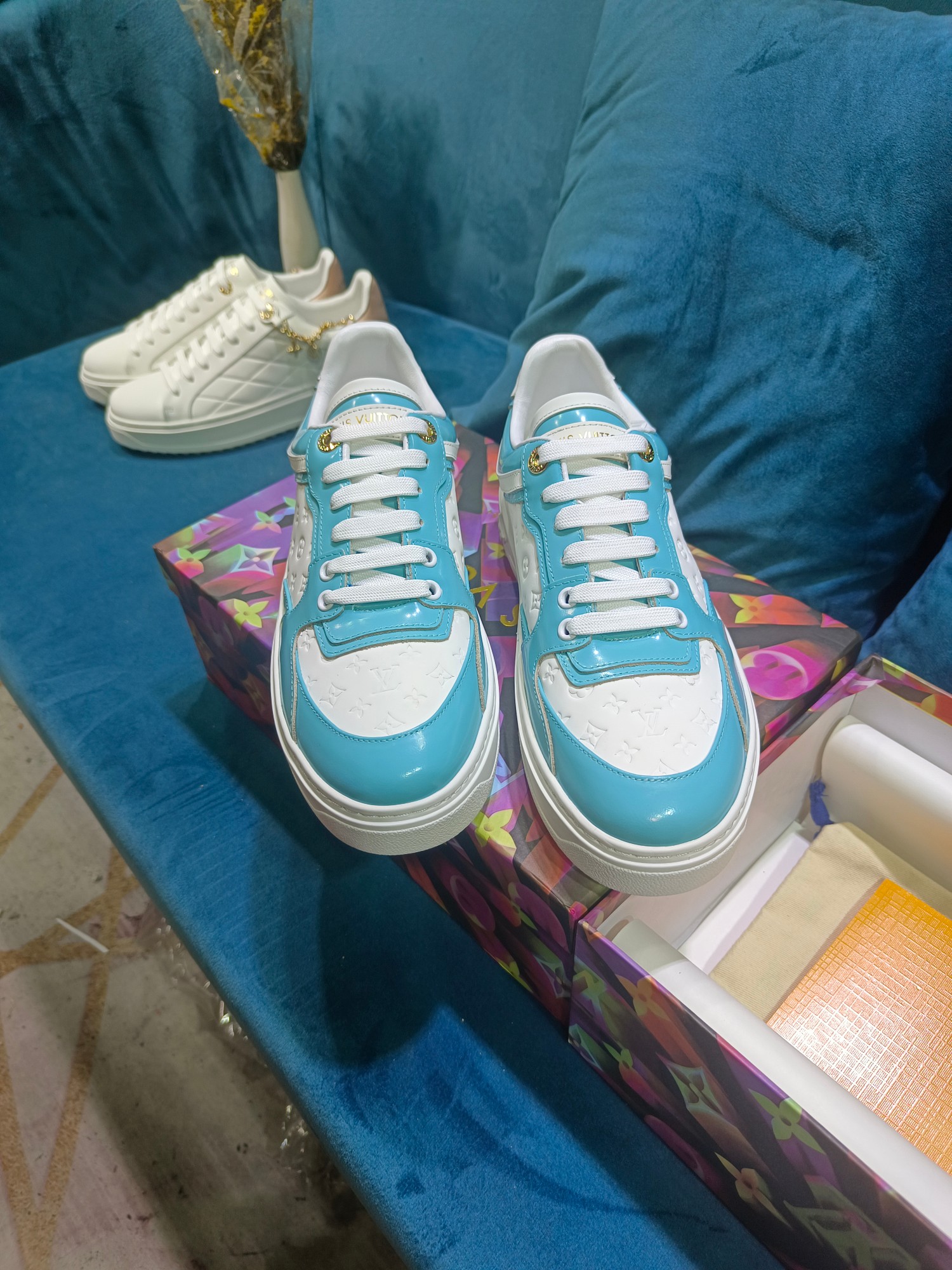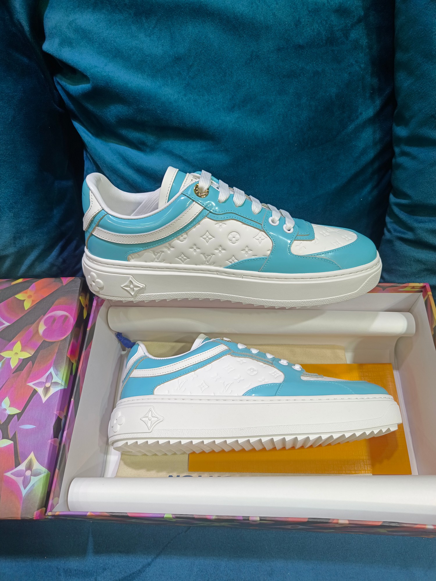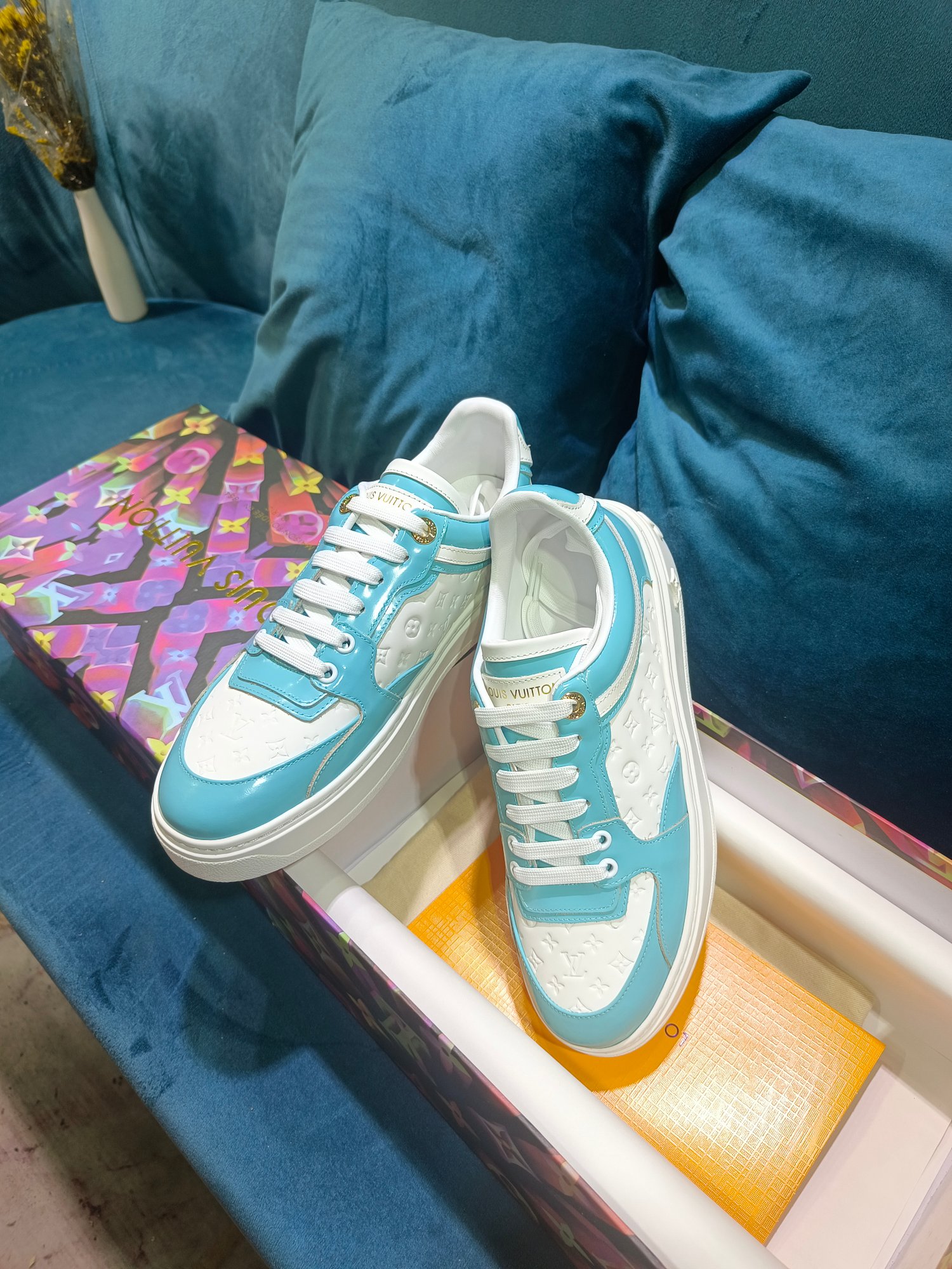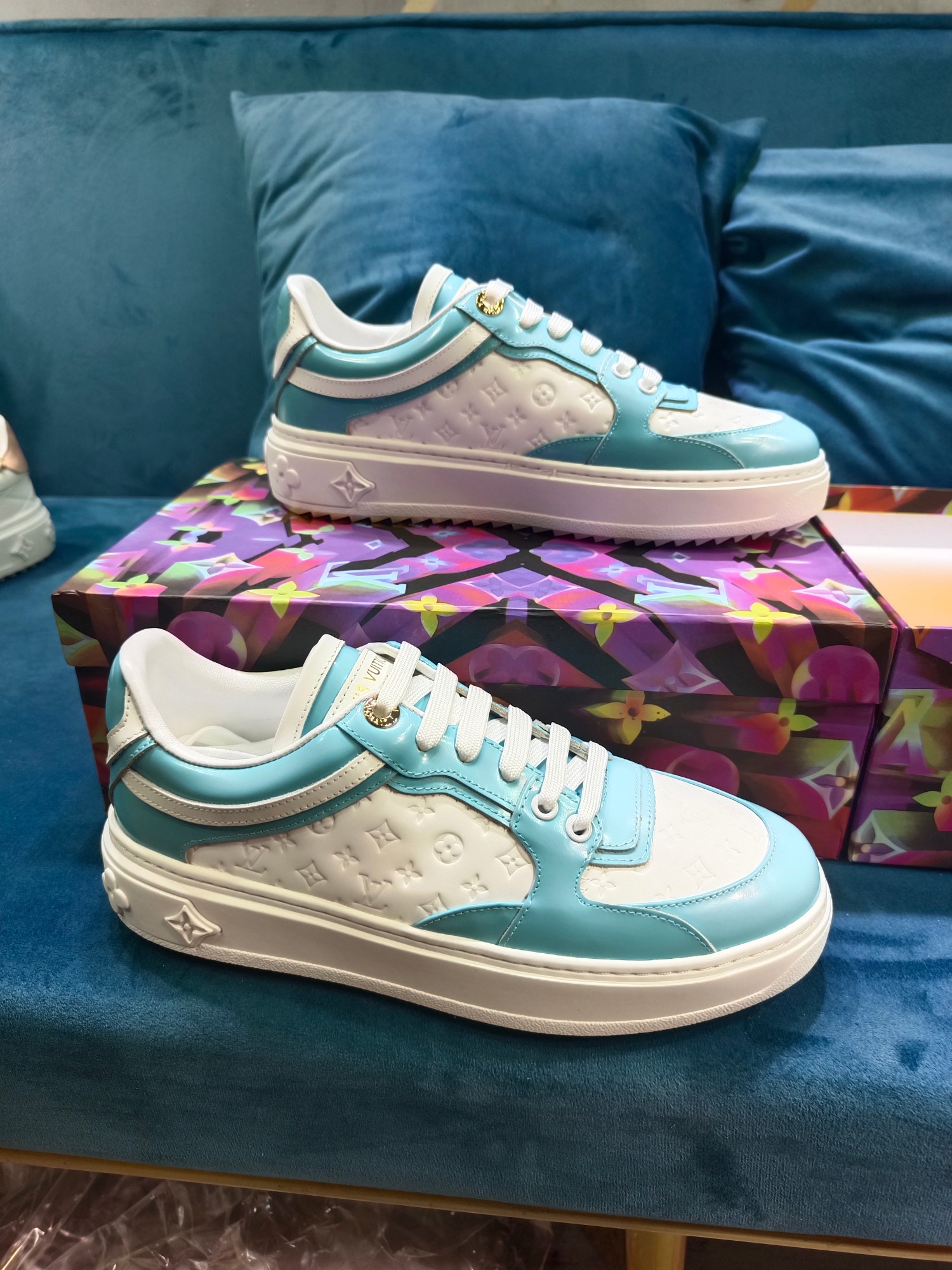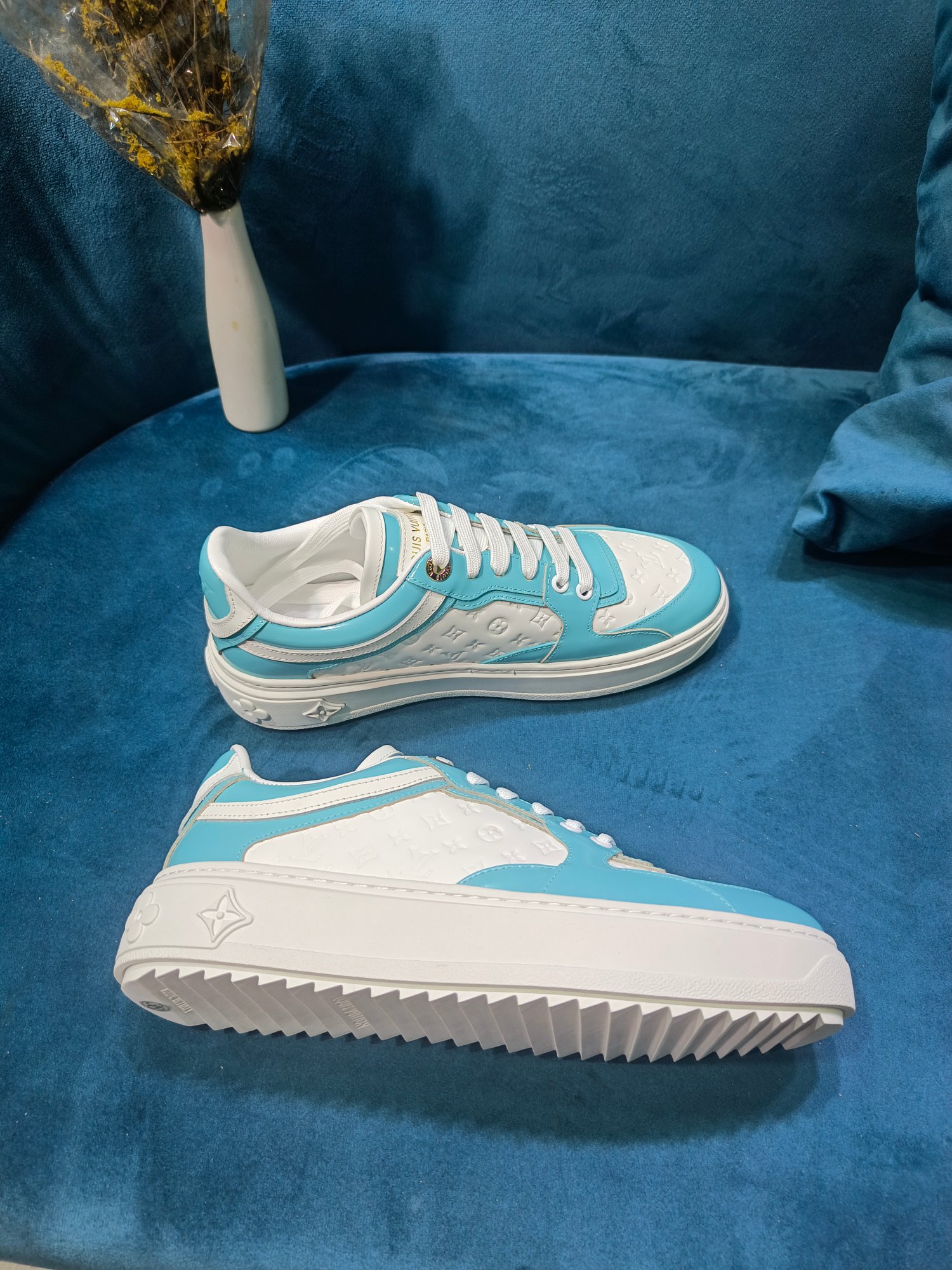 这款鞋子是AAAAA 1:1 质量 (非常棒). 使用了和原版一模一样的材料. 商标部分也保持了和路易威登/Louis Vuitton一样. 图片拍摄是实物鞋子拍摄, 您所收到的实物保证和我们图片一模一样.