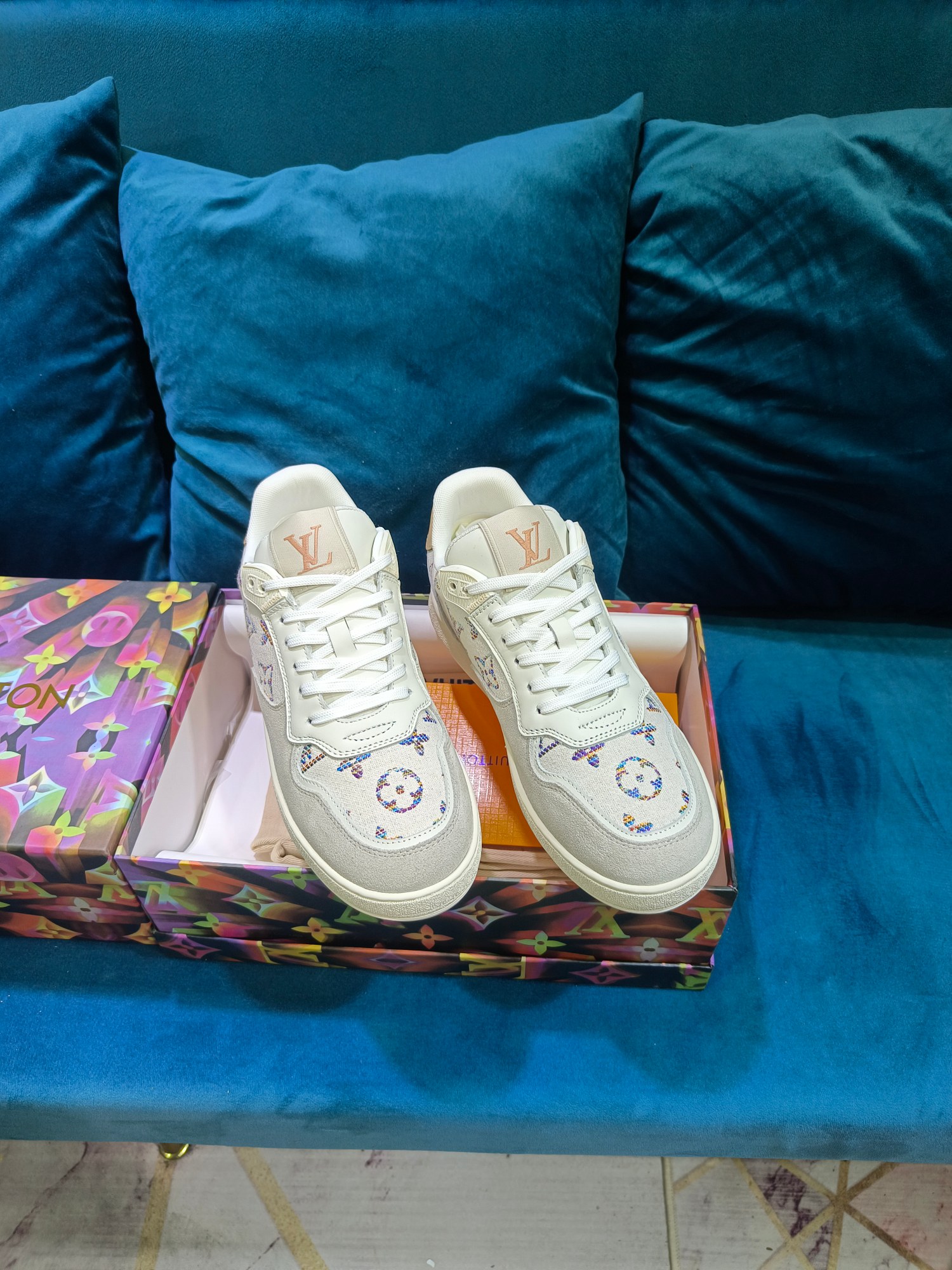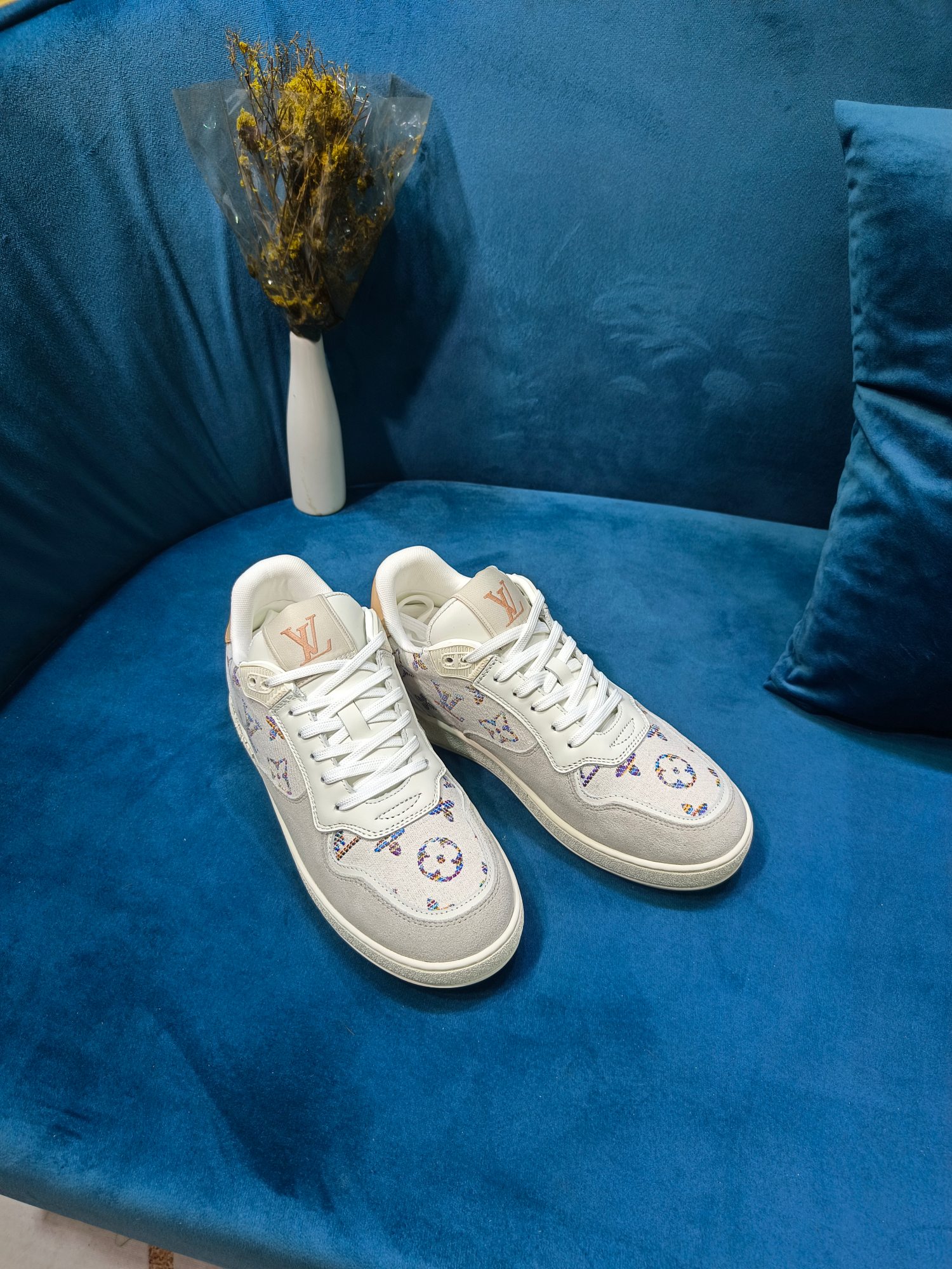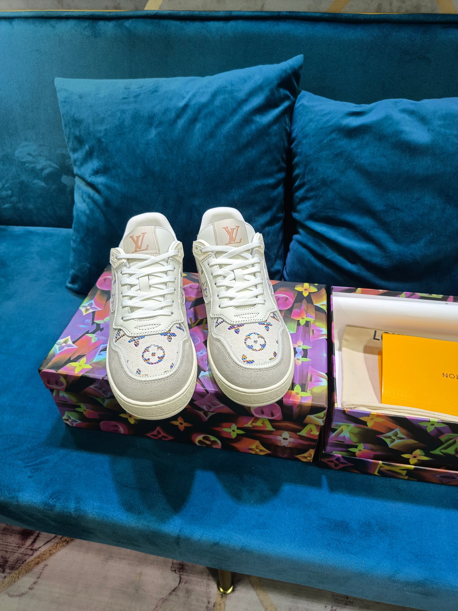 这款鞋子是AAAAA 1:1 质量 (非常棒). 使用了和原版一模一样的材料. 商标部分也保持了和路易威登/Louis Vuitton一样. 图片拍摄是实物鞋子拍摄, 您所收到的实物保证和我们图片一模一样.