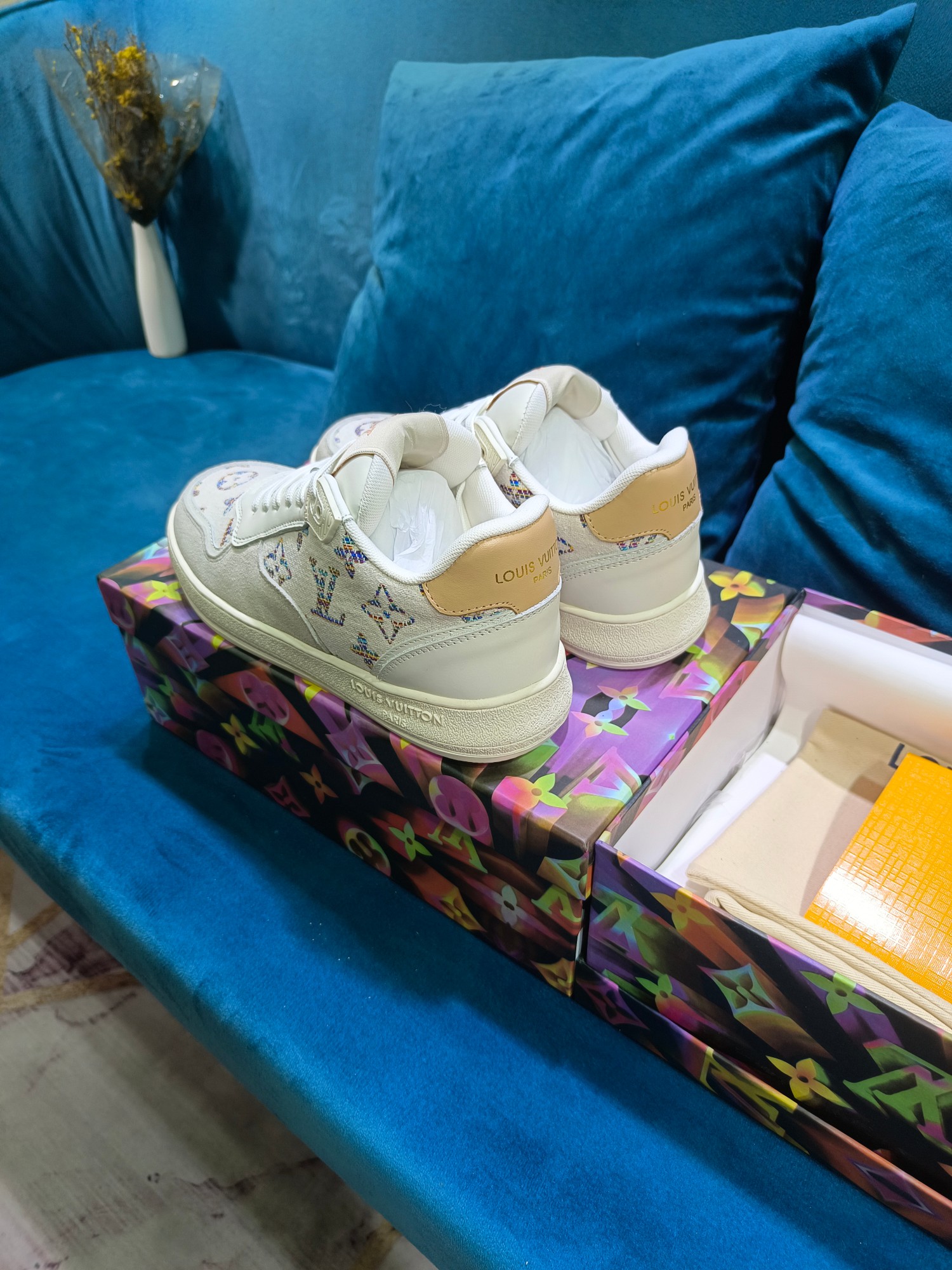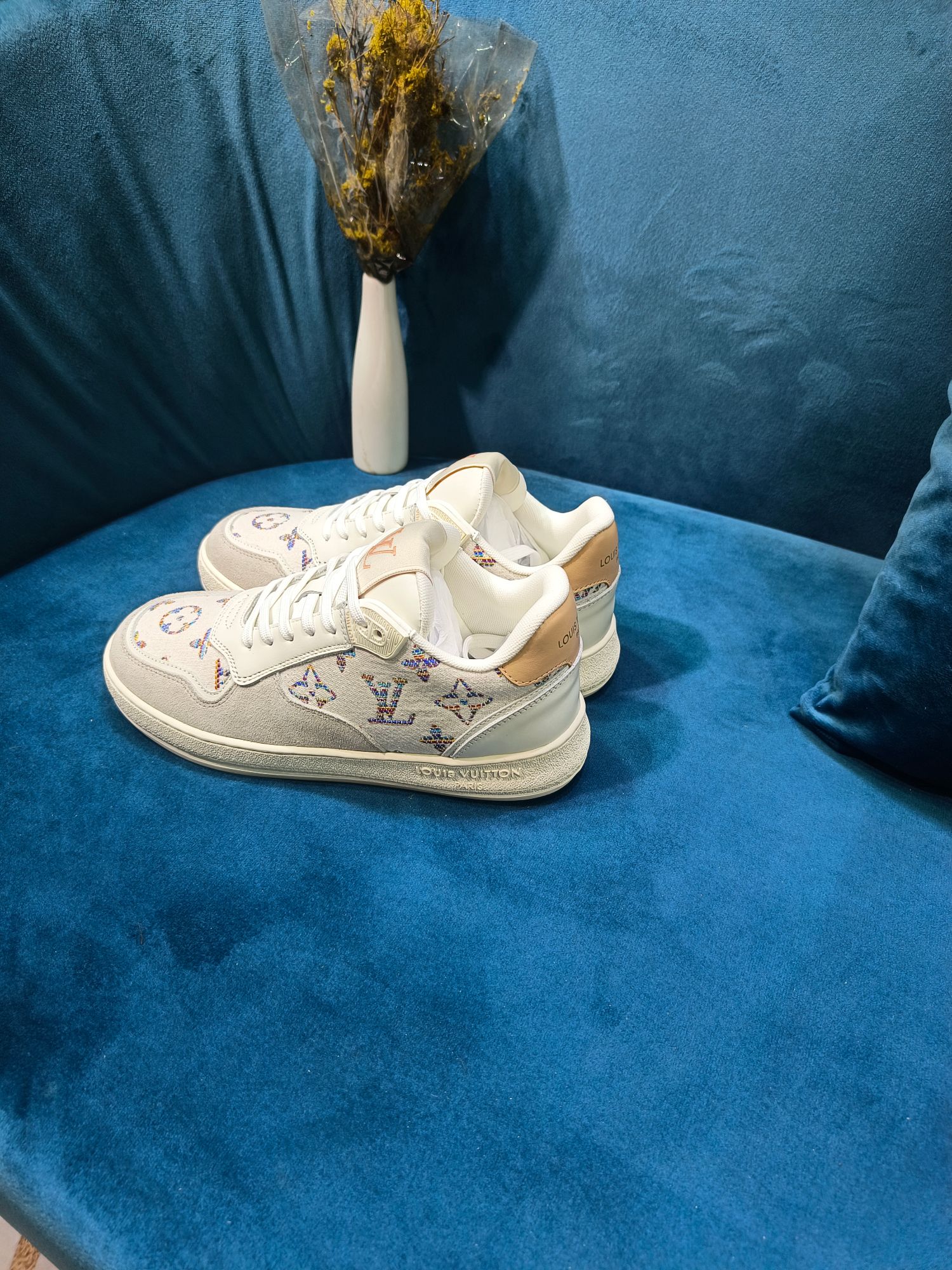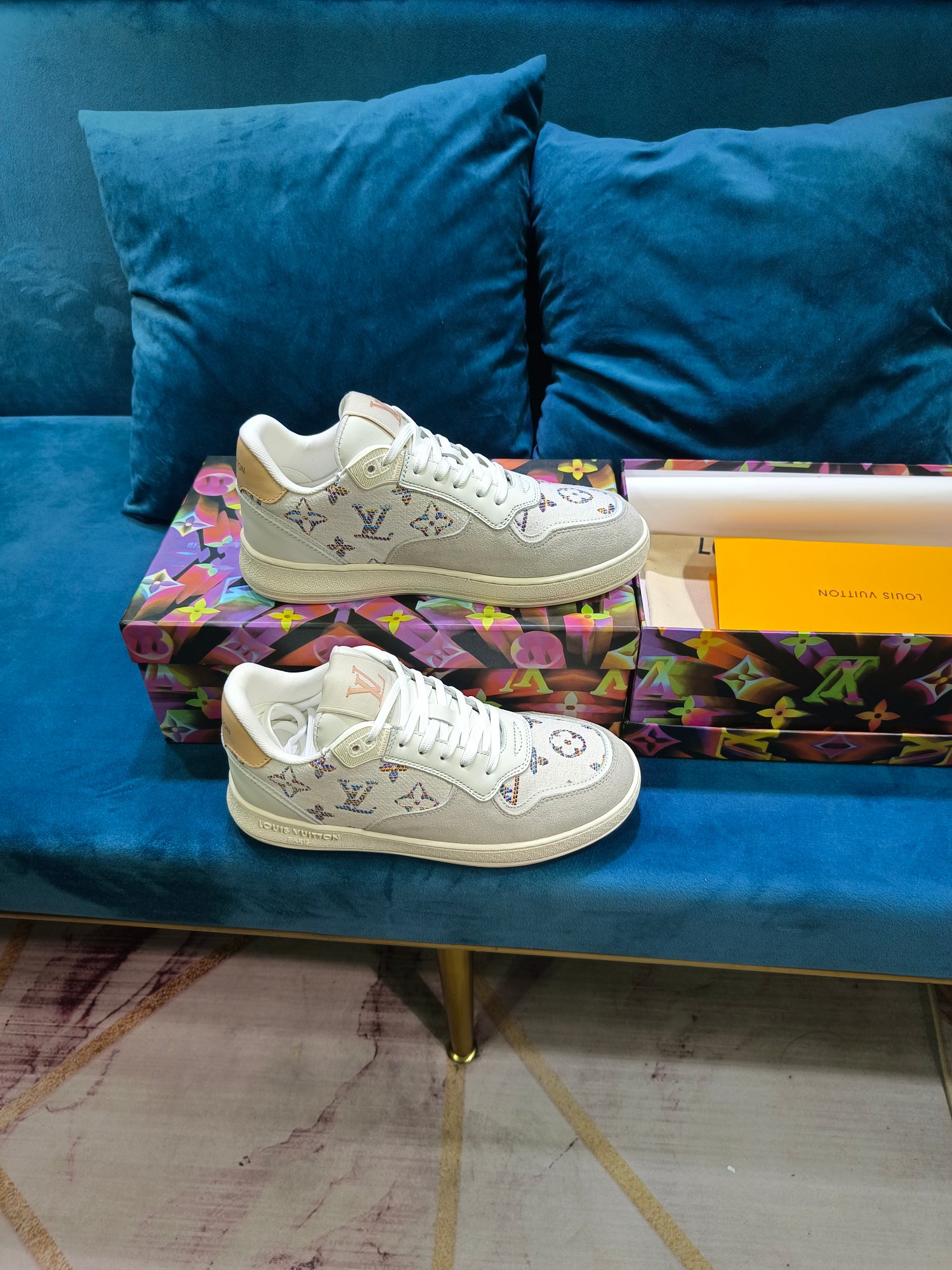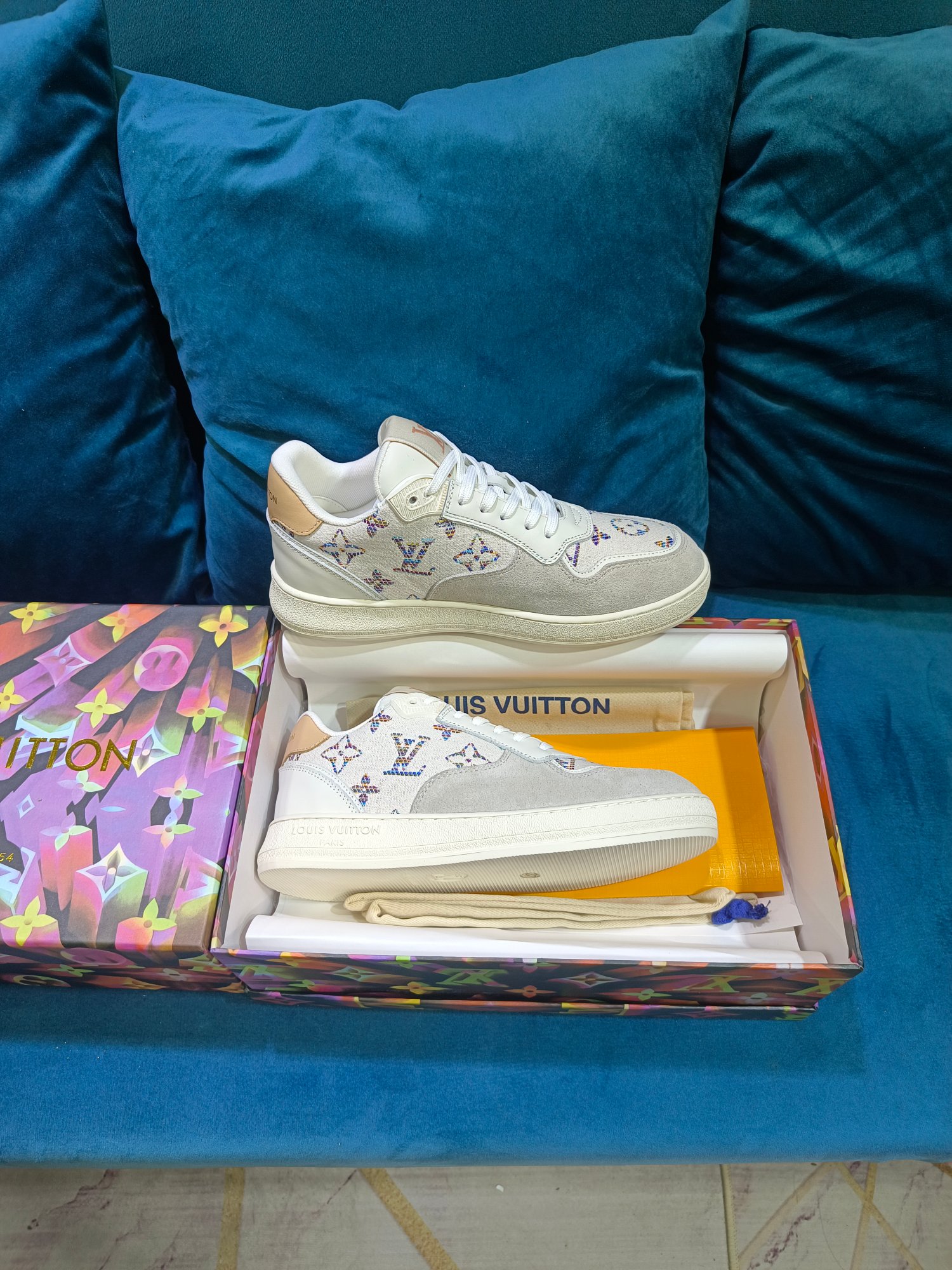 这款鞋子是AAAAA 1:1 质量 (非常棒). 使用了和原版一模一样的材料. 商标部分也保持了和路易威登/Louis Vuitton一样. 图片拍摄是实物鞋子拍摄, 您所收到的实物保证和我们图片一模一样.
