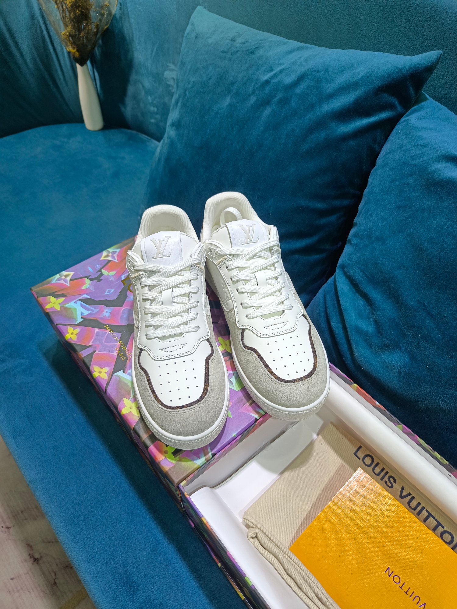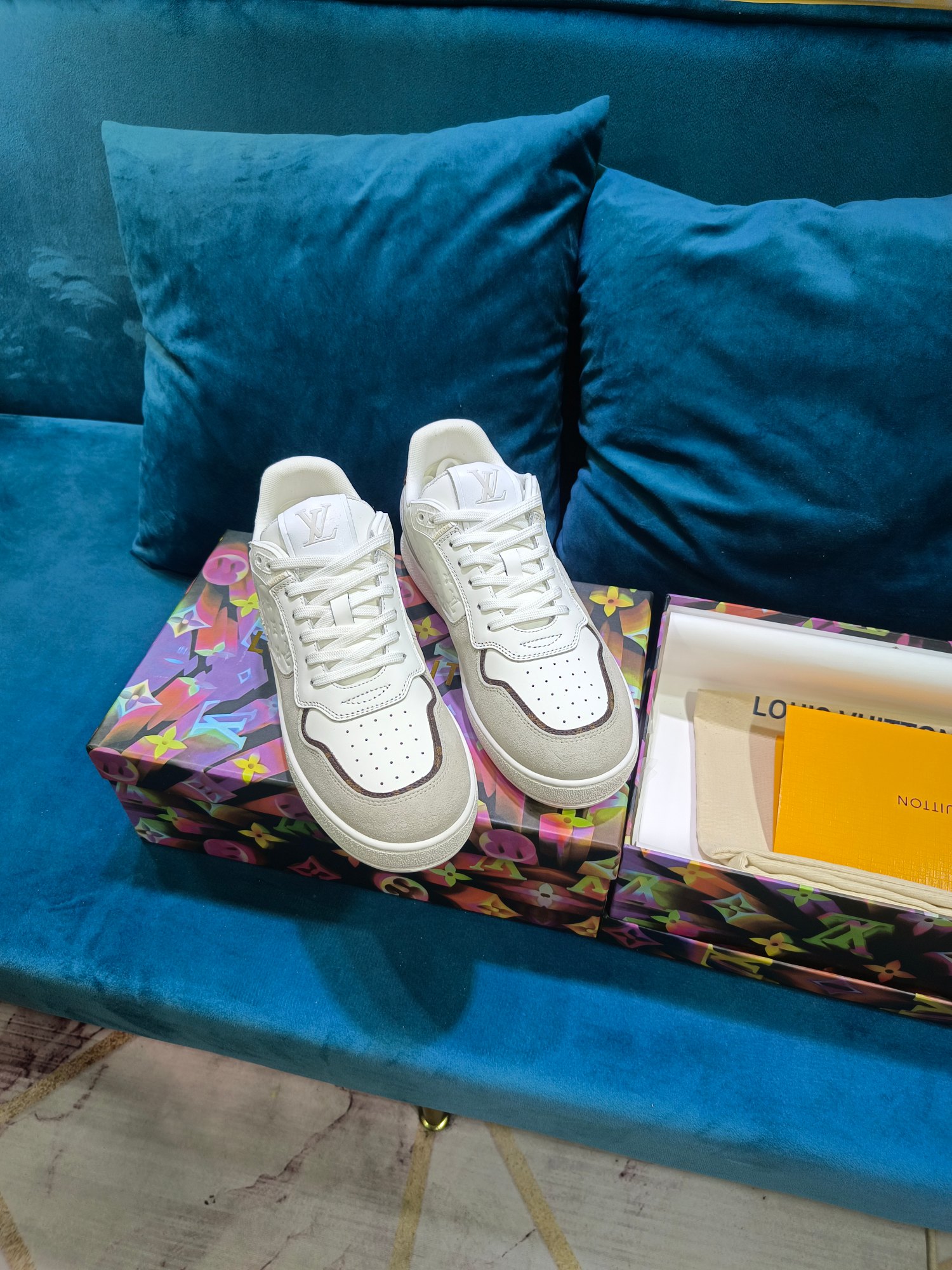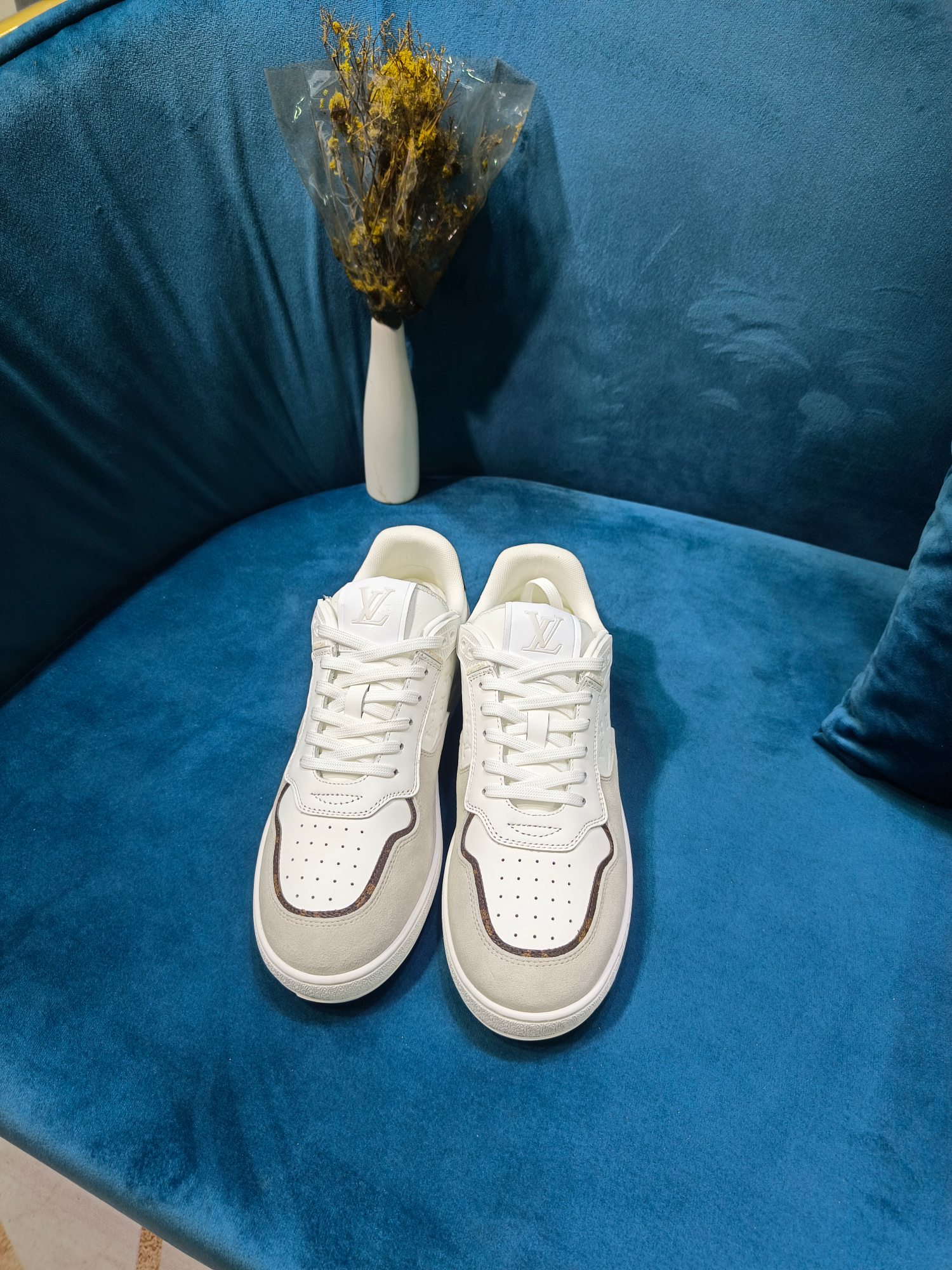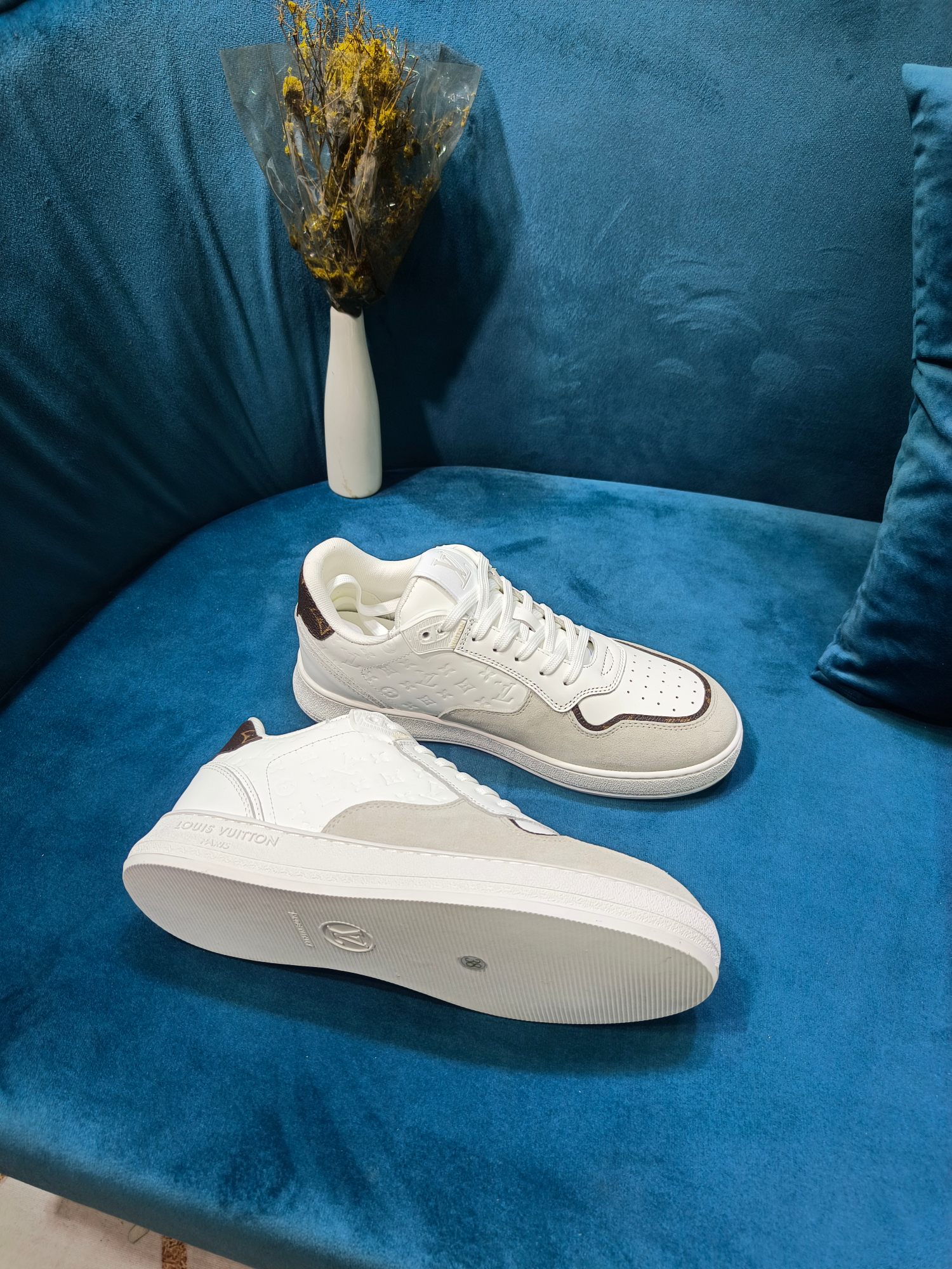 这款鞋子是AAAAA 1:1 质量 (非常棒). 使用了和原版一模一样的材料. 商标部分也保持了和路易威登/Louis Vuitton一样. 图片拍摄是实物鞋子拍摄, 您所收到的实物保证和我们图片一模一样.