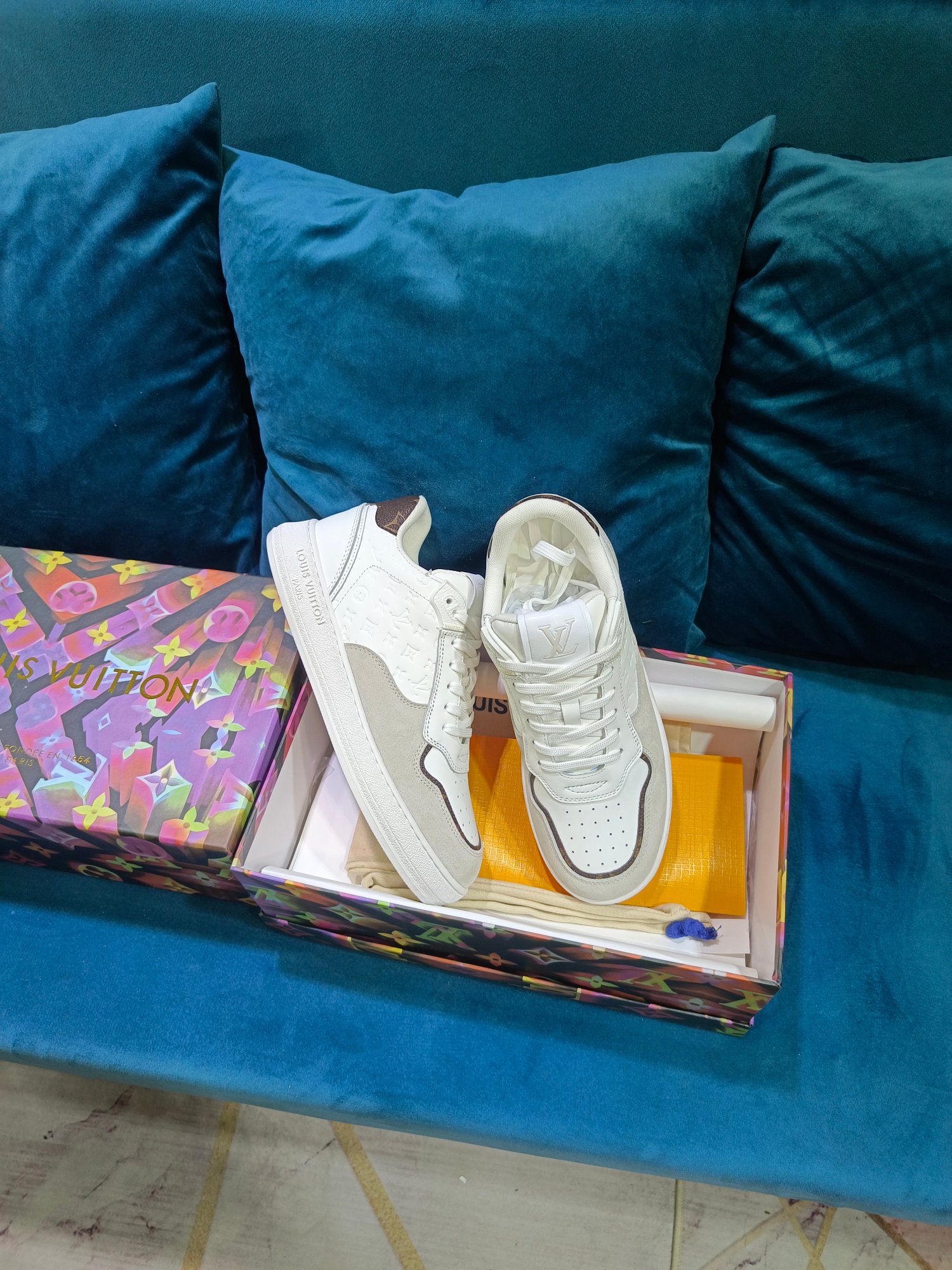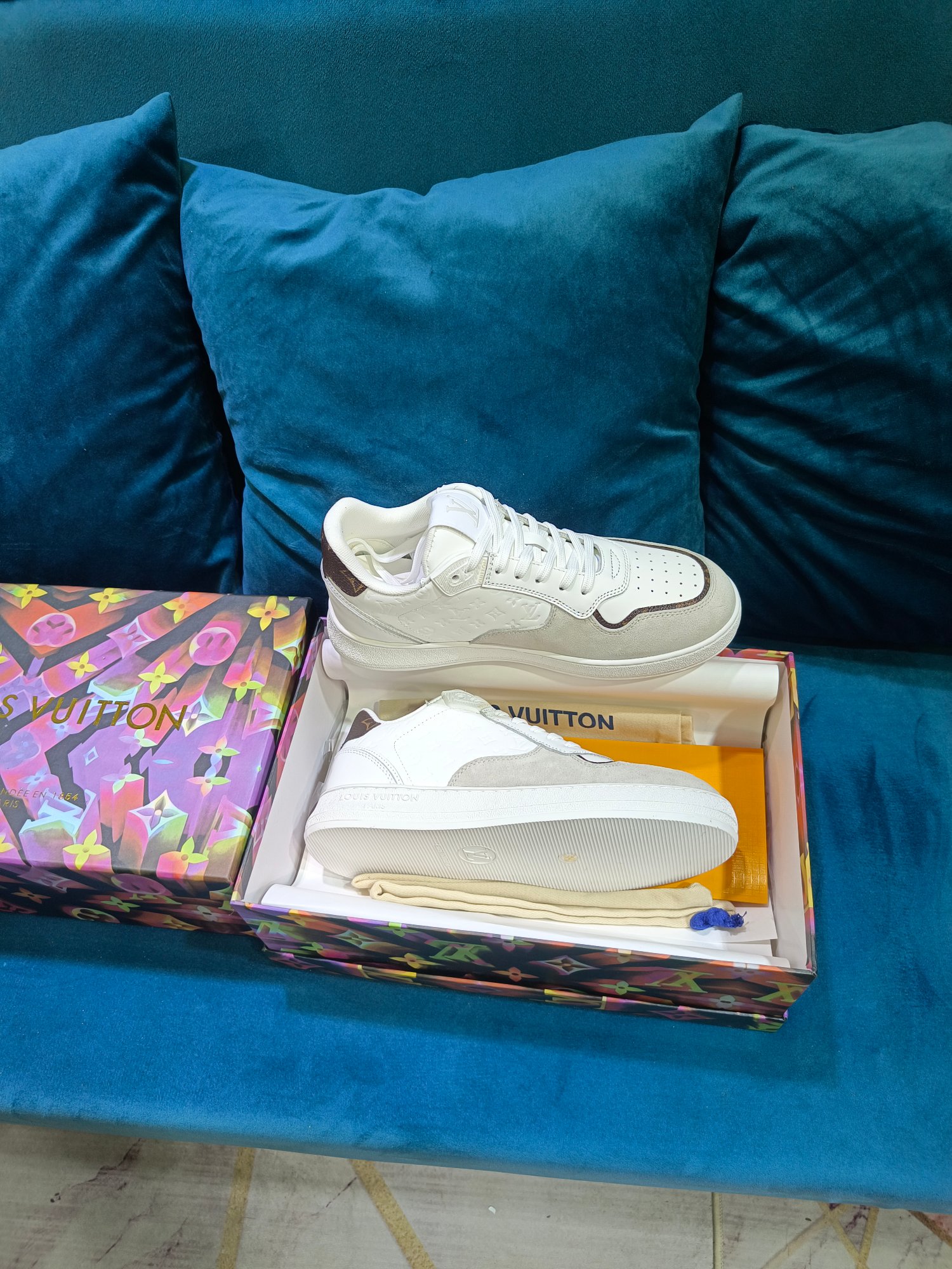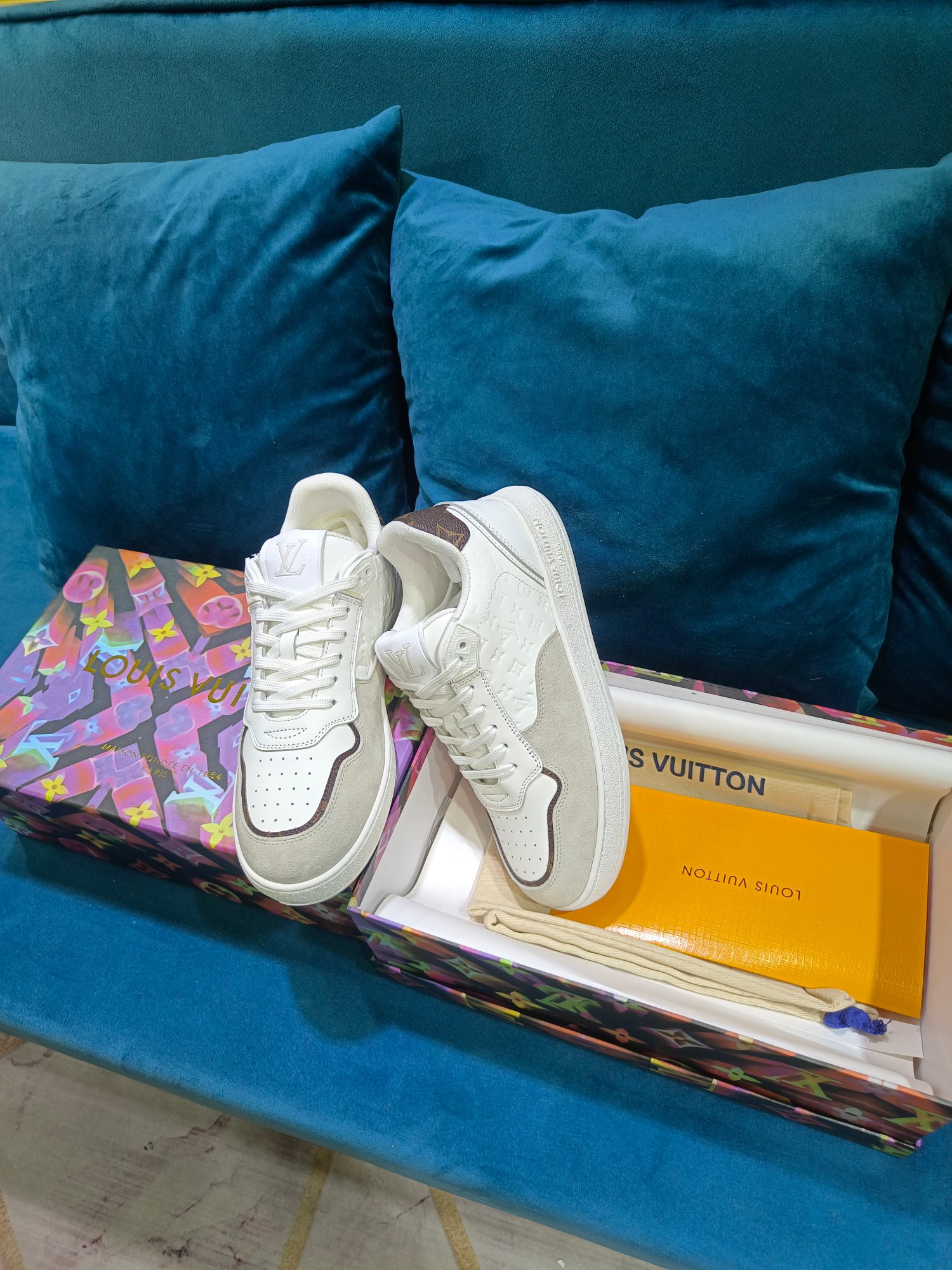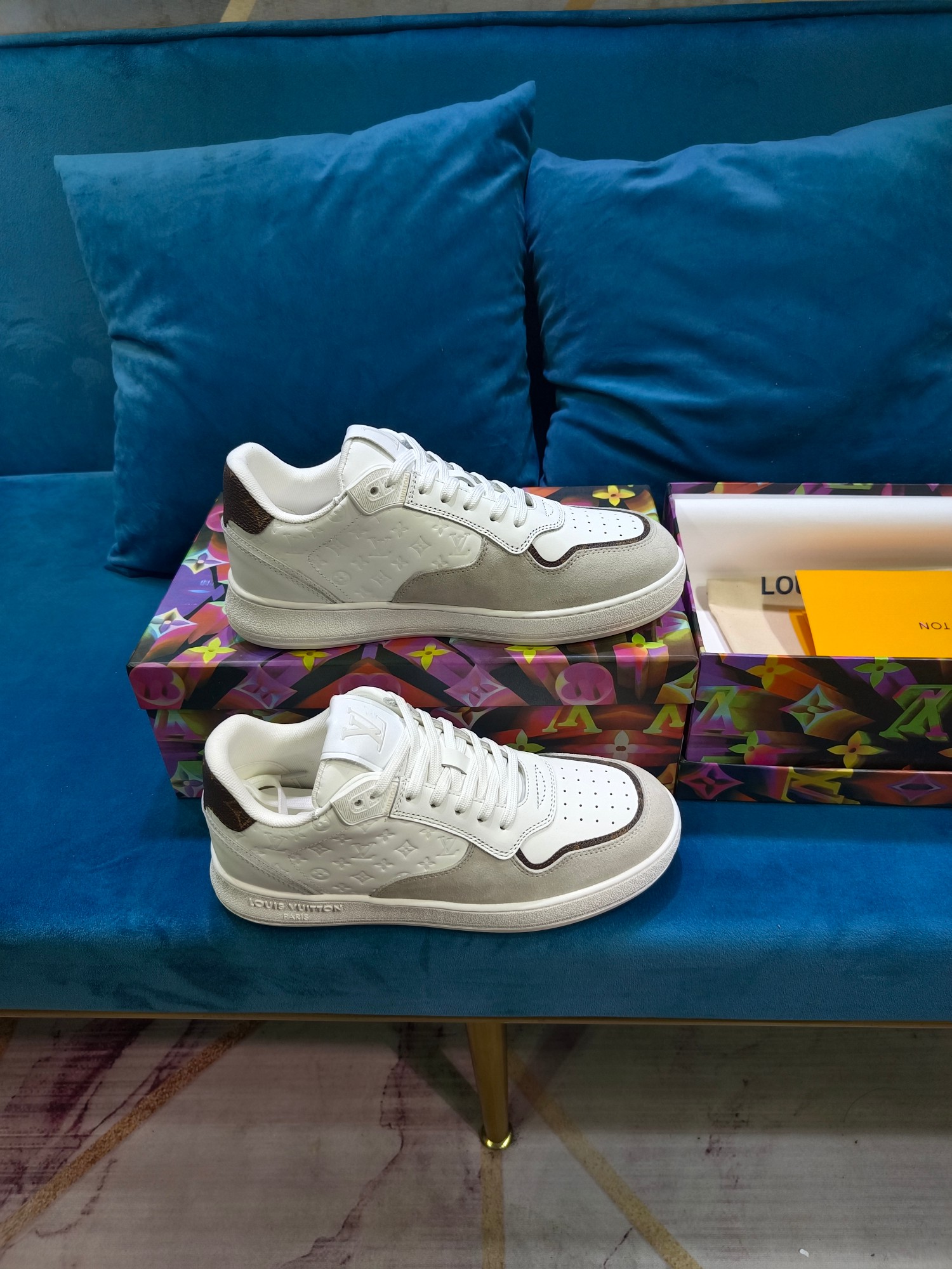这款鞋子是AAAAA 1:1 质量 (非常棒). 使用了和原版一模一样的材料. 商标部分也保持了和路易威登/Louis Vuitton一样. 图片拍摄是实物鞋子拍摄, 您所收到的实物保证和我们图片一模一样.