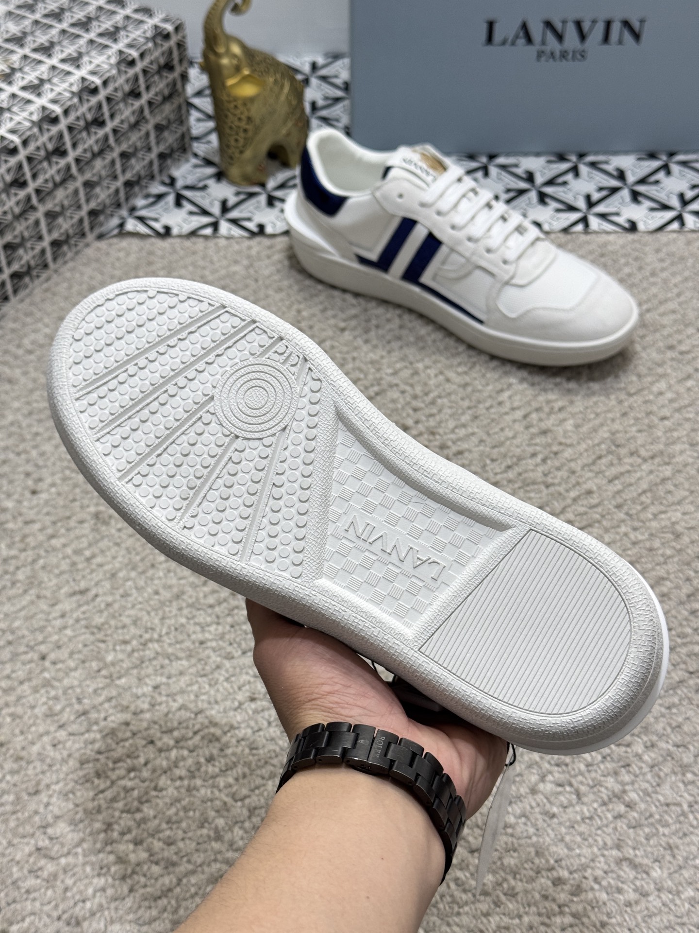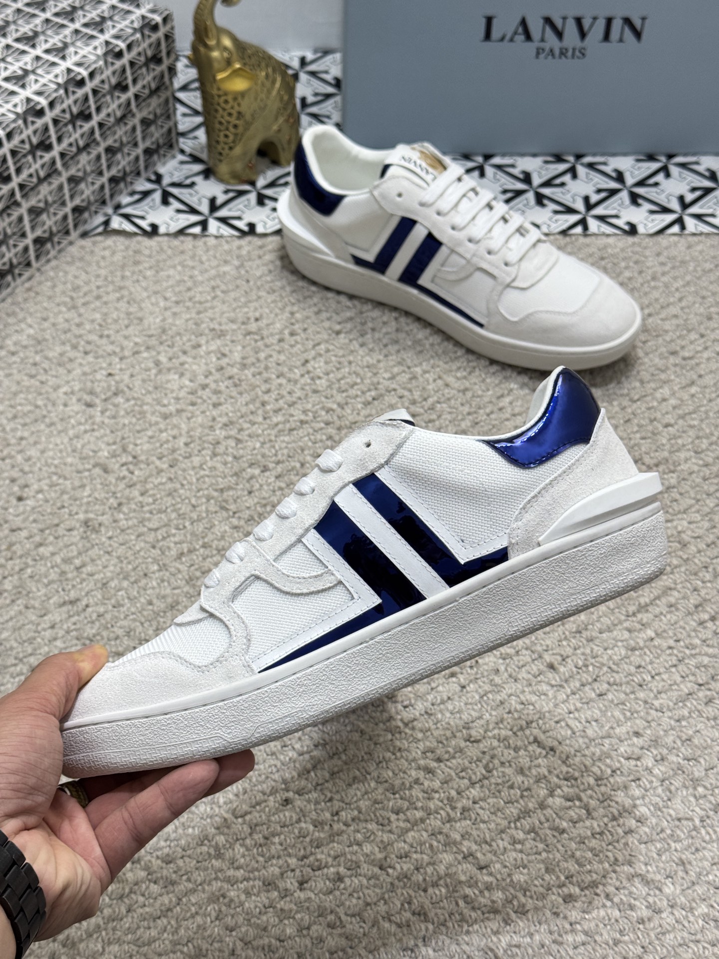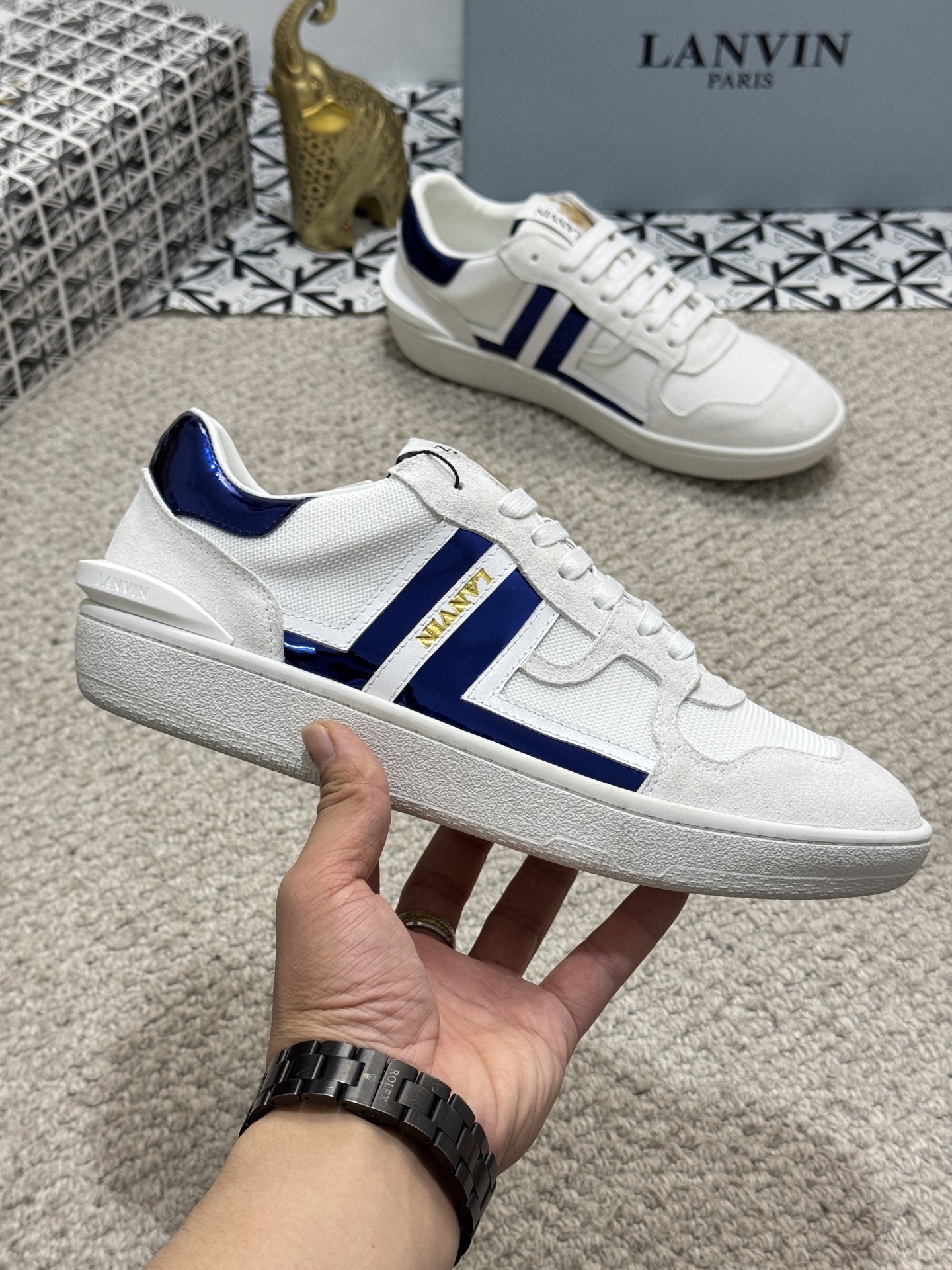 这款鞋子是AAAAA 1:1 质量 (非常棒). 使用了和原版一模一样的材料. 商标部分也保持了和Lanvin一样. 图片拍摄是实物鞋子拍摄, 您所收到的实物保证和我们图片一模一样.