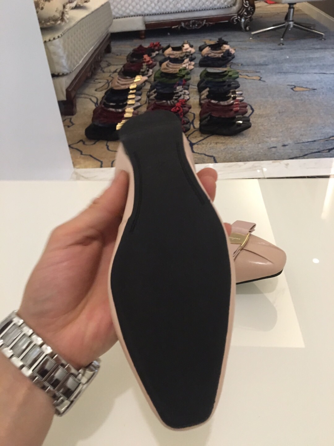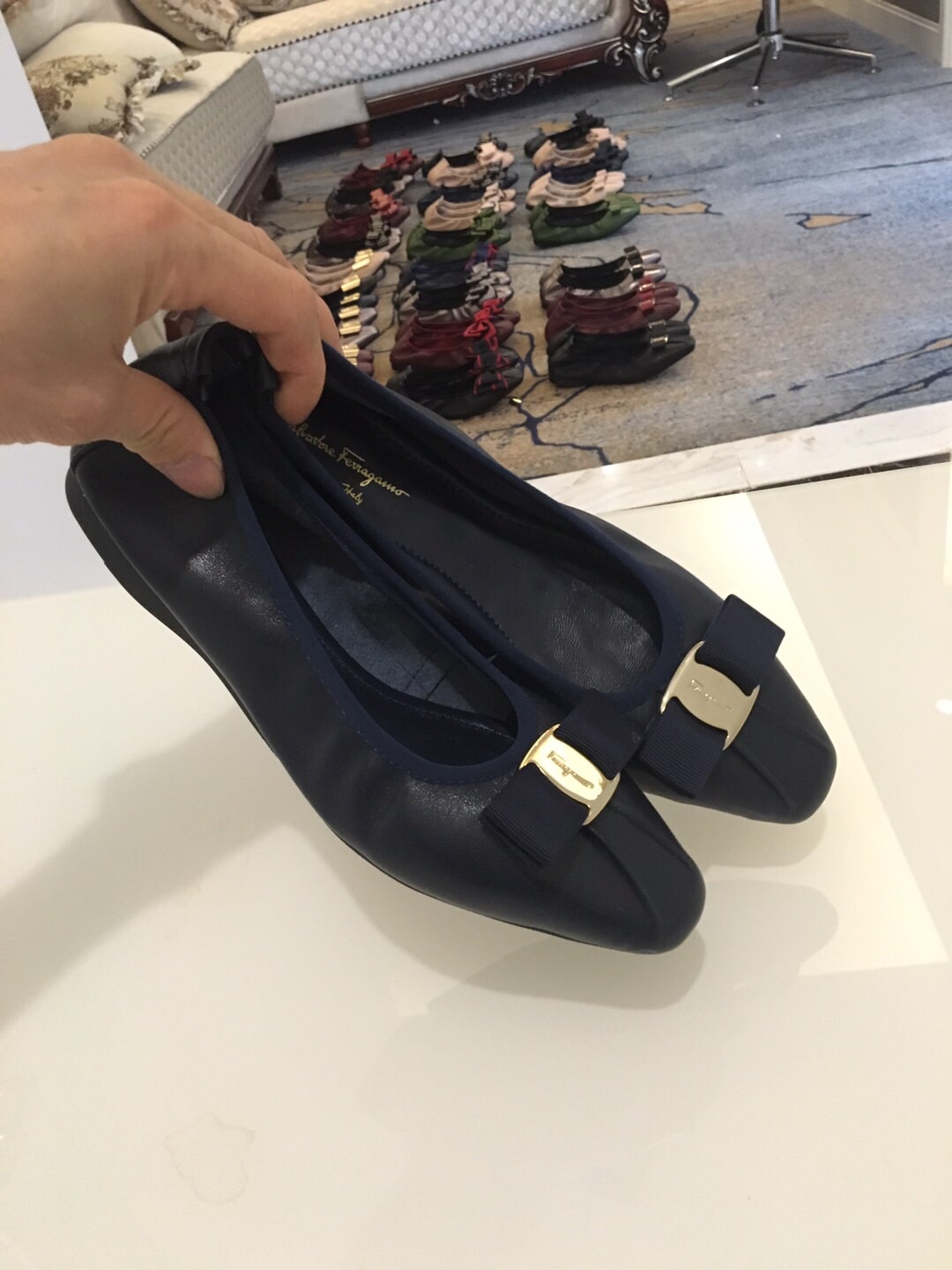 这款鞋子是AAAAA 1:1 质量 (非常棒). 使用了和原版一模一样的材料. 商标部分也保持了和菲拉格慕/Salvatore Ferragamo一样. 图片拍摄是实物鞋子拍摄, 您所收到的实物保证和我们图片一模一样.