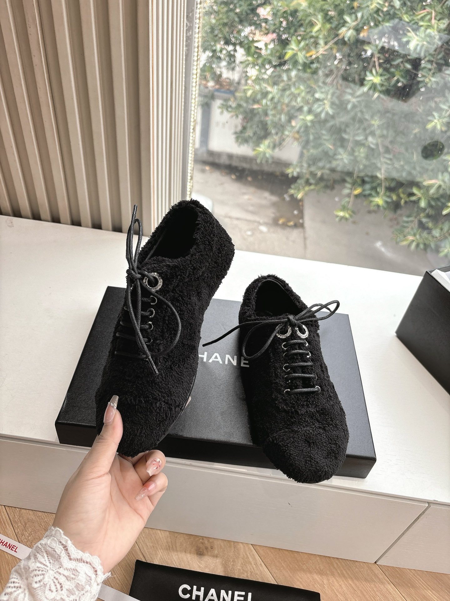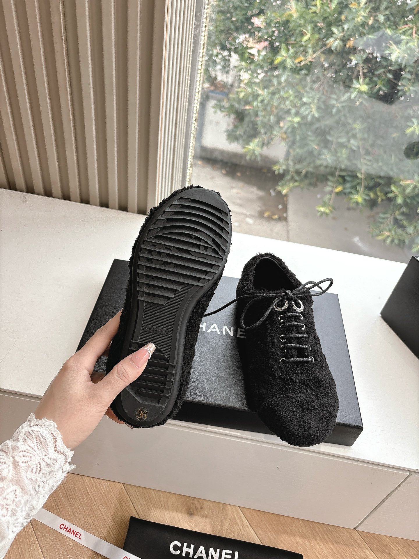 这款鞋子是AAAAA 1:1 质量 (非常棒). 使用了和原版一模一样的材料. 商标部分也保持了和香奈儿/Chanel一样. 图片拍摄是实物鞋子拍摄, 您所收到的实物保证和我们图片一模一样.