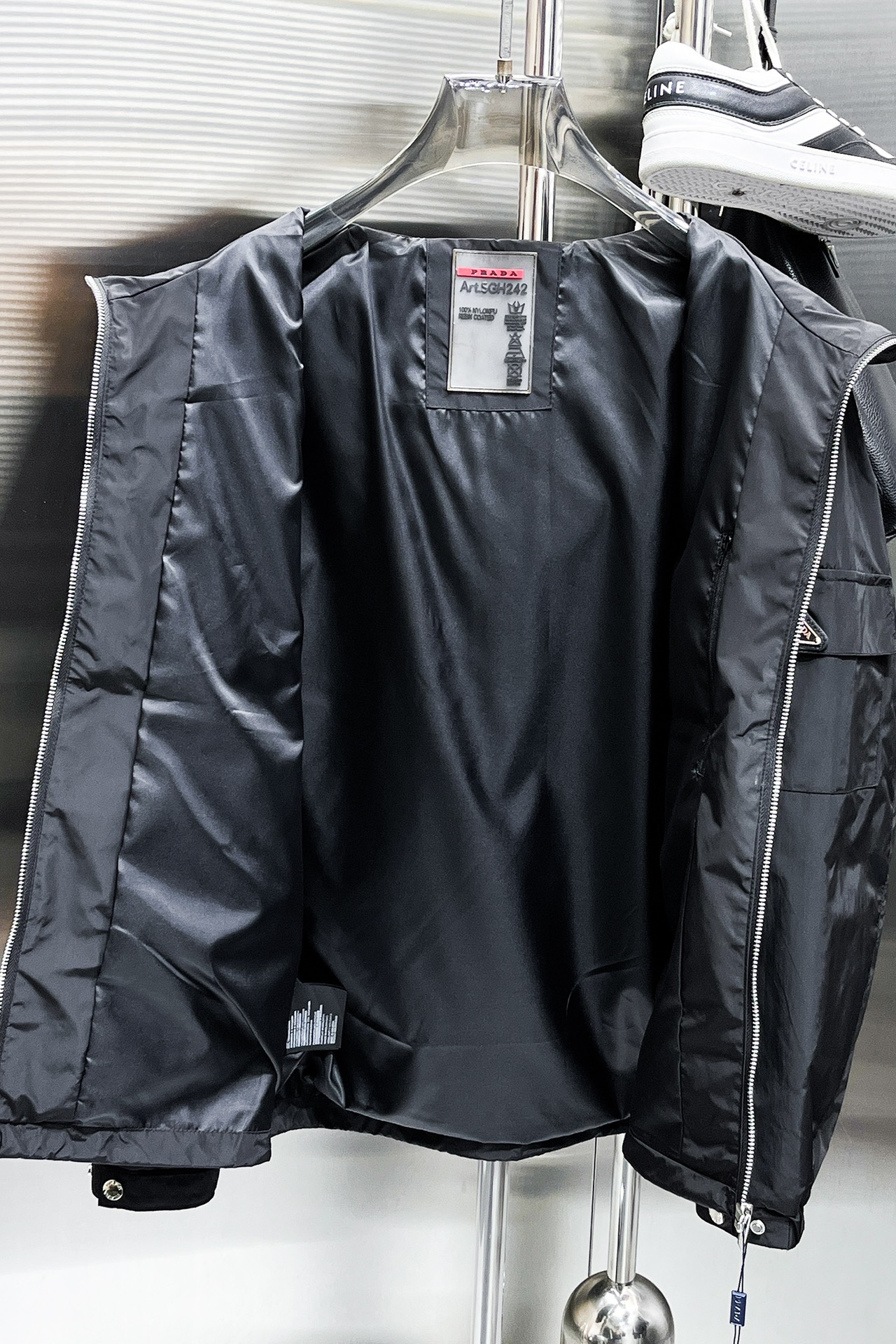 这款衣服是AAAAA 1:1 质量 (非常棒). 使用了和原版一模一样的材料. 商标部分也保持了和普拉达/Prada一样. 图片拍摄是实物衣服拍摄, 您所收到的实物保证和我们图片一模一样.