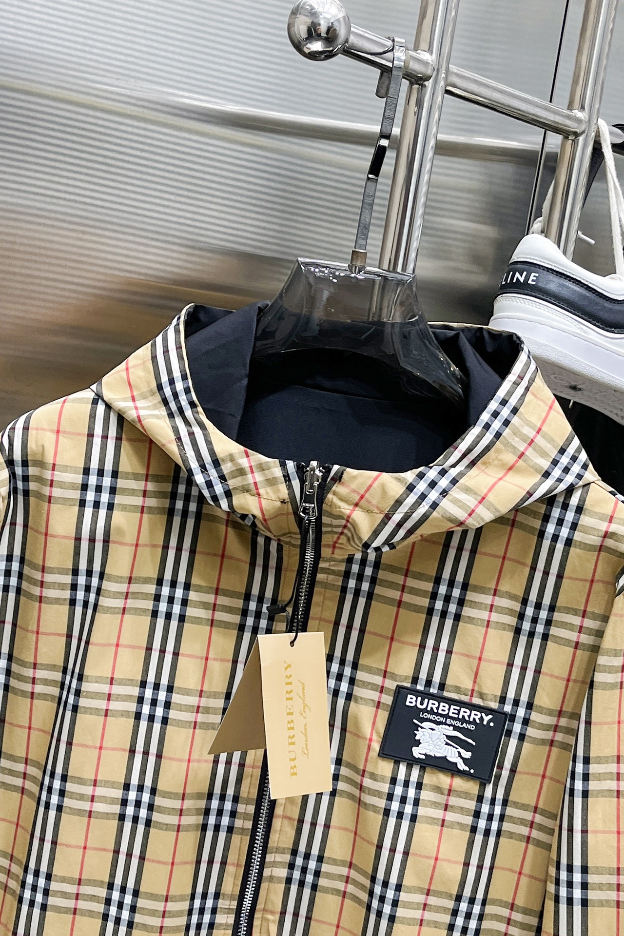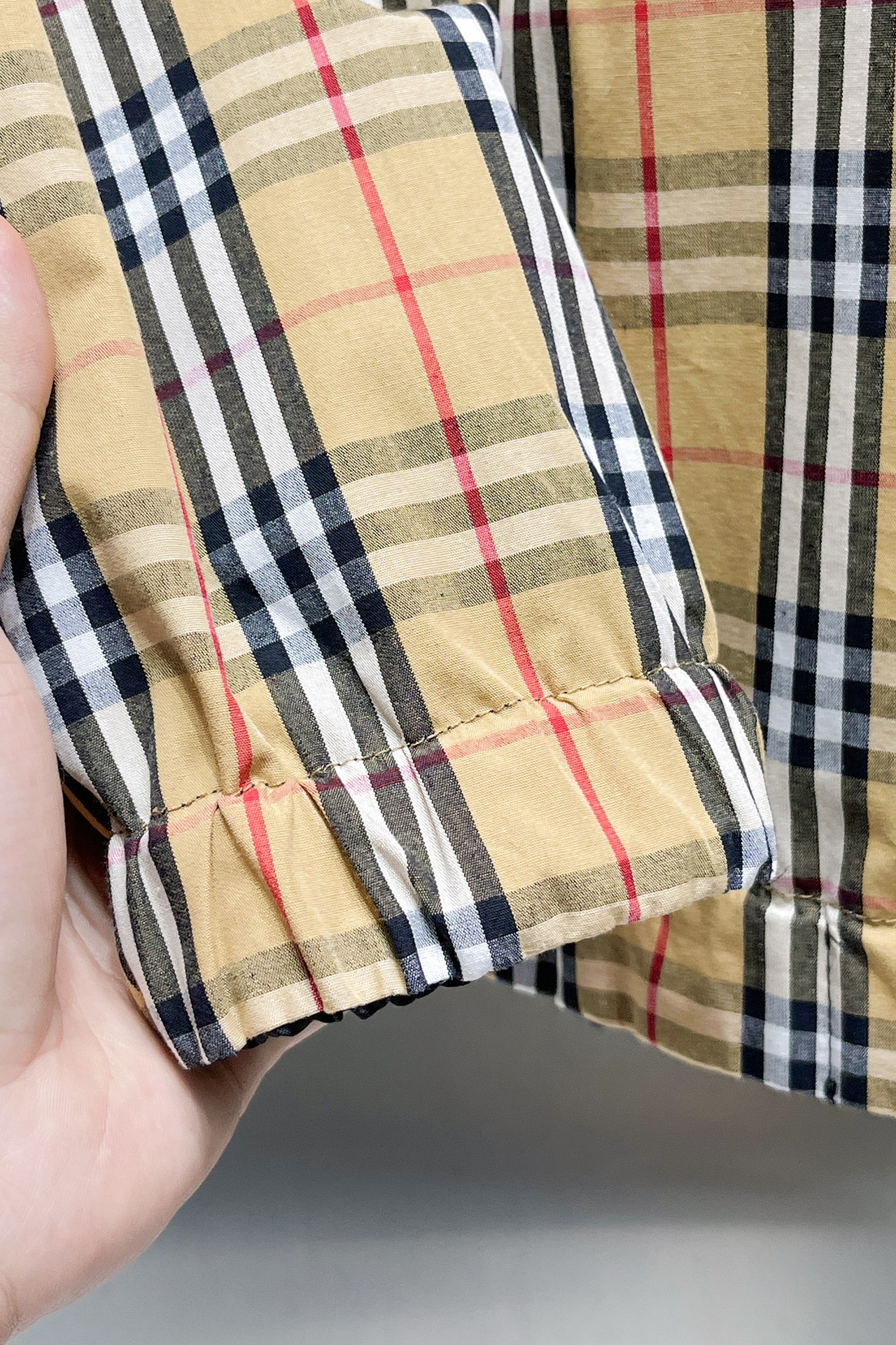 这款衣服是AAAAA 1:1 质量 (非常棒). 使用了和原版一模一样的材料. 商标部分也保持了和巴宝莉/Burberry一样. 图片拍摄是实物衣服拍摄, 您所收到的实物保证和我们图片一模一样.