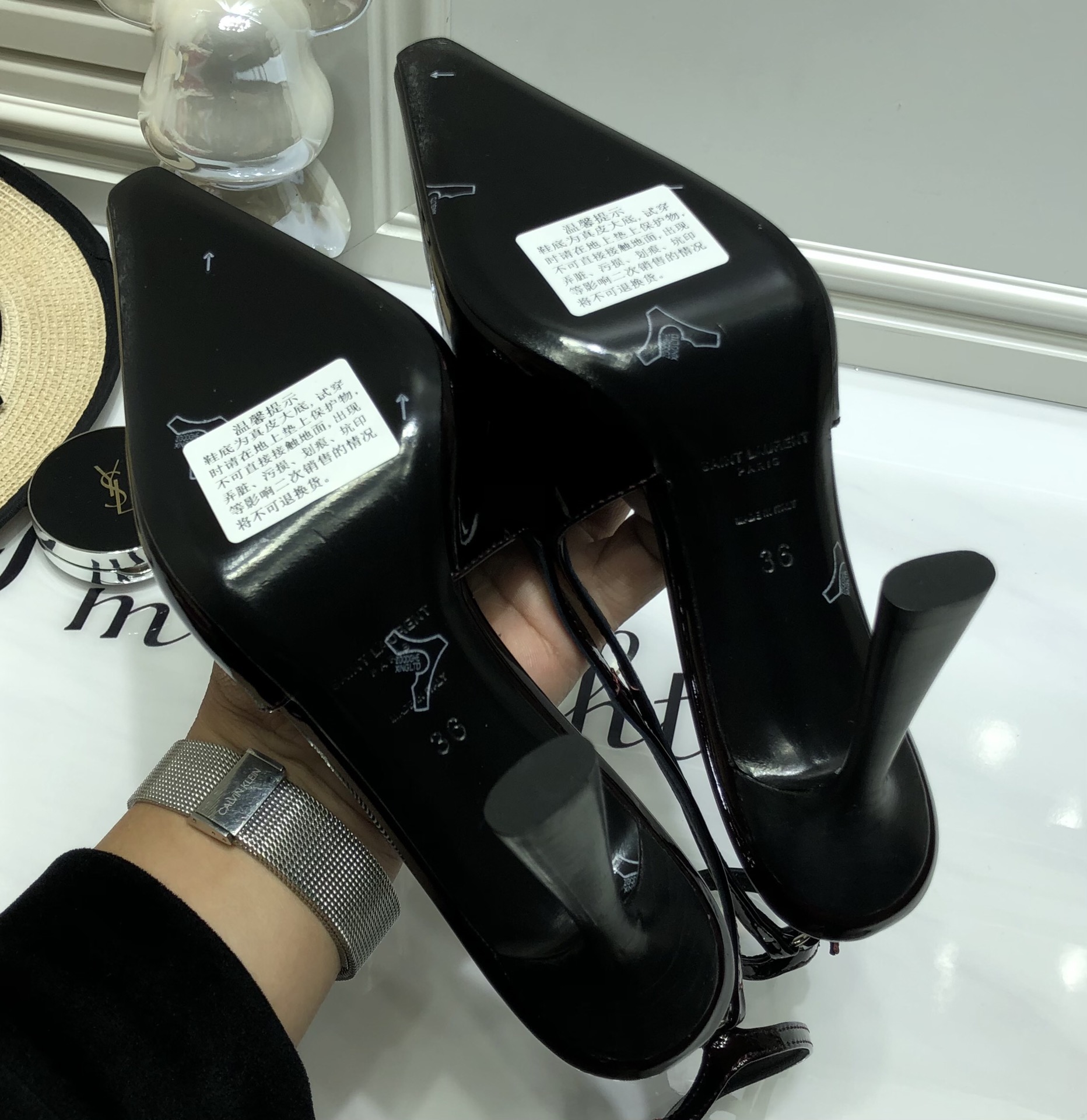 这款鞋子是AAAAA 1:1 质量 (非常棒). 使用了和原版一模一样的材料. 商标部分也保持了和圣罗兰/Saint Laurent一样. 图片拍摄是实物鞋子拍摄, 您所收到的实物保证和我们图片一模一样.