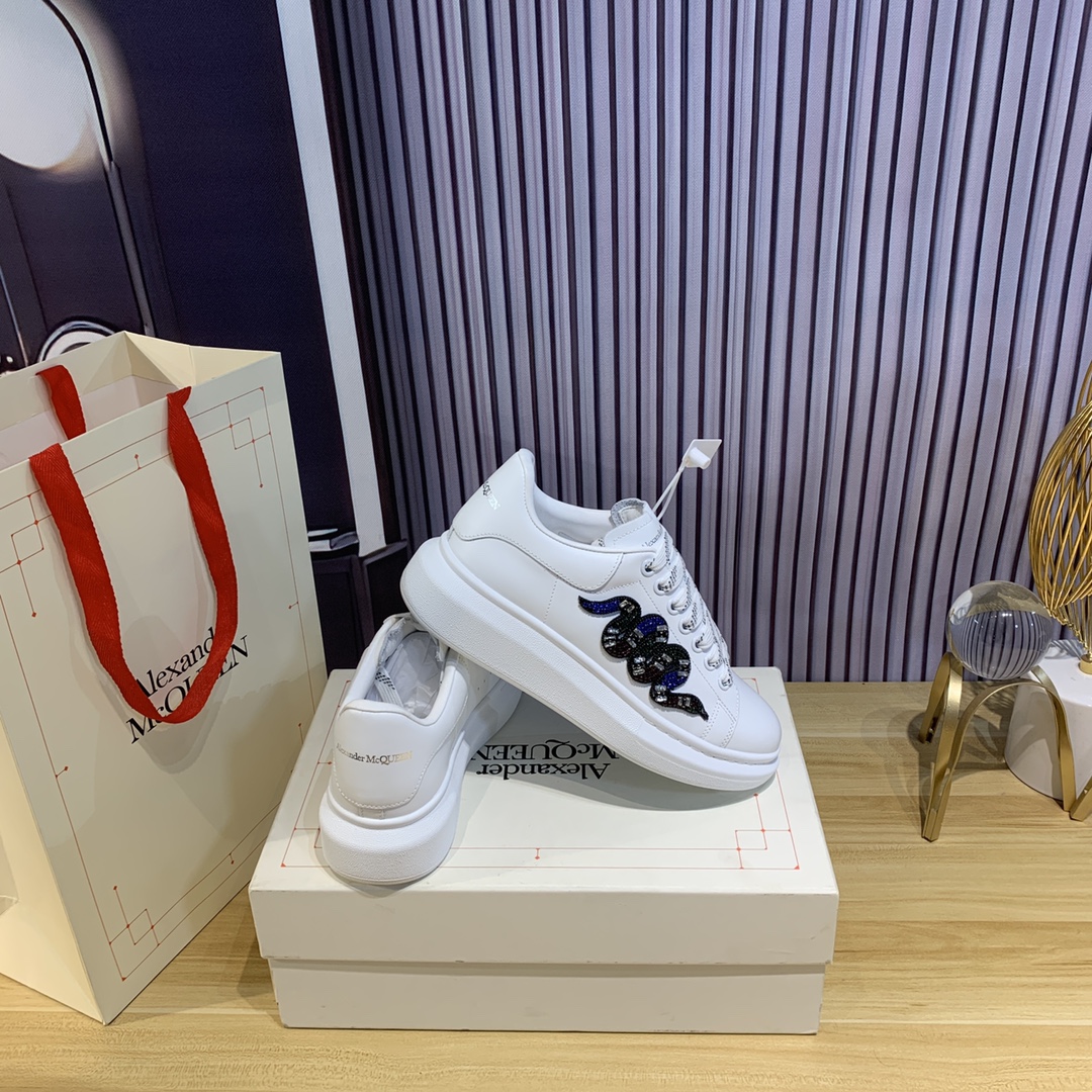 这款鞋子是AAAAA 1:1 质量 (非常棒). 使用了和原版一模一样的材料. 商标部分也保持了和亚历山大·麦昆/McQueen一样. 图片拍摄是实物鞋子拍摄, 您所收到的实物保证和我们图片一模一样.