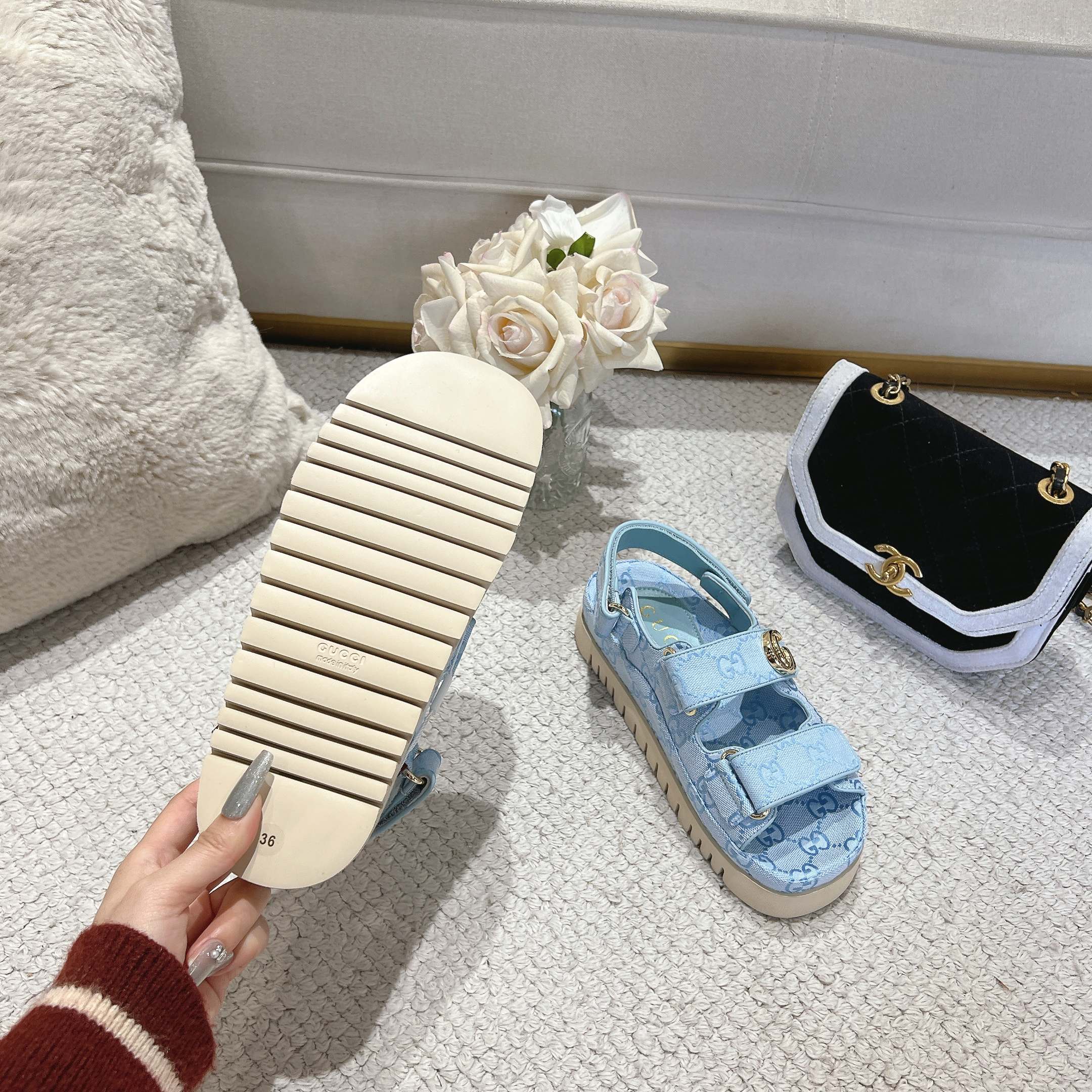 这款鞋子是AAAAA 1:1 质量 (非常棒). 使用了和原版一模一样的材料. 商标部分也保持了和古奇/Gucci一样. 图片拍摄是实物鞋子拍摄, 您所收到的实物保证和我们图片一模一样.