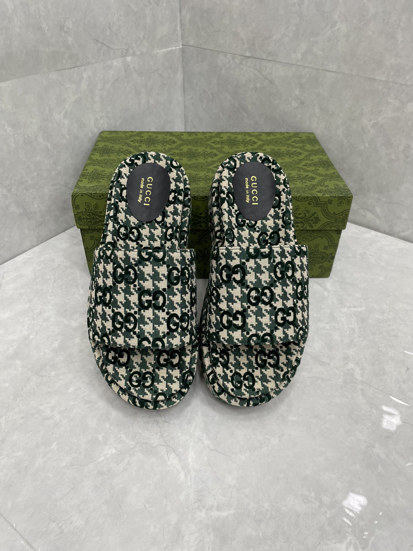 这款鞋子是AAAAA 1:1 质量 (非常棒). 使用了和原版一模一样的材料. 商标部分也保持了和古奇/Gucci一样. 图片拍摄是实物鞋子拍摄, 您所收到的实物保证和我们图片一模一样.
