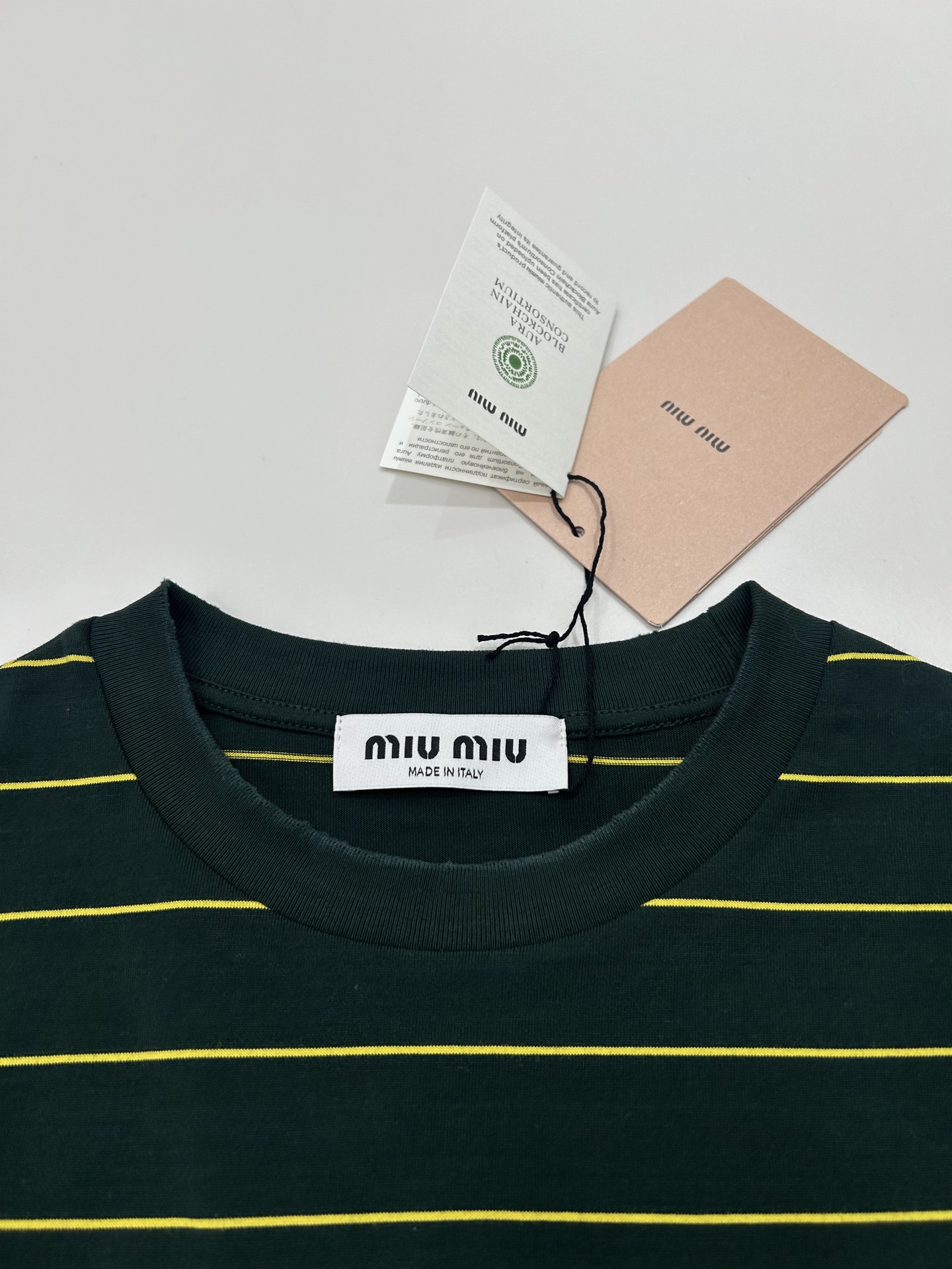 这款衣服是AAAAA 1:1 质量 (非常棒). 使用了和原版一模一样的材料. 商标部分也保持了和缪缪/Miu Miu一样. 图片拍摄是实物衣服拍摄, 您所收到的实物保证和我们图片一模一样.