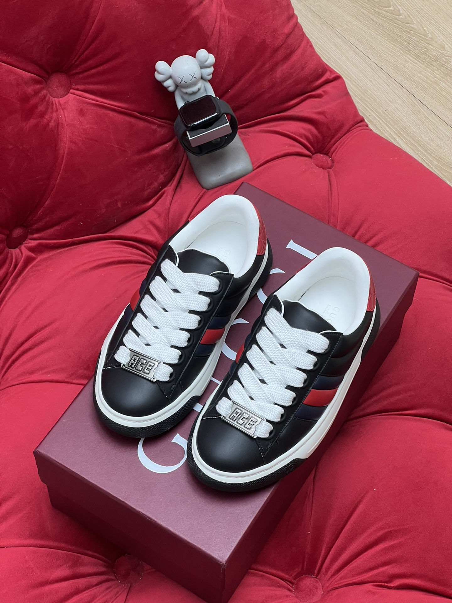 这款鞋子是AAAAA 1:1 质量 (非常棒). 使用了和原版一模一样的材料. 商标部分也保持了和古奇/Gucci一样. 图片拍摄是实物鞋子拍摄, 您所收到的实物保证和我们图片一模一样.