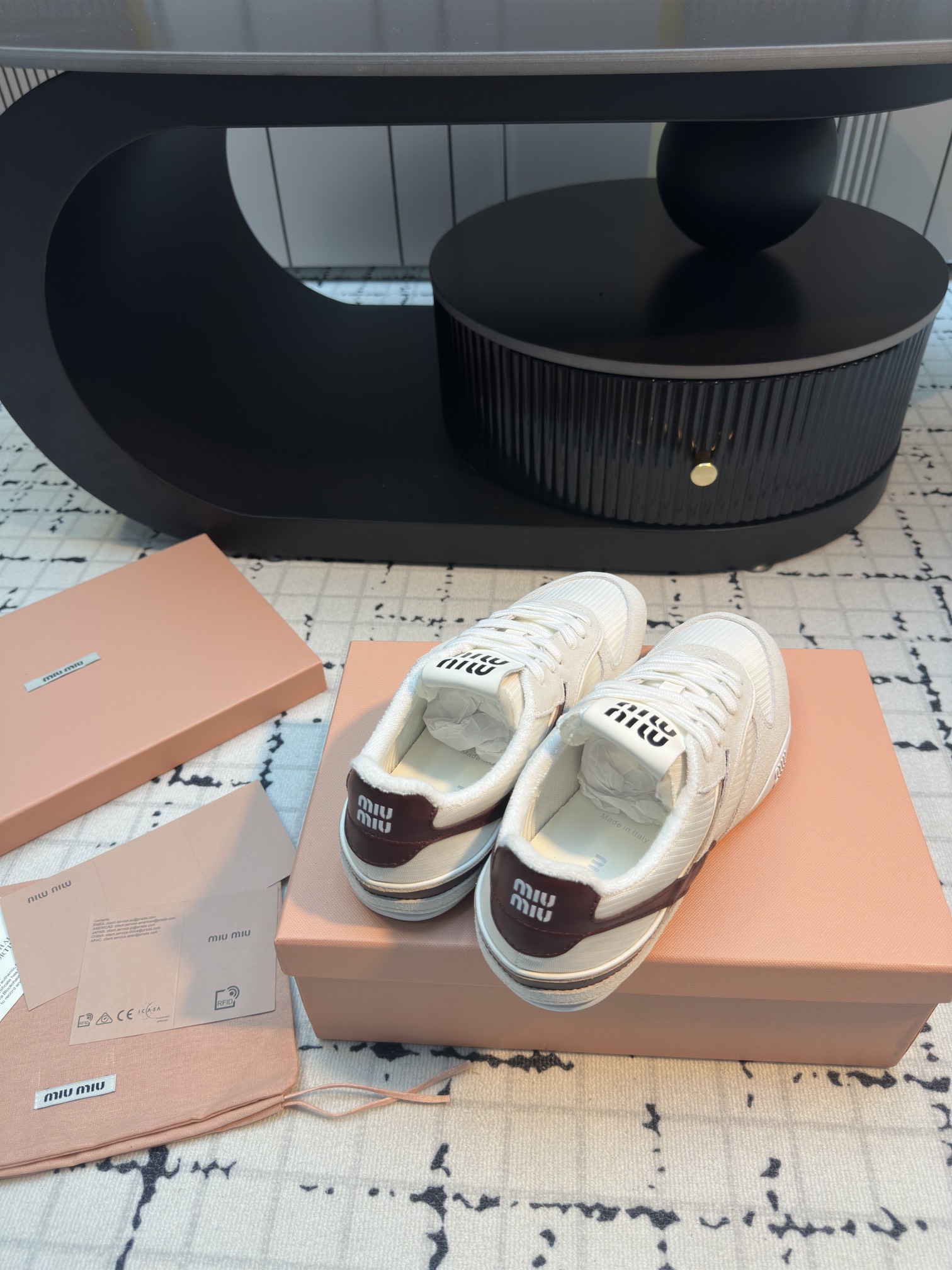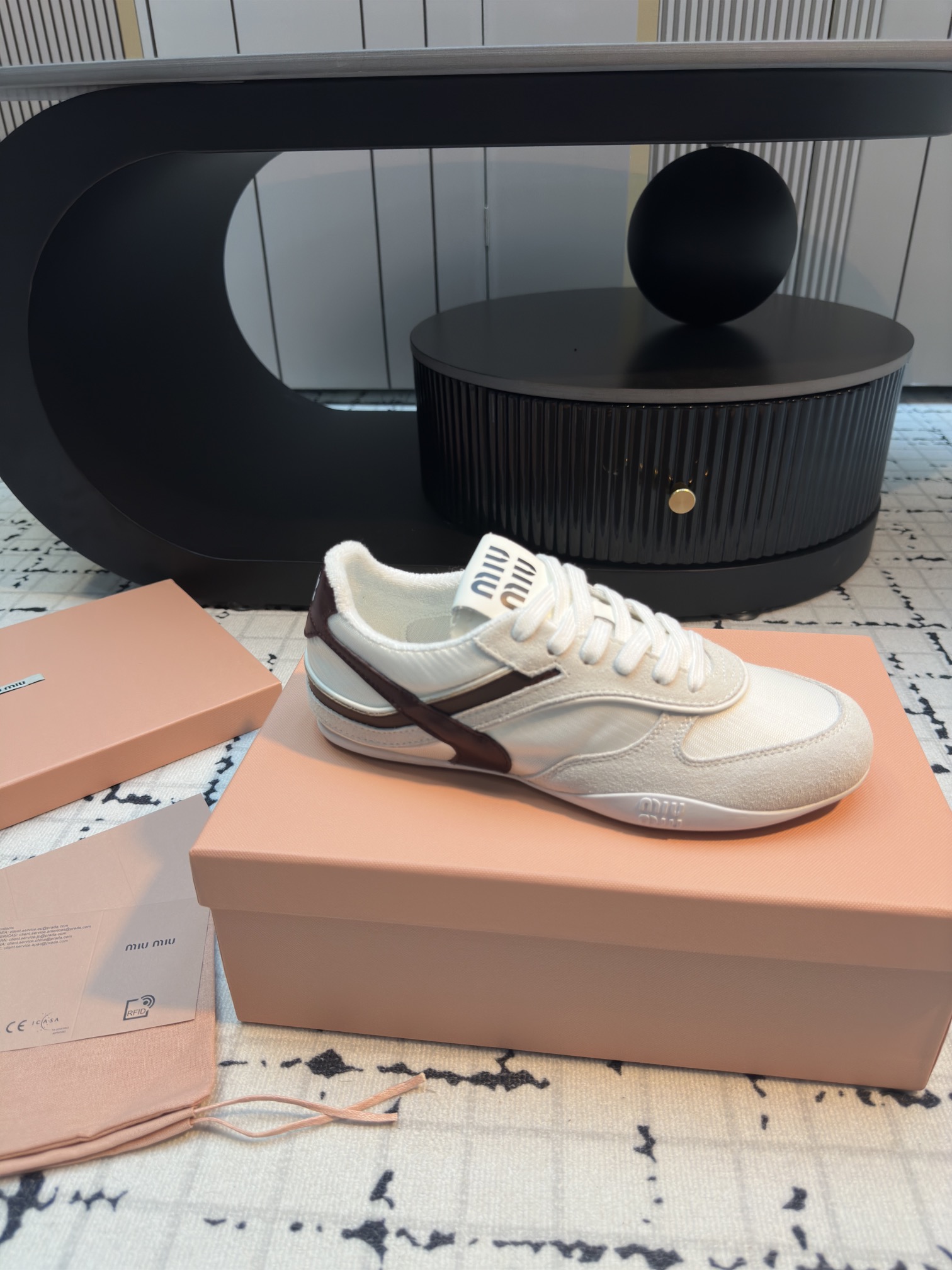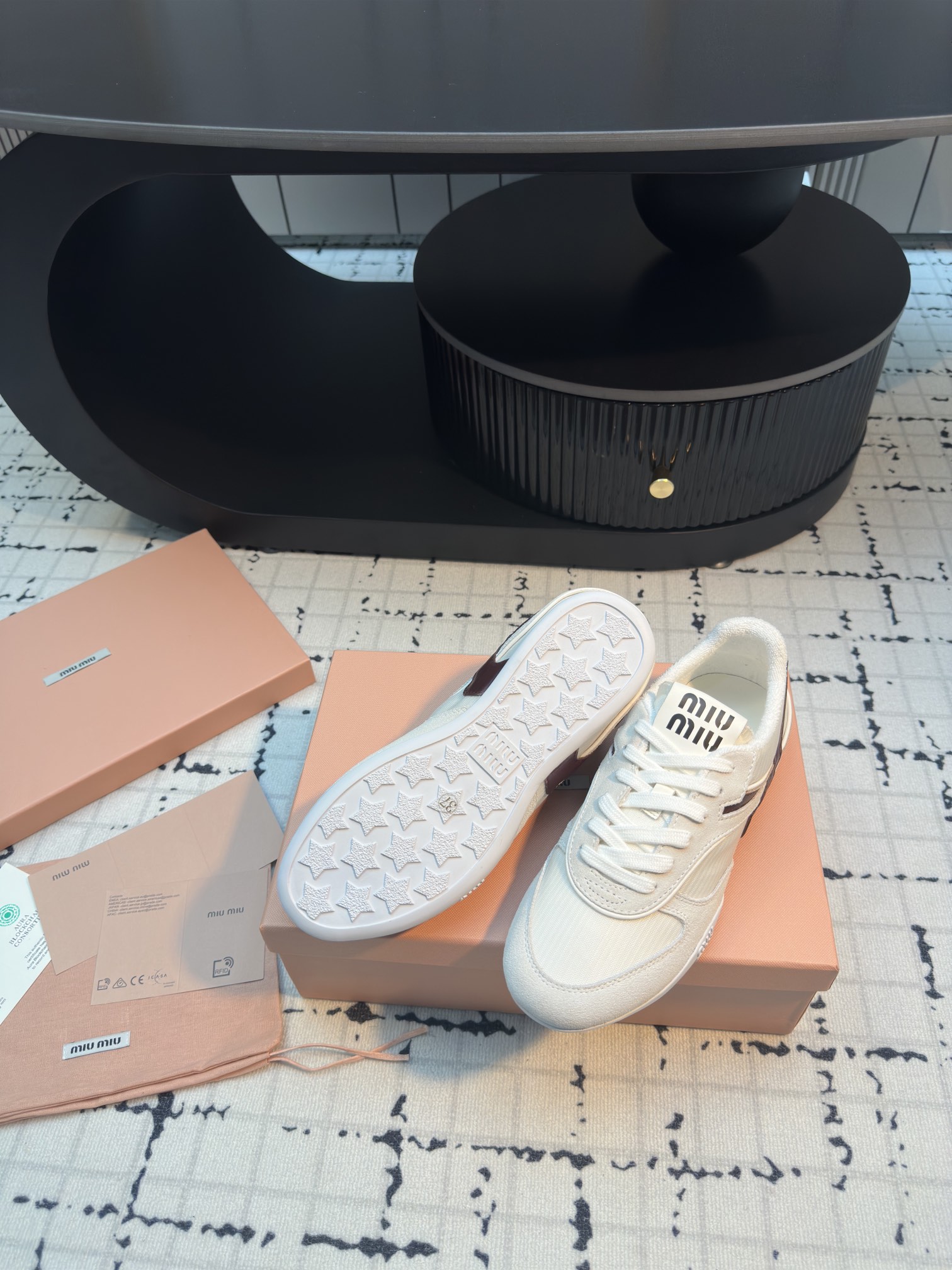 这款鞋子是AAAAA 1:1 质量 (非常棒). 使用了和原版一模一样的材料. 商标部分也保持了和缪缪/Miu Miu一样. 图片拍摄是实物鞋子拍摄, 您所收到的实物保证和我们图片一模一样.
