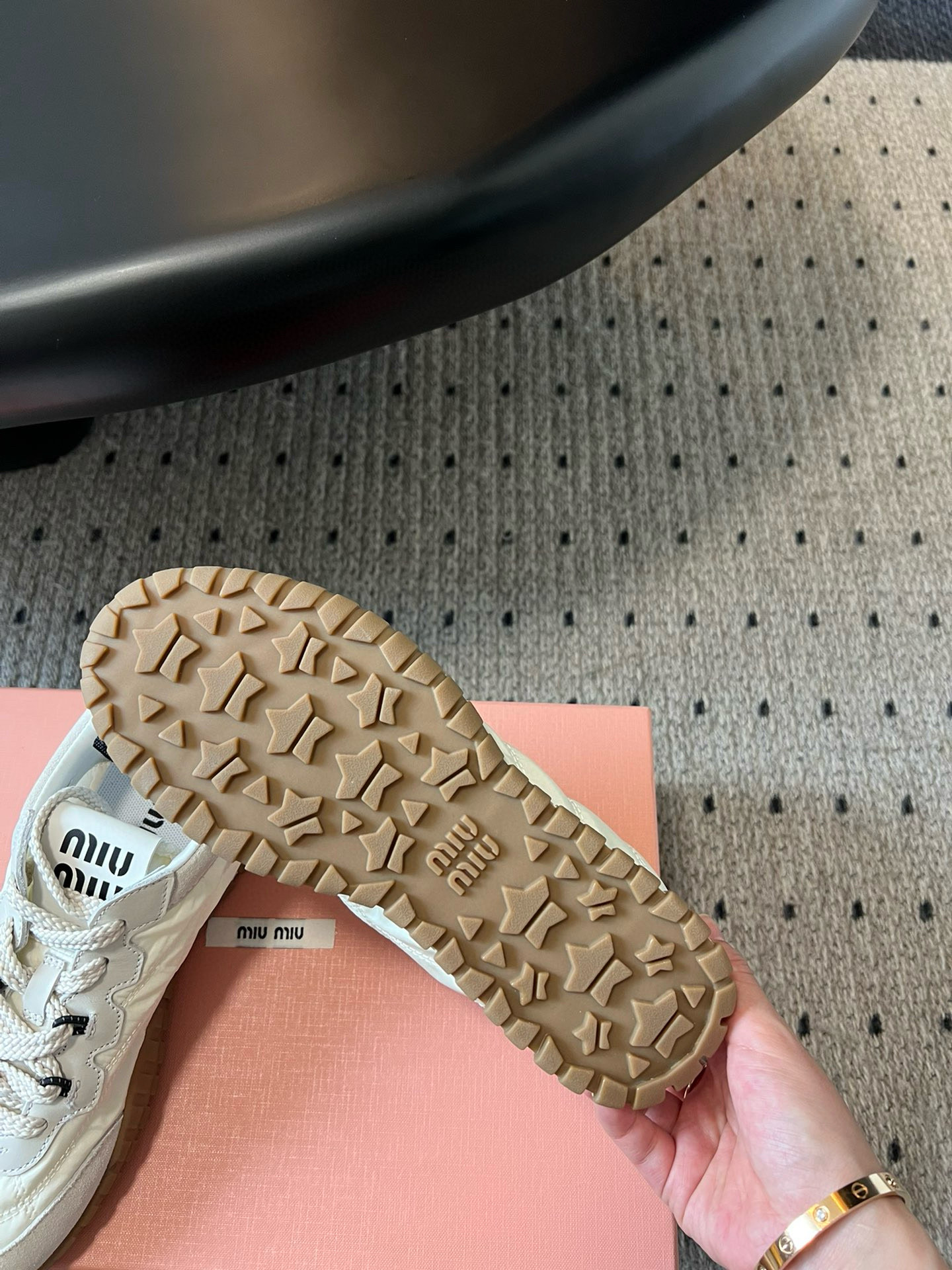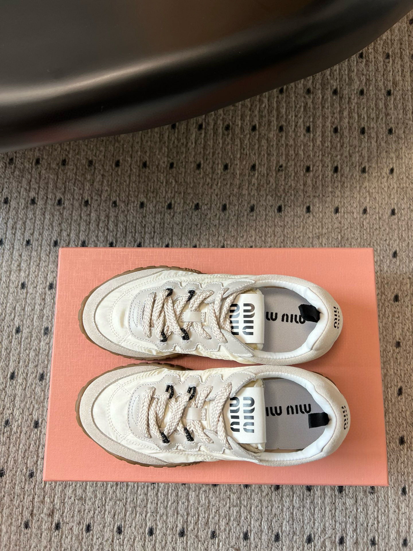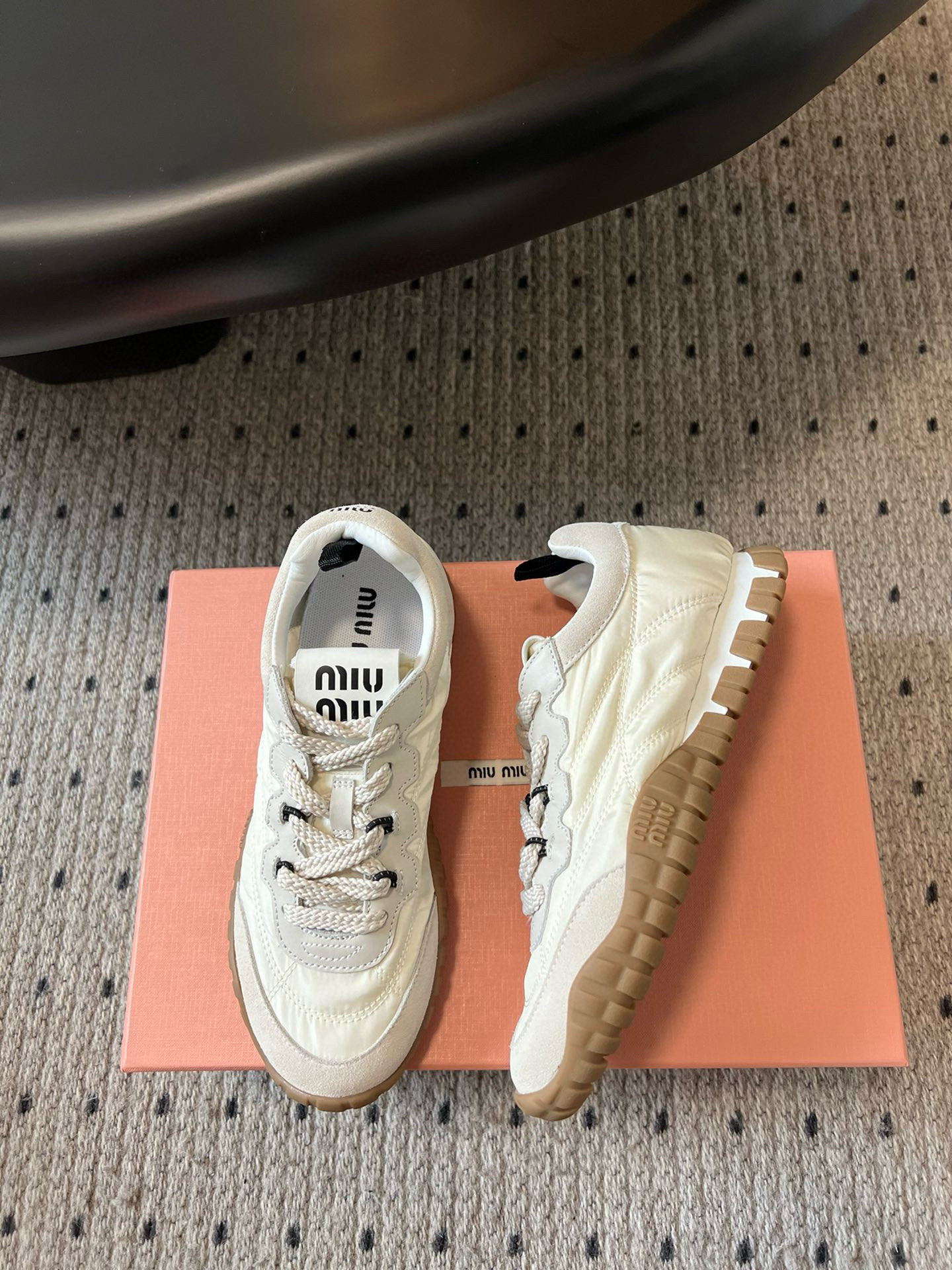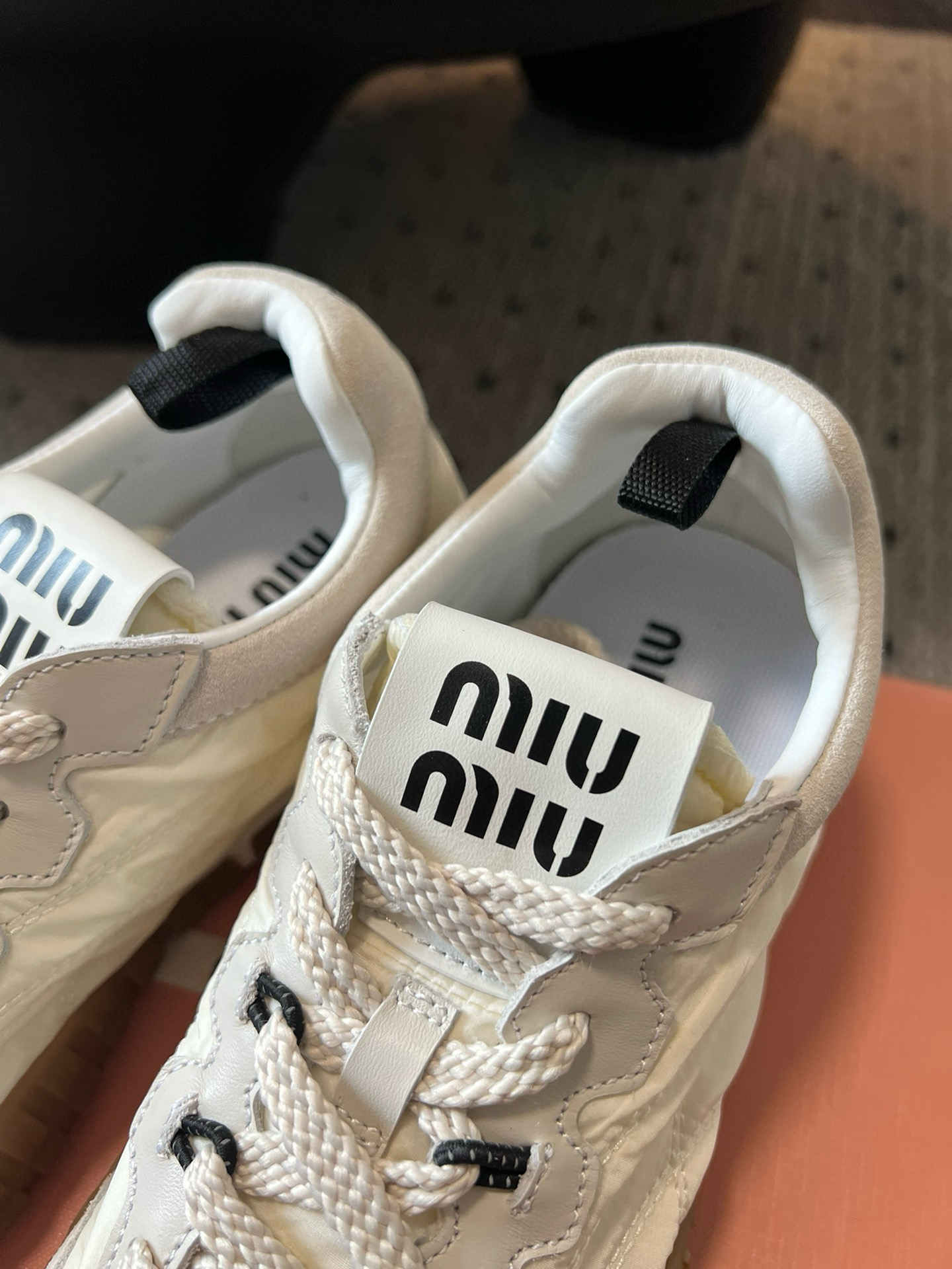 这款鞋子是AAAAA 1:1 质量 (非常棒). 使用了和原版一模一样的材料. 商标部分也保持了和缪缪/Miu Miu一样. 图片拍摄是实物鞋子拍摄, 您所收到的实物保证和我们图片一模一样.