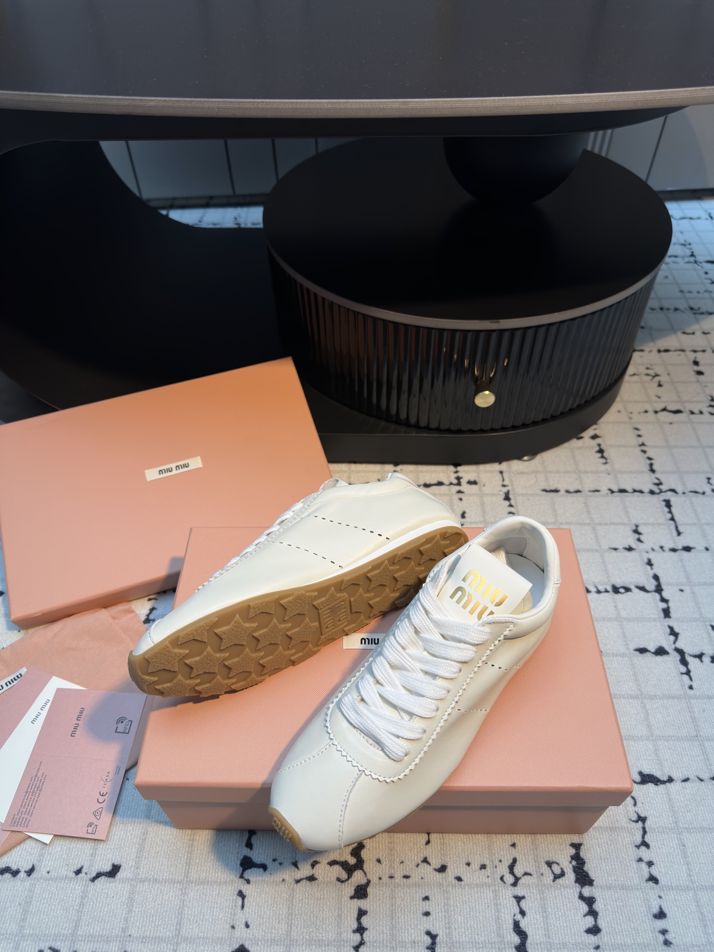 这款鞋子是AAAAA 1:1 质量 (非常棒). 使用了和原版一模一样的材料. 商标部分也保持了和缪缪/Miu Miu一样. 图片拍摄是实物鞋子拍摄, 您所收到的实物保证和我们图片一模一样.