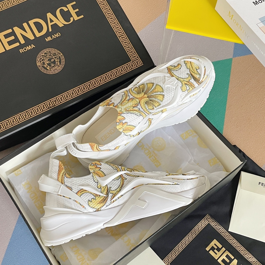 这款鞋子是AAAAA 1:1 质量 (非常棒). 使用了和原版一模一样的材料. 商标部分也保持了和芬迪/Fendi一样. 图片拍摄是实物鞋子拍摄, 您所收到的实物保证和我们图片一模一样.
