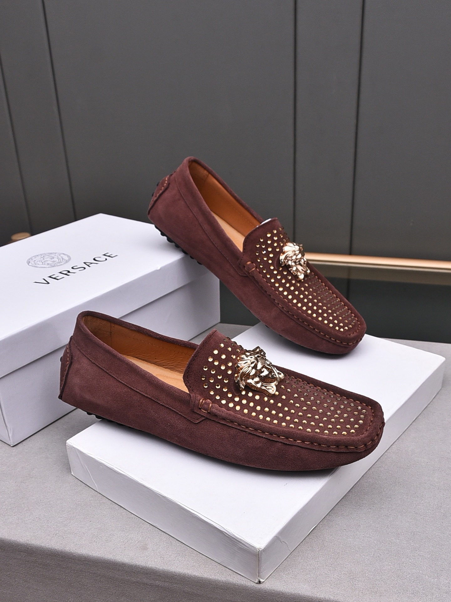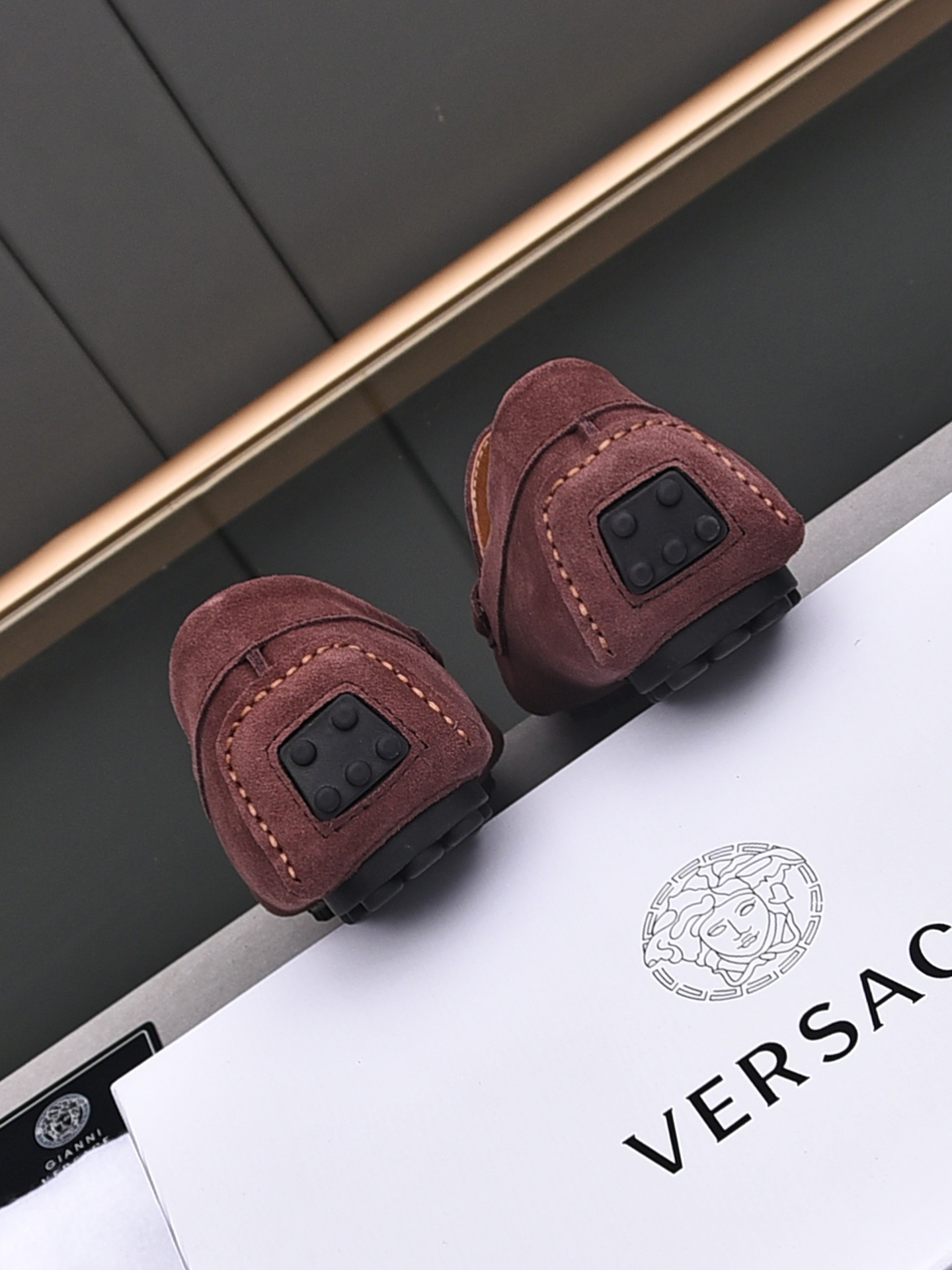 这款鞋子是AAAAA 1:1 质量 (非常棒). 使用了和原版一模一样的材料. 商标部分也保持了和范思哲/Versace一样. 图片拍摄是实物鞋子拍摄, 您所收到的实物保证和我们图片一模一样.