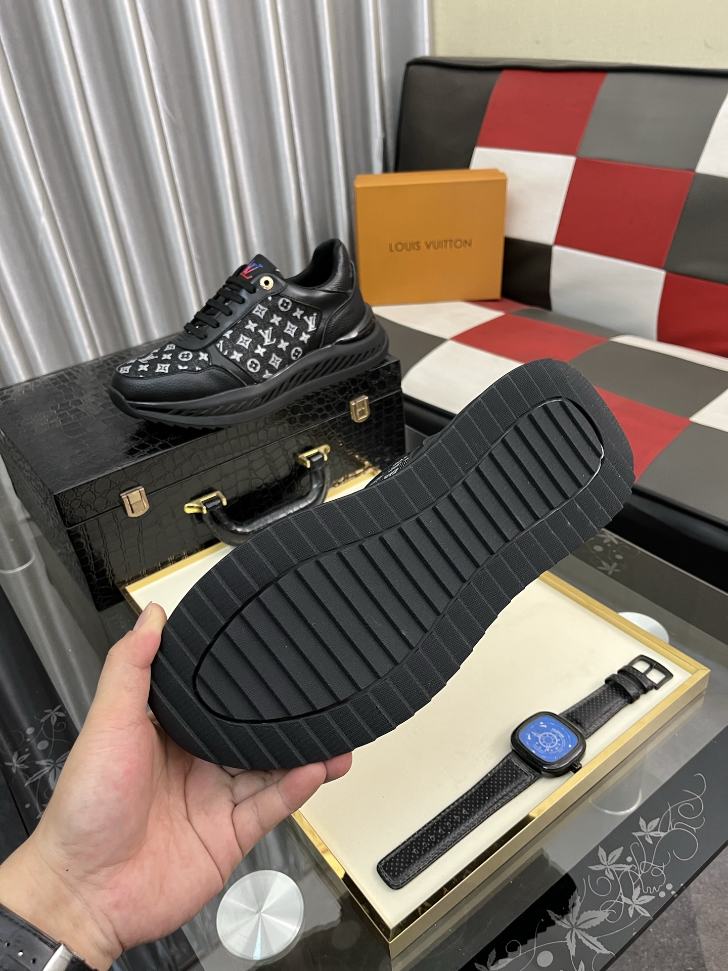 这款鞋子是AAAAA 1:1 质量 (非常棒). 使用了和原版一模一样的材料. 商标部分也保持了和路易威登/Louis Vuitton一样. 图片拍摄是实物鞋子拍摄, 您所收到的实物保证和我们图片一模一样.