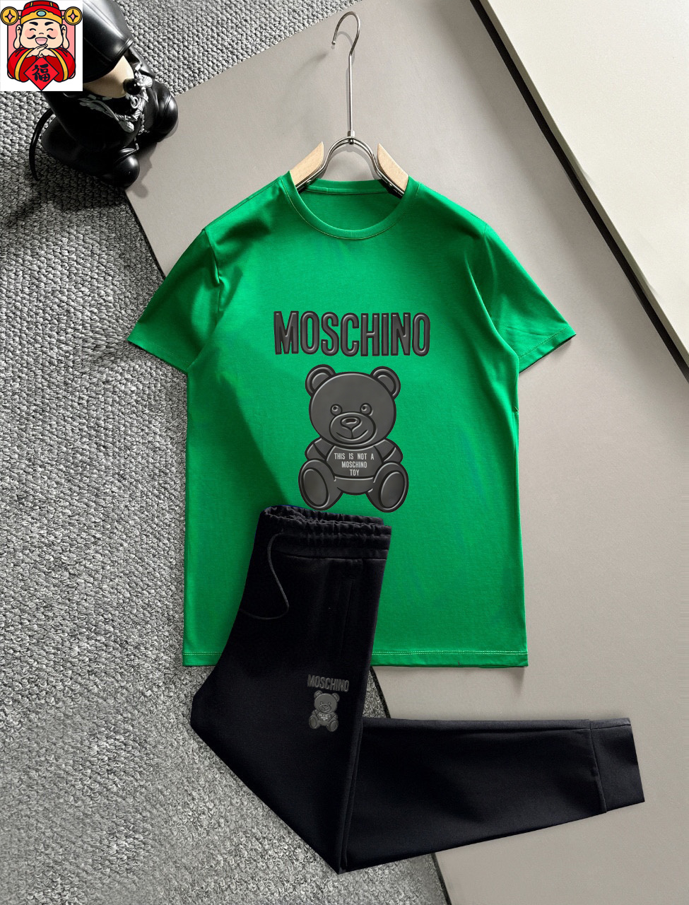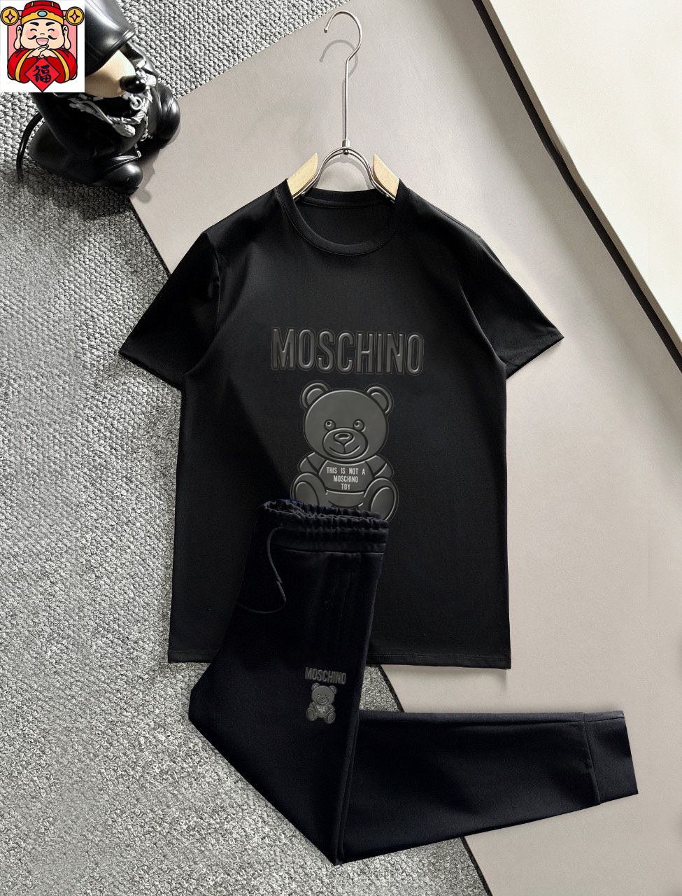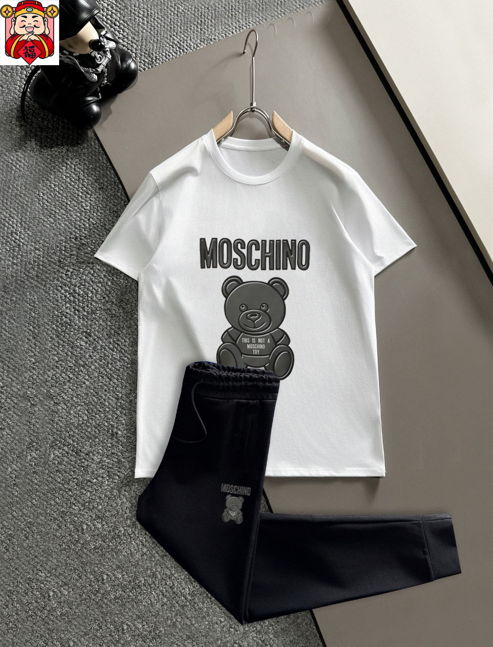 这款衣服是AAAAA 1:1 质量 (非常棒). 使用了和原版一模一样的材料. 商标部分也保持了和莫斯基诺/Moschino一样. 图片拍摄是实物衣服拍摄, 您所收到的实物保证和我们图片一模一样.