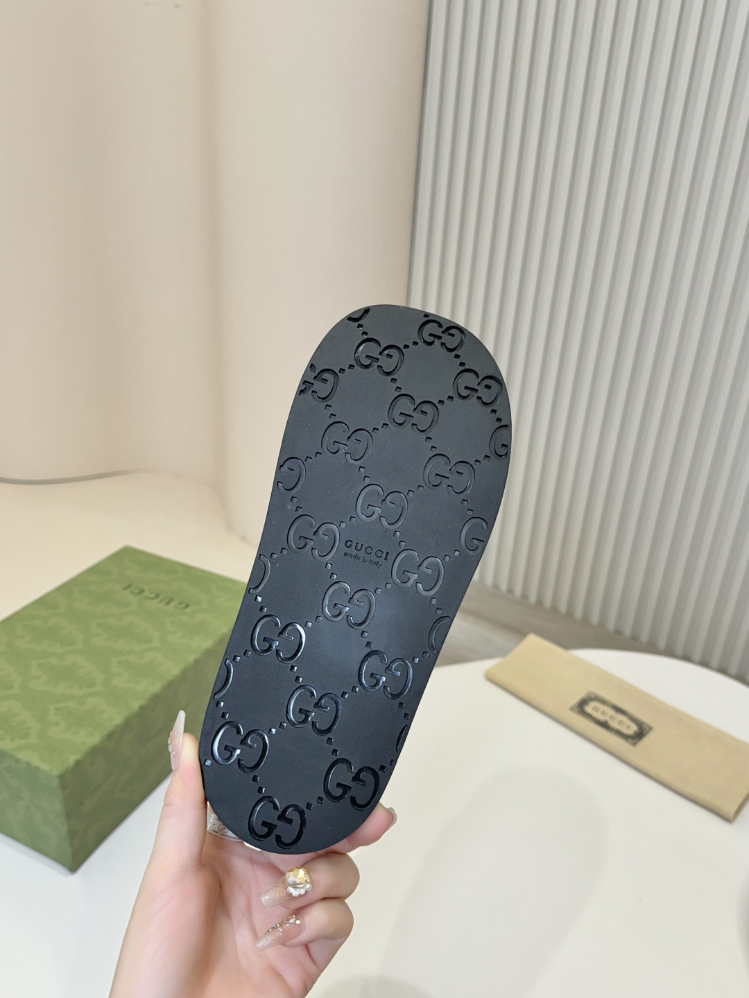 这款鞋子是AAAAA 1:1 质量 (非常棒). 使用了和原版一模一样的材料. 商标部分也保持了和古奇/Gucci一样. 图片拍摄是实物鞋子拍摄, 您所收到的实物保证和我们图片一模一样.