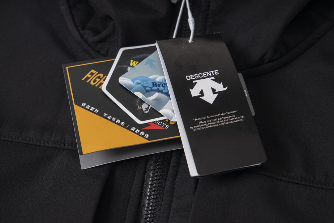这款衣服是AAAAA 1:1 质量 (非常棒). 使用了和原版一模一样的材料. 商标部分也保持了和Descente一样. 图片拍摄是实物衣服拍摄, 您所收到的实物保证和我们图片一模一样.