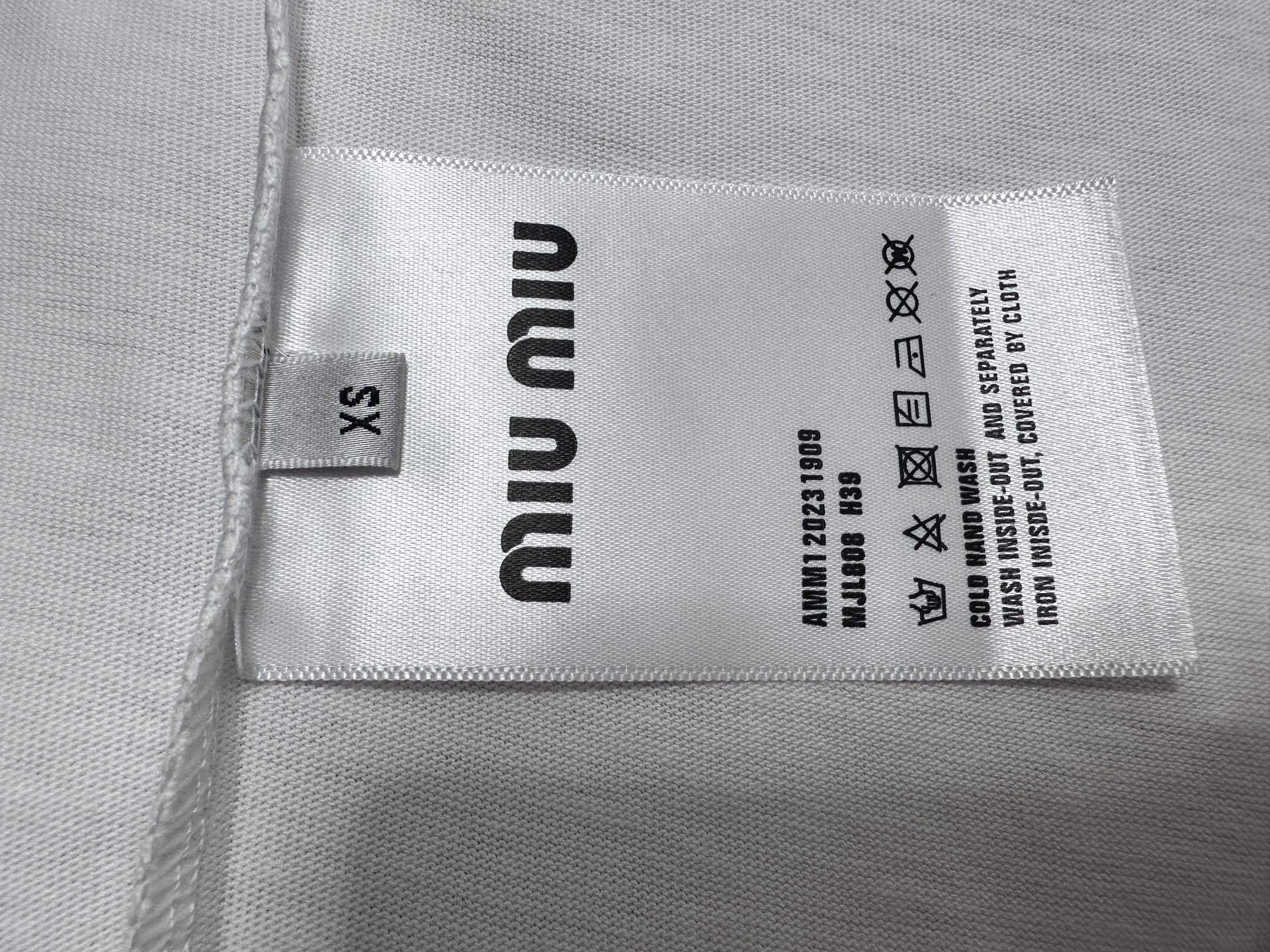 这款衣服是AAAAA 1:1 质量 (非常棒). 使用了和原版一模一样的材料. 商标部分也保持了和缪缪/Miu Miu一样. 图片拍摄是实物衣服拍摄, 您所收到的实物保证和我们图片一模一样.