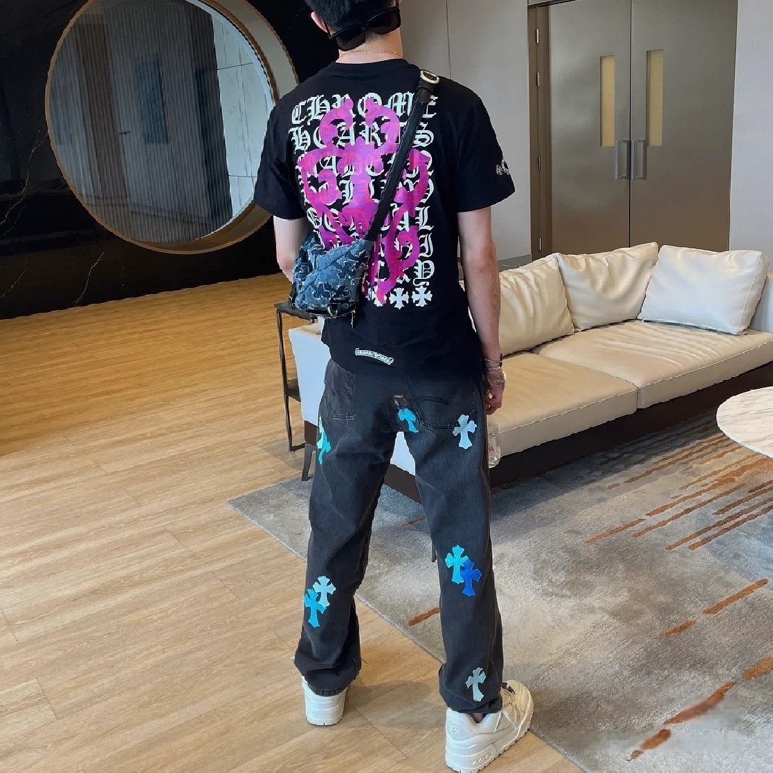 这款衣服是AAAAA 1:1 质量 (非常棒). 使用了和原版一模一样的材料. 商标部分也保持了和克罗心/Chrome Hearts一样. 图片拍摄是实物衣服拍摄, 您所收到的实物保证和我们图片一模一样.
