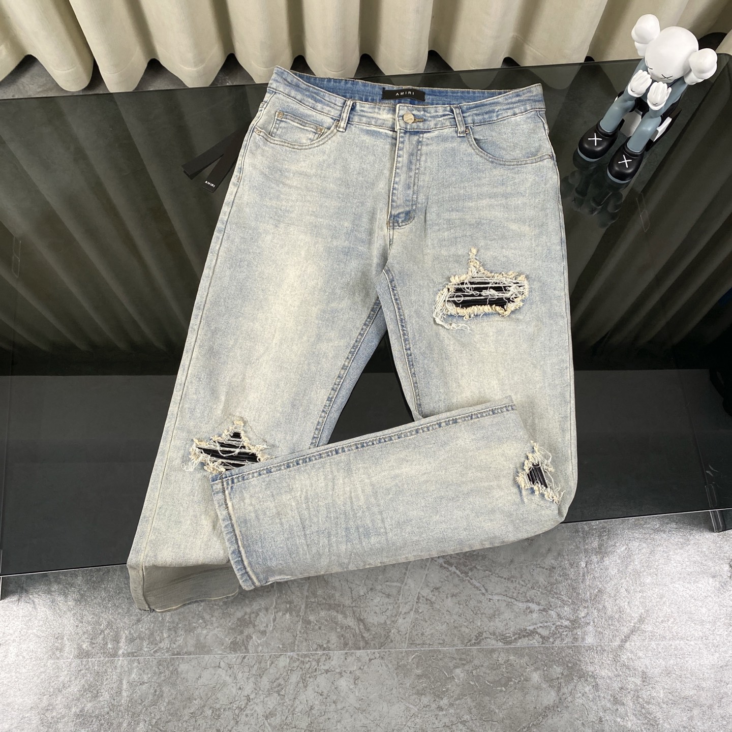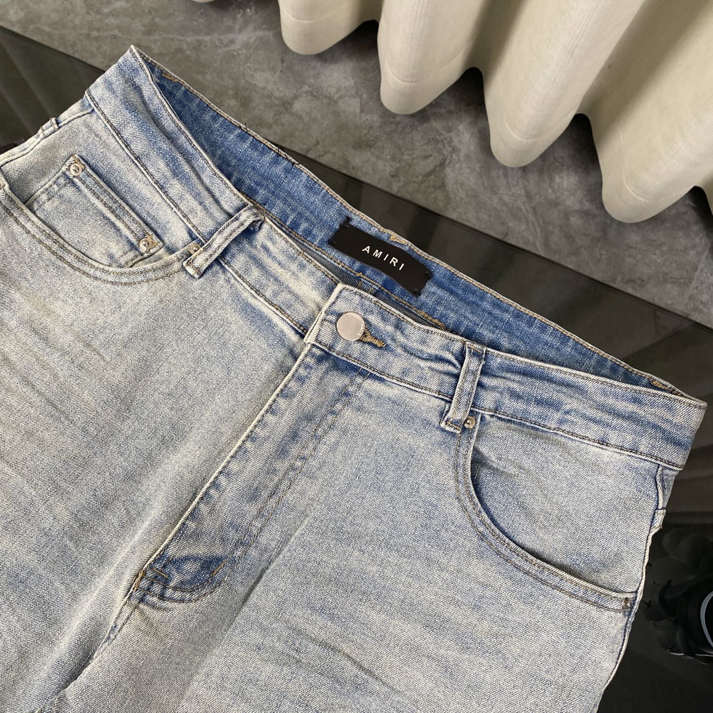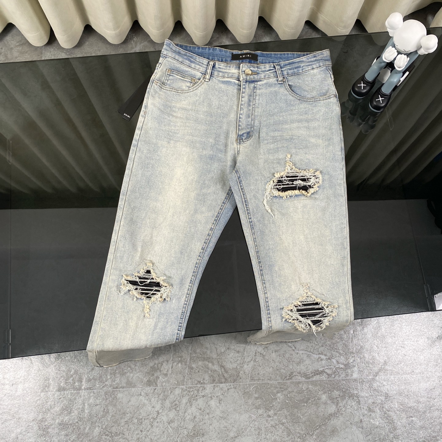 这款衣服是AAAAA 1:1 质量 (非常棒). 使用了和原版一模一样的材料. 商标部分也保持了和AMIRI一样. 图片拍摄是实物衣服拍摄, 您所收到的实物保证和我们图片一模一样.
