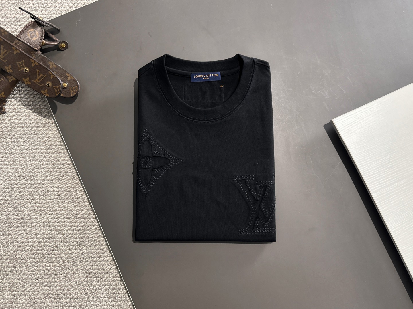 这款衣服是AAAAA 1:1 质量 (非常棒). 使用了和原版一模一样的材料. 商标部分也保持了和路易威登/Louis Vuitton一样. 图片拍摄是实物衣服拍摄, 您所收到的实物保证和我们图片一模一样.