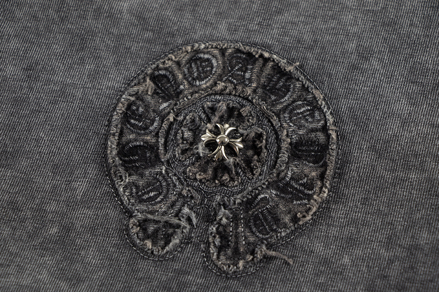 这款衣服是AAAAA 1:1 质量 (非常棒). 使用了和原版一模一样的材料. 商标部分也保持了和克罗心/Chrome Hearts一样. 图片拍摄是实物衣服拍摄, 您所收到的实物保证和我们图片一模一样.