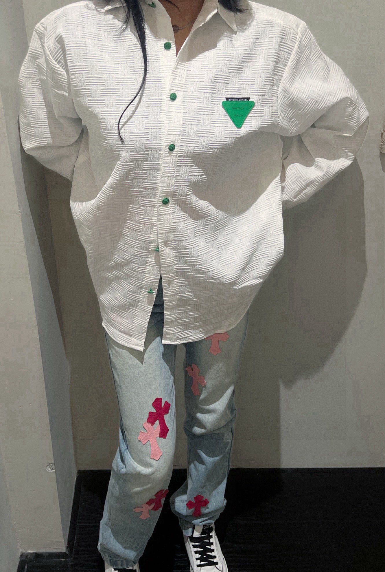 这款衣服是AAAAA 1:1 质量 (非常棒). 使用了和原版一模一样的材料. 商标部分也保持了和葆蝶家/Bottega Veneta一样. 图片拍摄是实物衣服拍摄, 您所收到的实物保证和我们图片一模一样.