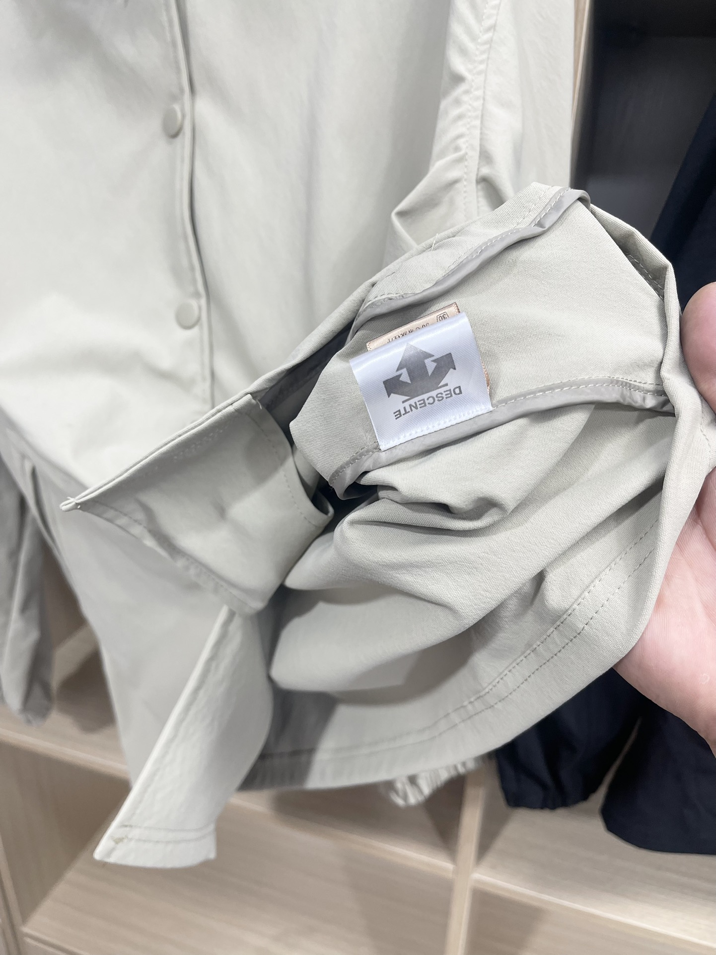 这款衣服是AAAAA 1:1 质量 (非常棒). 使用了和原版一模一样的材料. 商标部分也保持了和Descente一样. 图片拍摄是实物衣服拍摄, 您所收到的实物保证和我们图片一模一样.