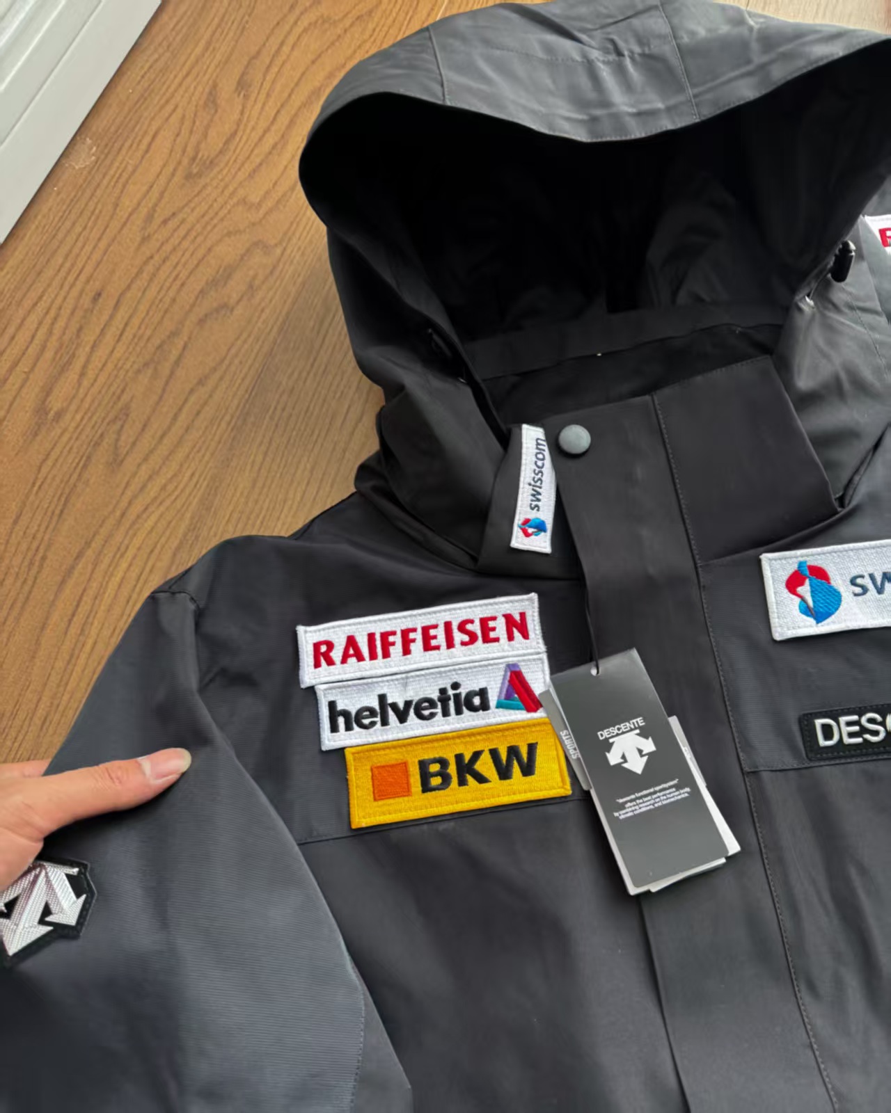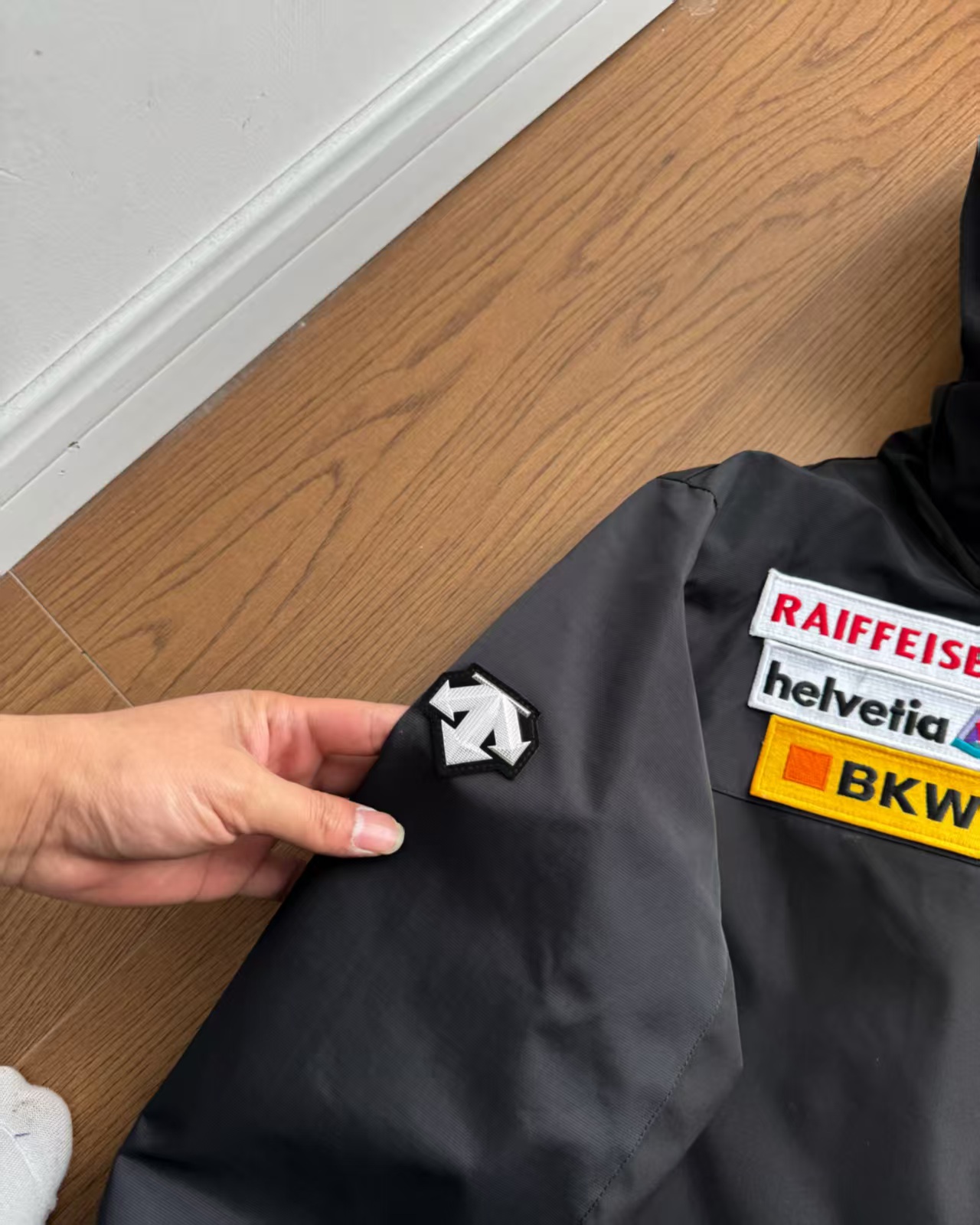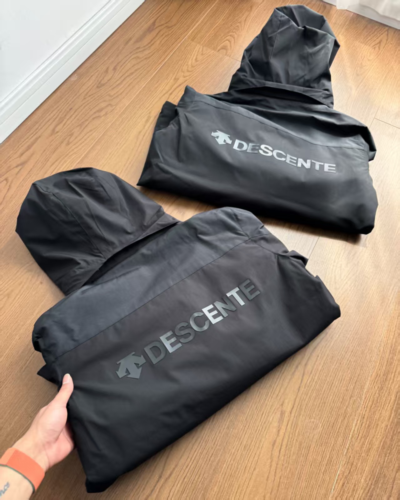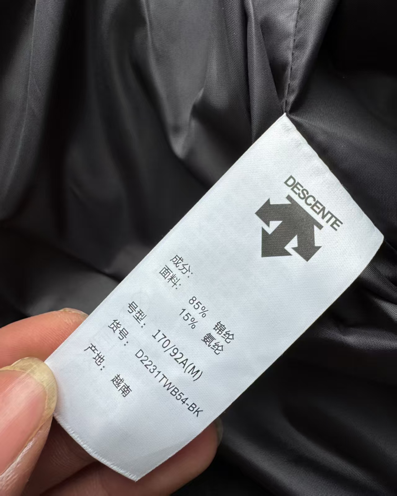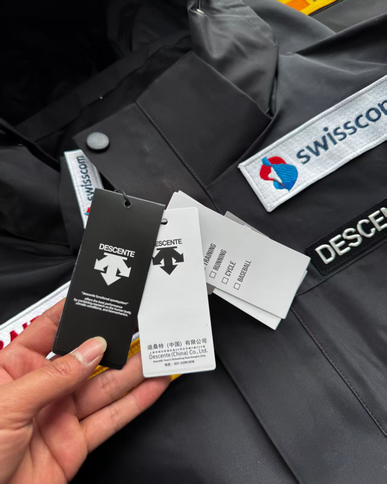 这款衣服是AAAAA 1:1 质量 (非常棒). 使用了和原版一模一样的材料. 商标部分也保持了和Descente一样. 图片拍摄是实物衣服拍摄, 您所收到的实物保证和我们图片一模一样.