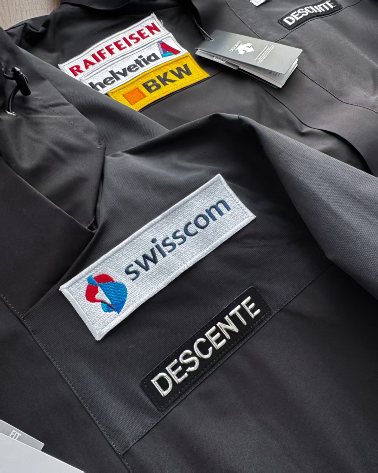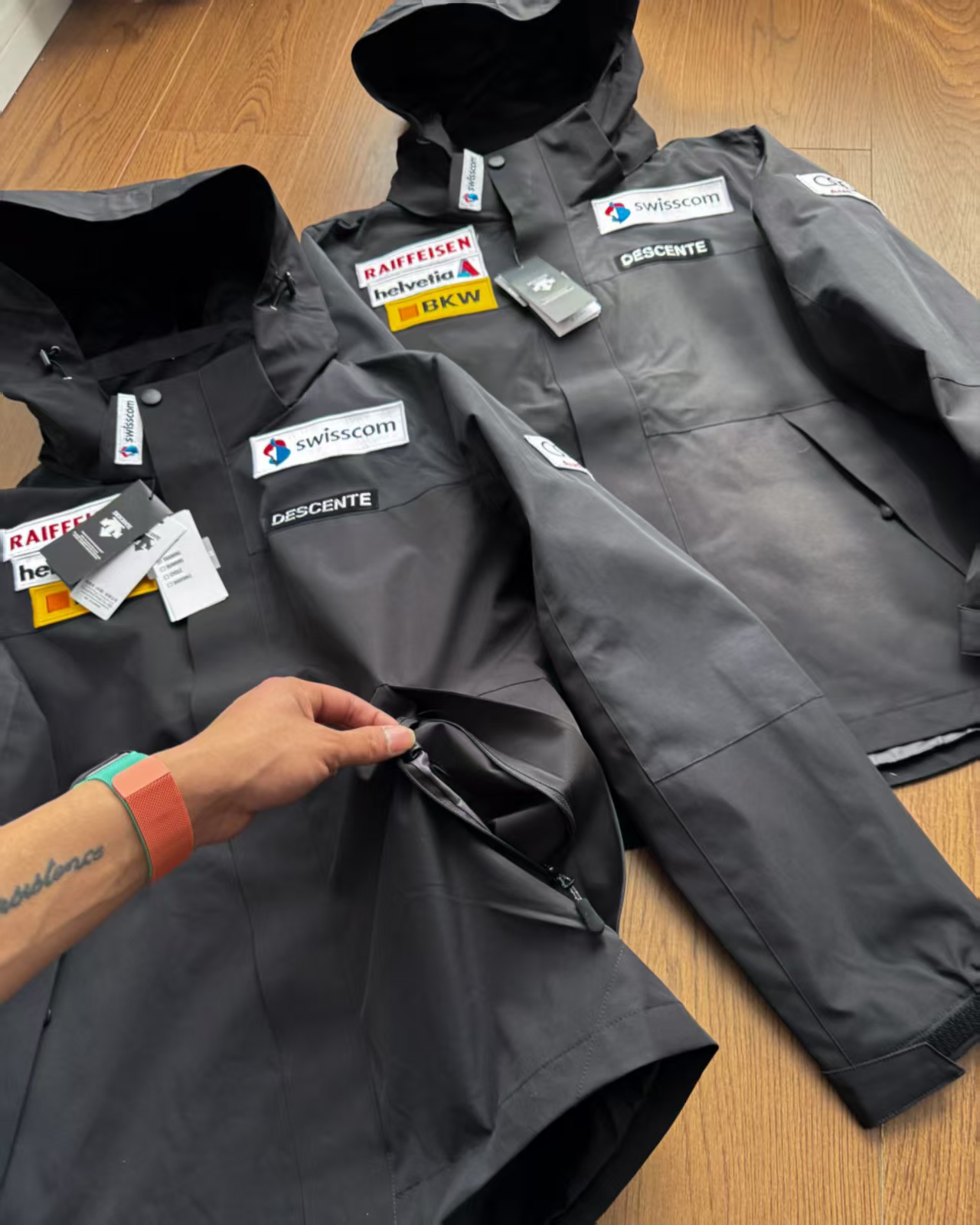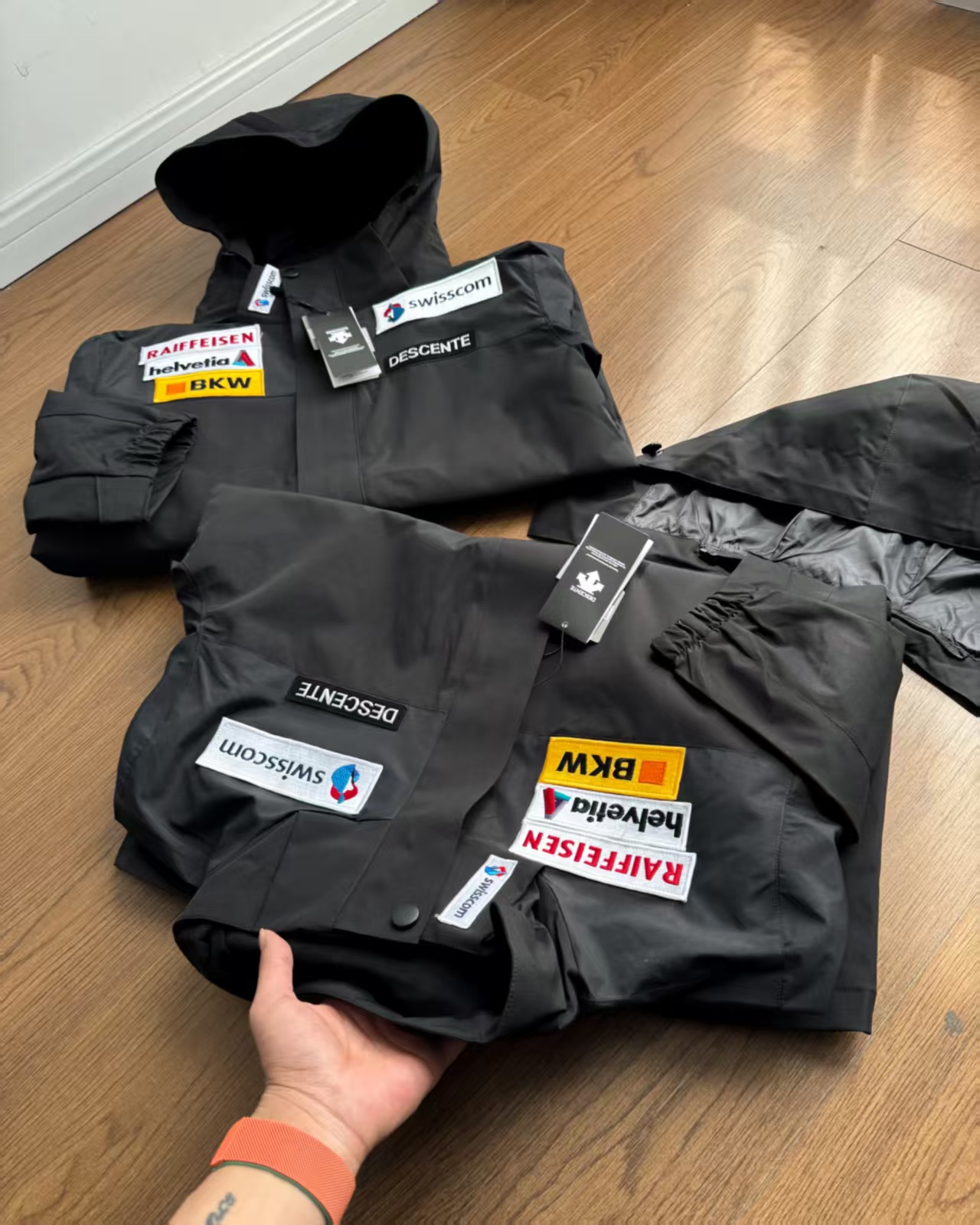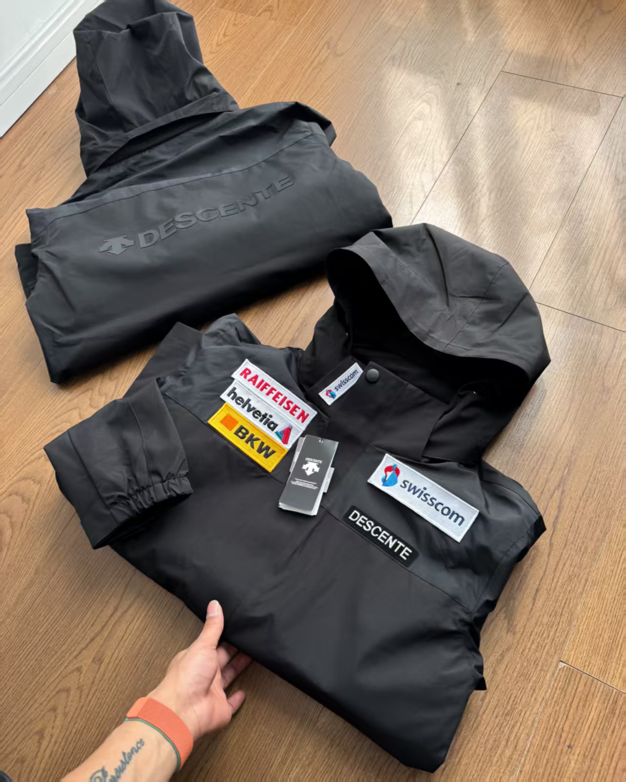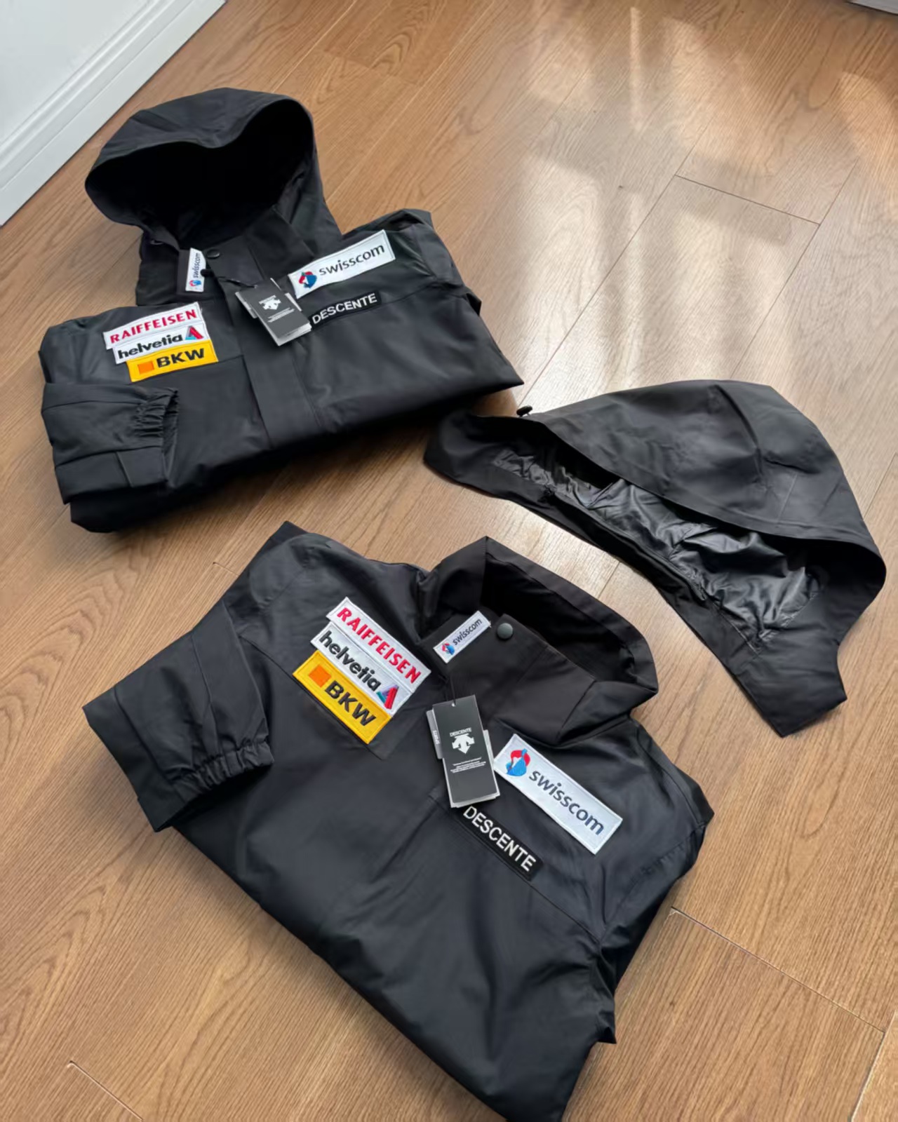 这款衣服是AAAAA 1:1 质量 (非常棒). 使用了和原版一模一样的材料. 商标部分也保持了和Descente一样. 图片拍摄是实物衣服拍摄, 您所收到的实物保证和我们图片一模一样.