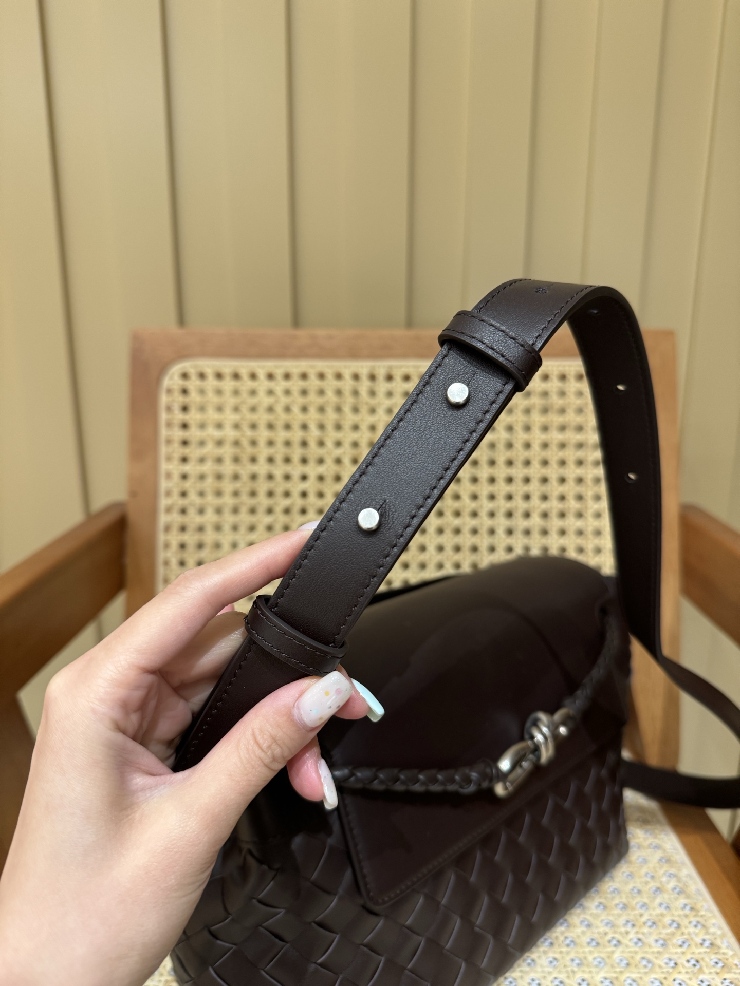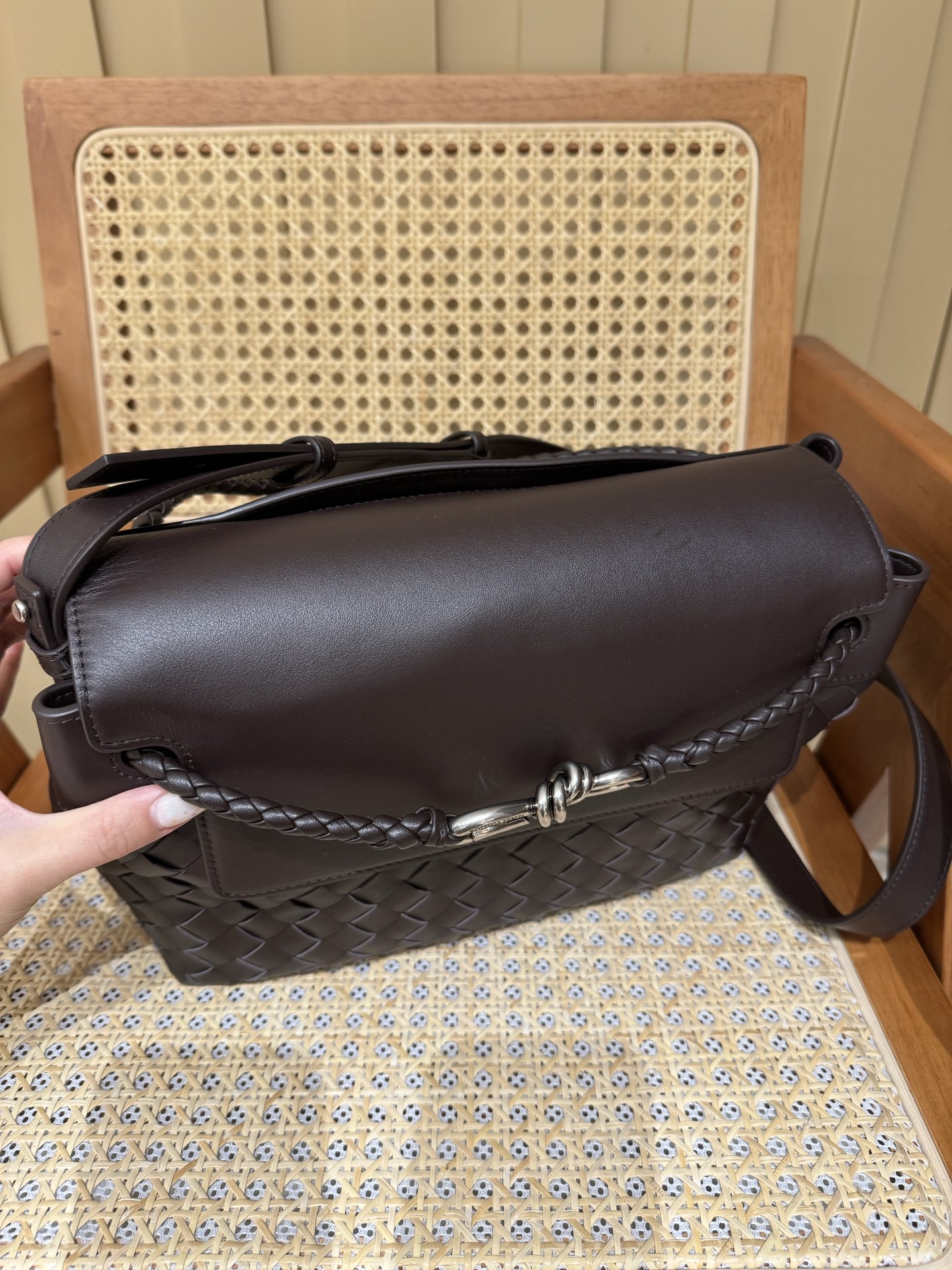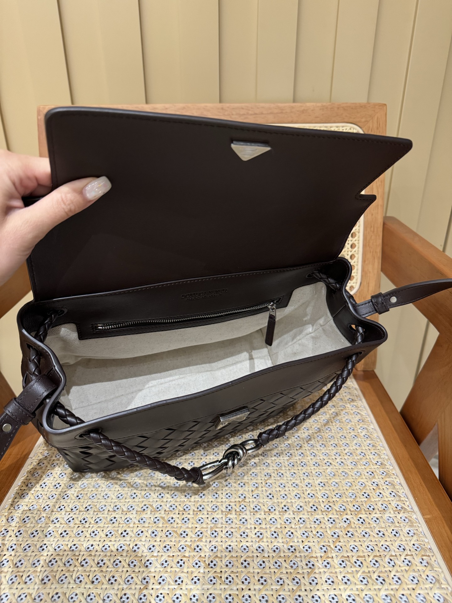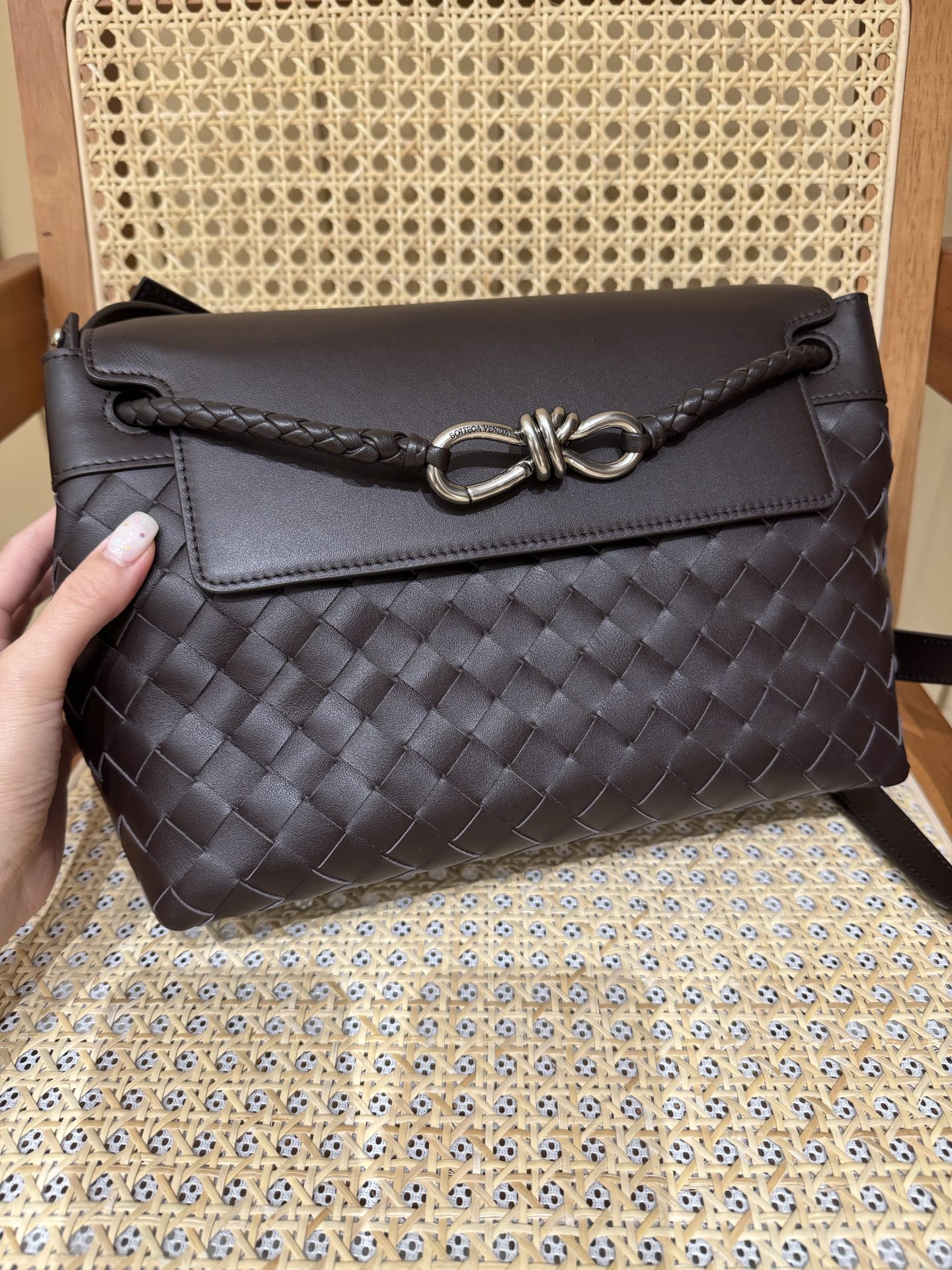 这款包包是AAAAA 1:1 质量 (非常棒). 使用了和原版一模一样的材料. 商标部分也保持了和葆蝶家/Bottega Veneta一样. 图片拍摄是实物包包拍摄, 您所收到的实物保证和我们图片一模一样.