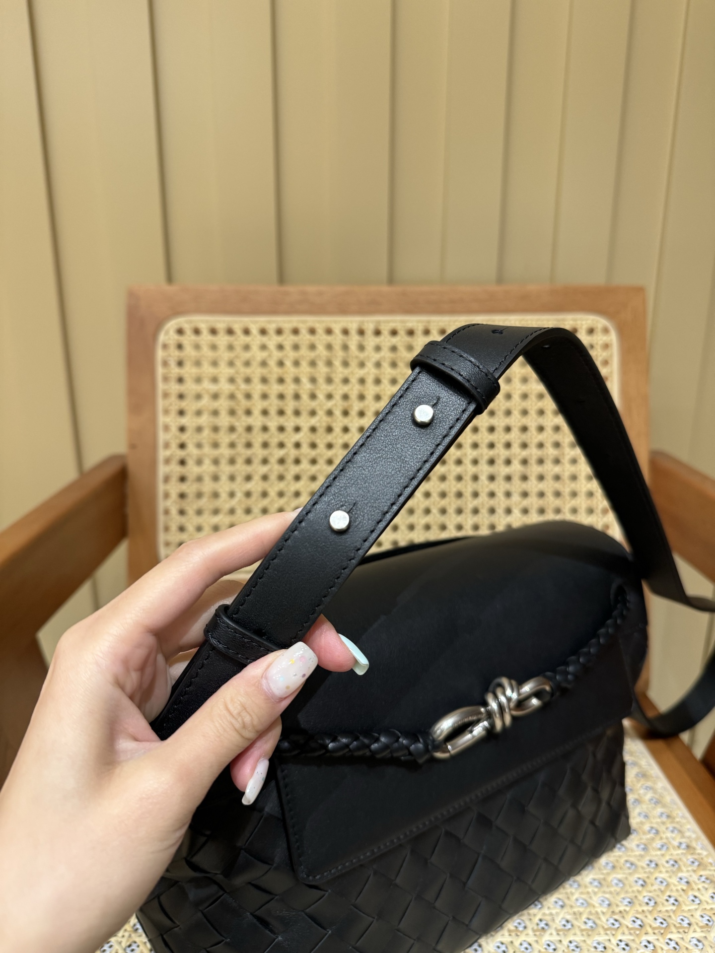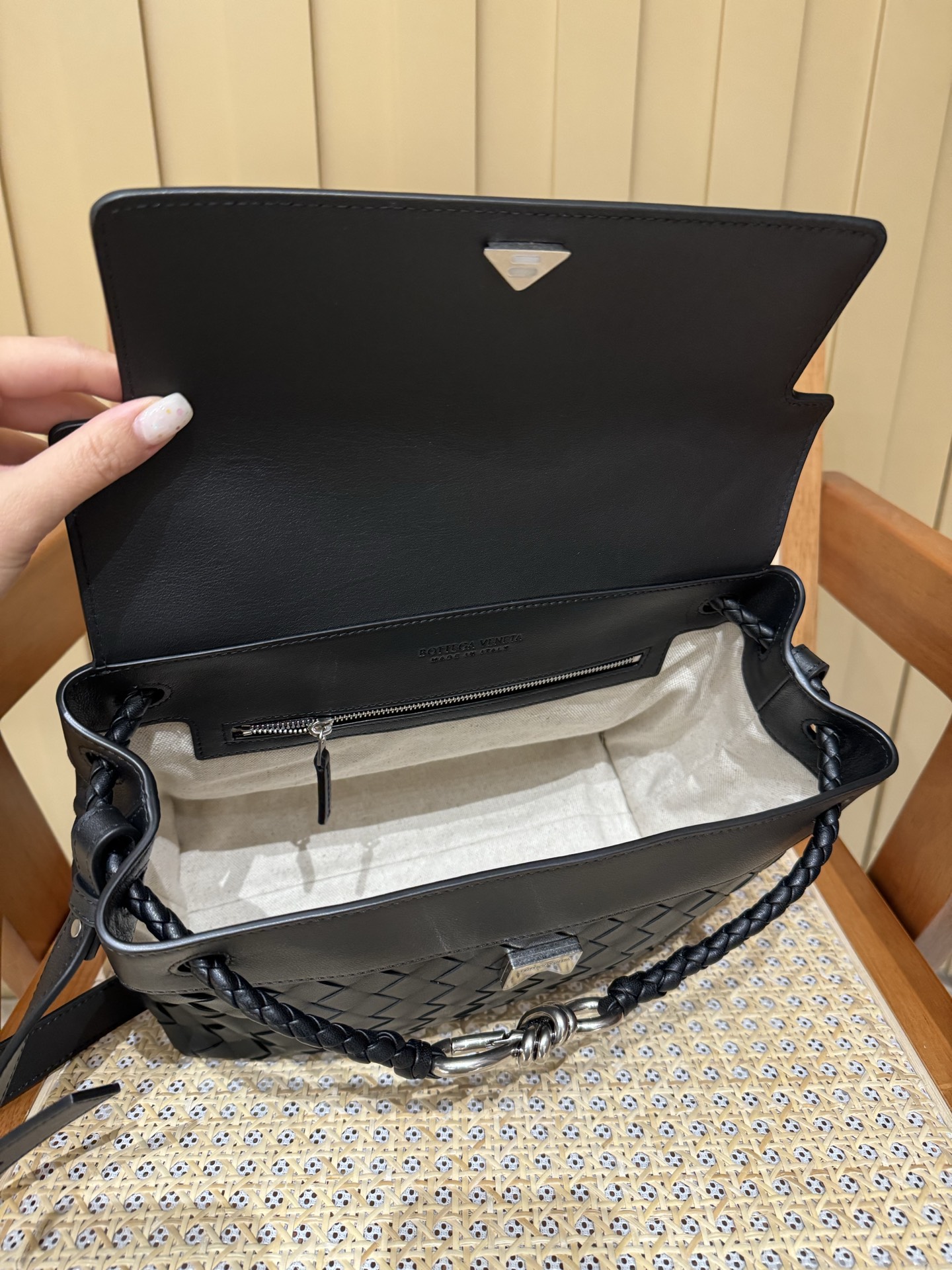 这款包包是AAAAA 1:1 质量 (非常棒). 使用了和原版一模一样的材料. 商标部分也保持了和葆蝶家/Bottega Veneta一样. 图片拍摄是实物包包拍摄, 您所收到的实物保证和我们图片一模一样.