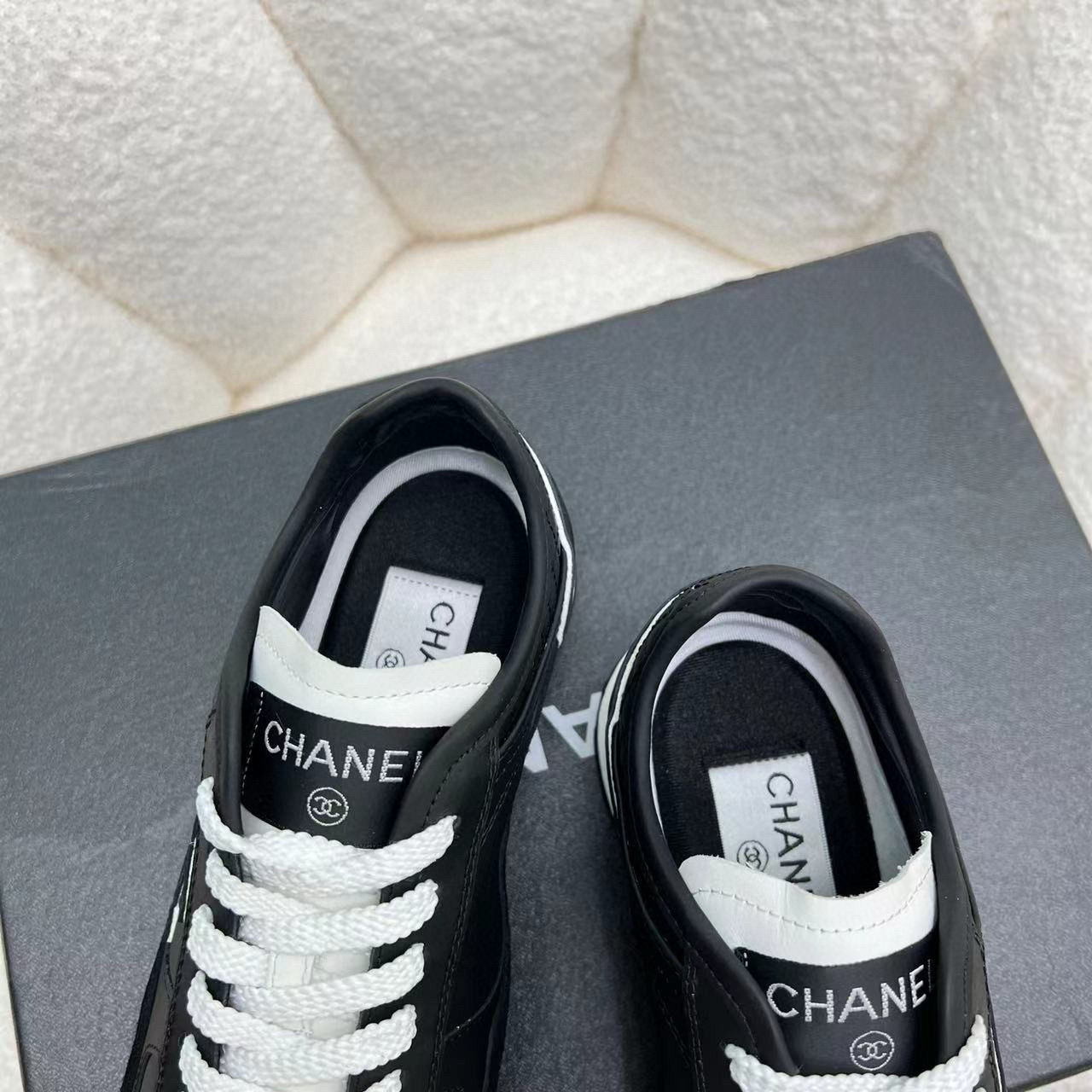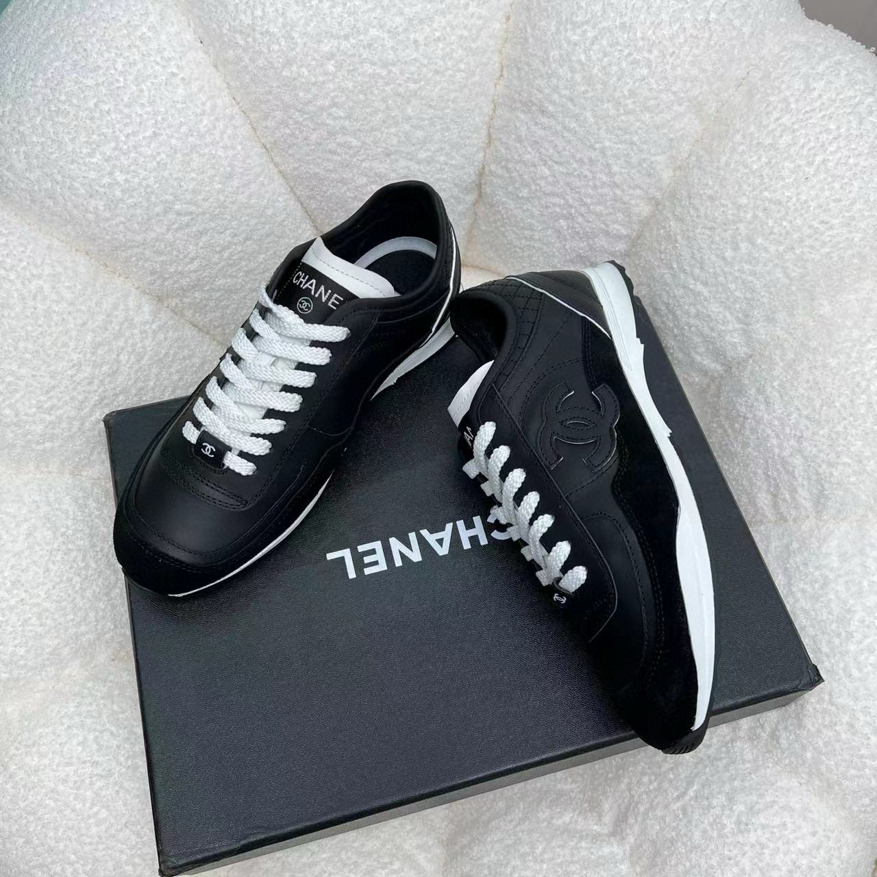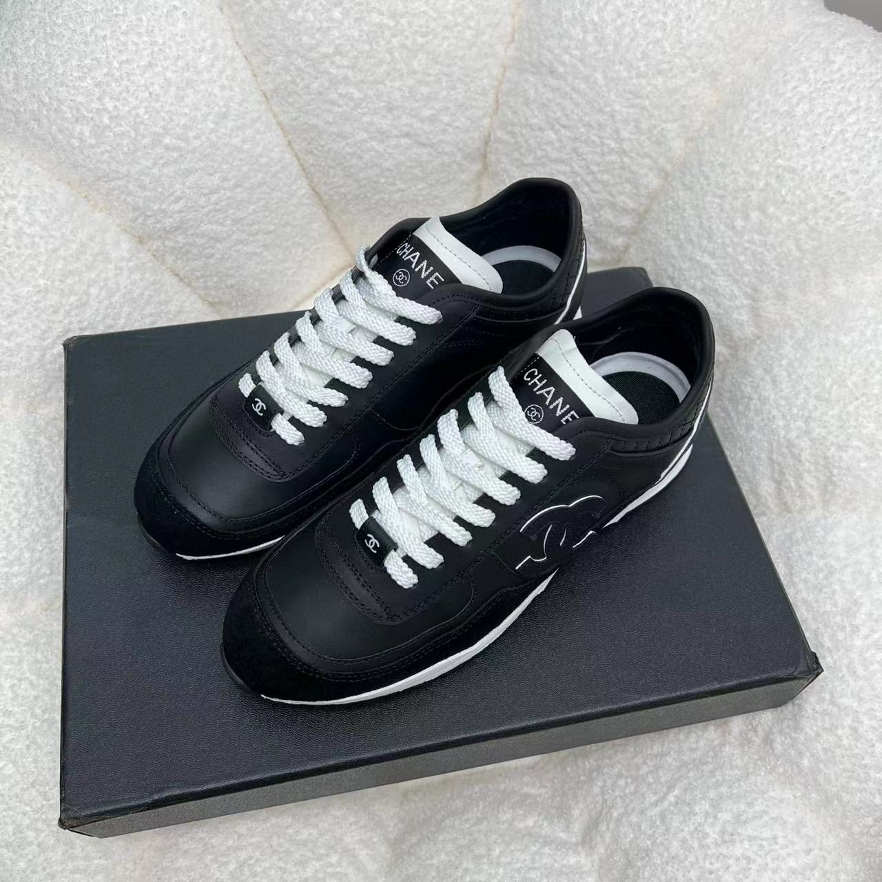 这款鞋子是AAAAA 1:1 质量 (非常棒). 使用了和原版一模一样的材料. 商标部分也保持了和香奈儿/Chanel一样. 图片拍摄是实物鞋子拍摄, 您所收到的实物保证和我们图片一模一样.
