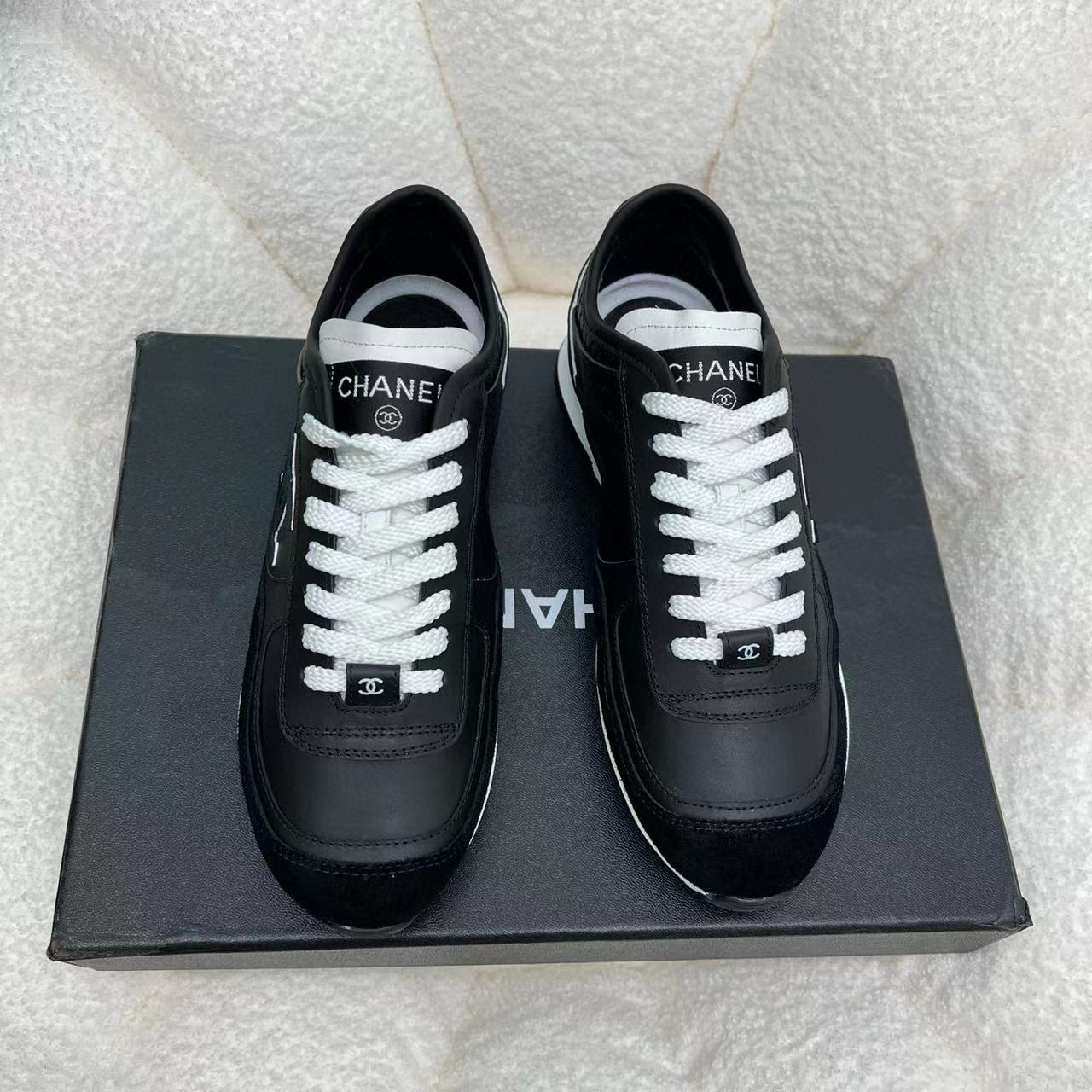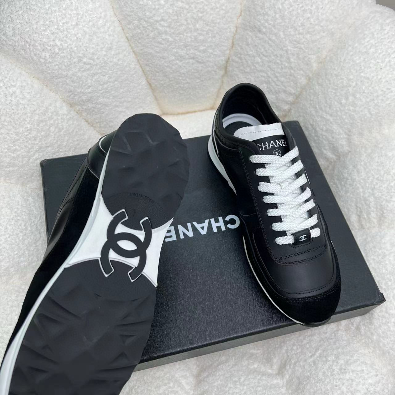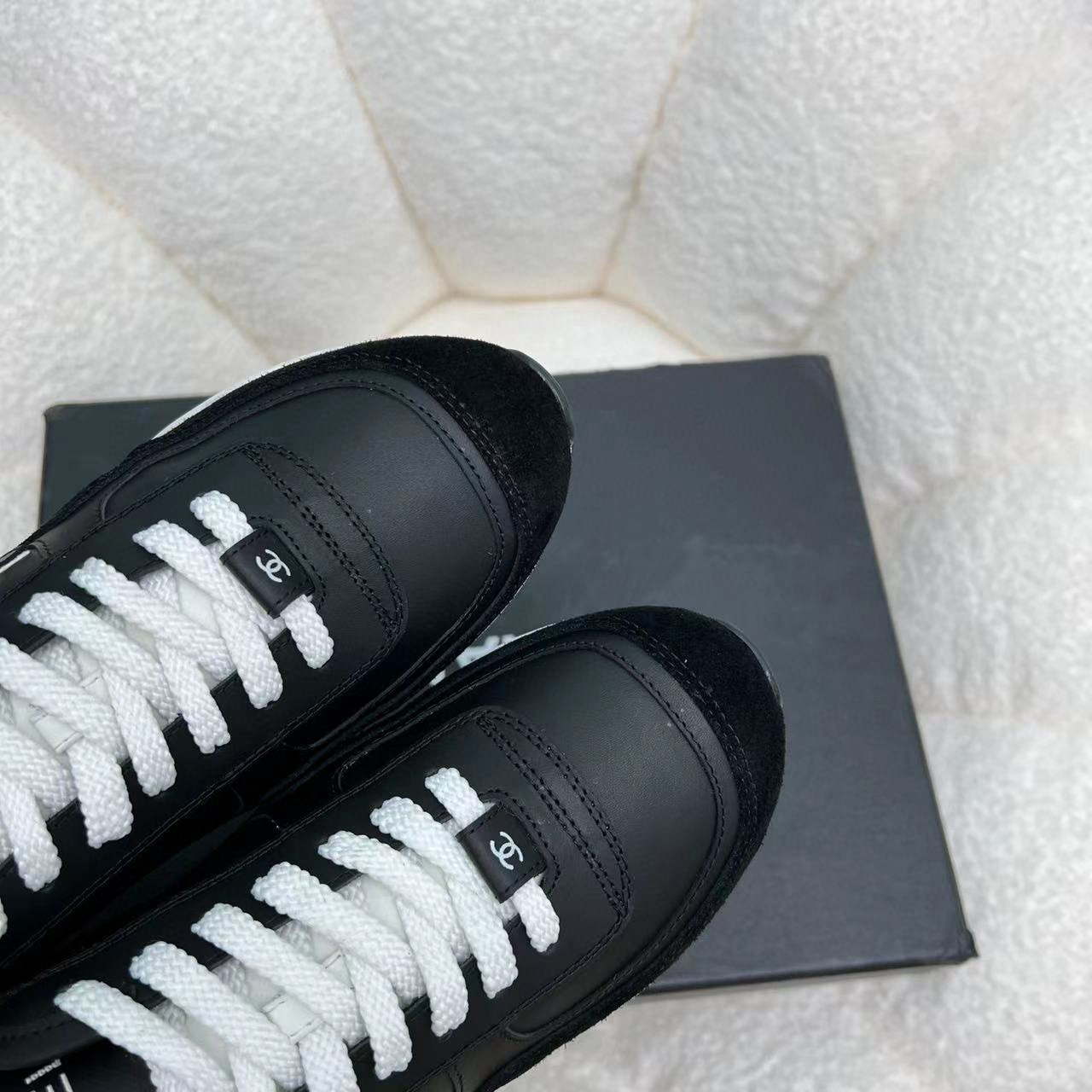 这款鞋子是AAAAA 1:1 质量 (非常棒). 使用了和原版一模一样的材料. 商标部分也保持了和香奈儿/Chanel一样. 图片拍摄是实物鞋子拍摄, 您所收到的实物保证和我们图片一模一样.