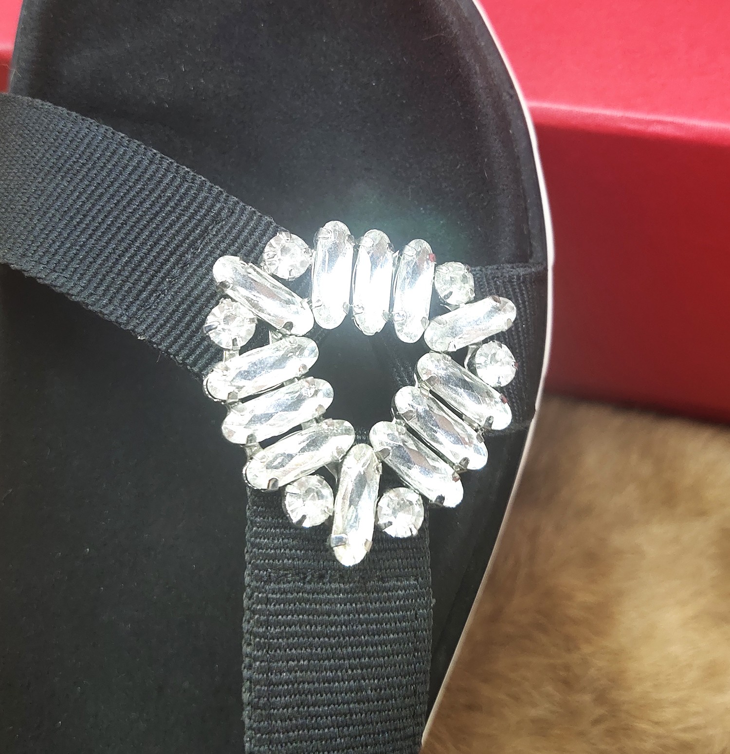 这款鞋子是AAAAA 1:1 质量 (非常棒). 使用了和原版一模一样的材料. 商标部分也保持了和罗杰维维耶/Roger Vivier一样. 图片拍摄是实物鞋子拍摄, 您所收到的实物保证和我们图片一模一样.