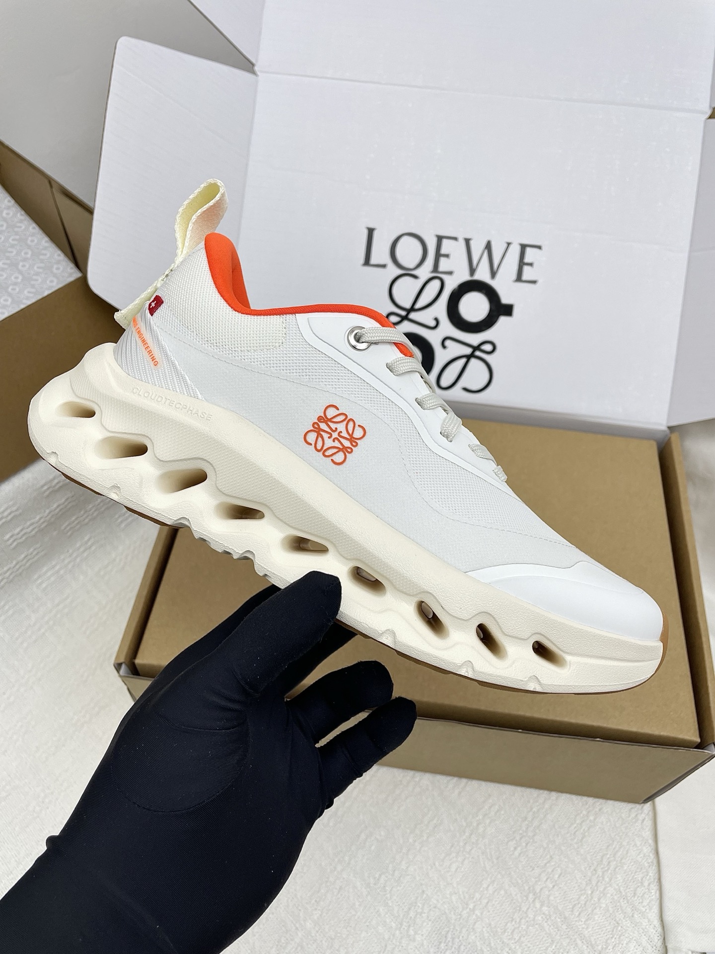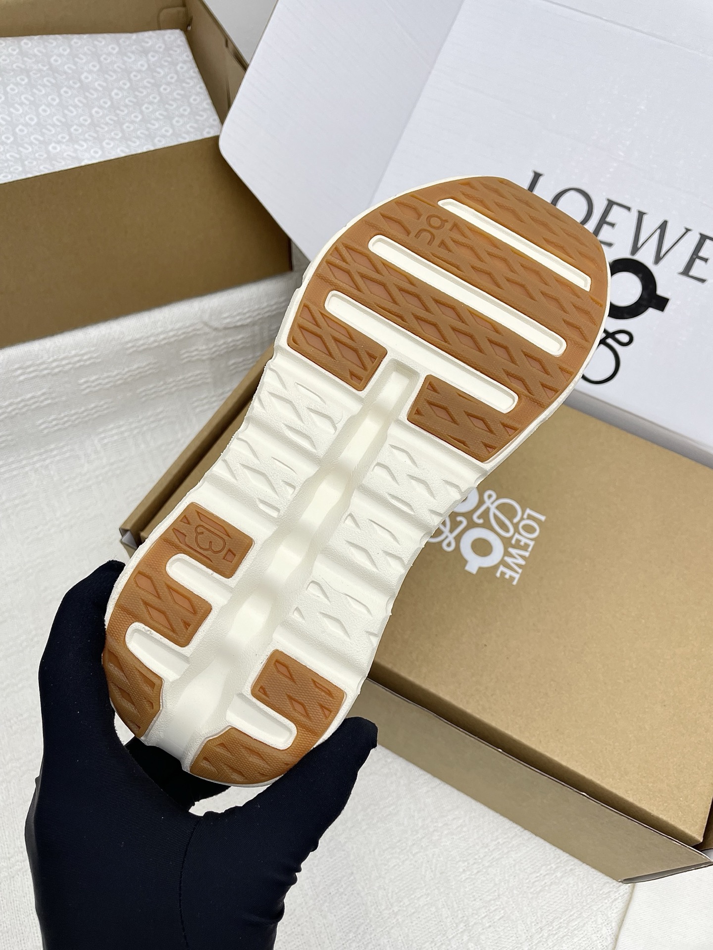 这款鞋子是AAAAA 1:1 质量 (非常棒). 使用了和原版一模一样的材料. 商标部分也保持了和罗意威/Loewe一样. 图片拍摄是实物鞋子拍摄, 您所收到的实物保证和我们图片一模一样.