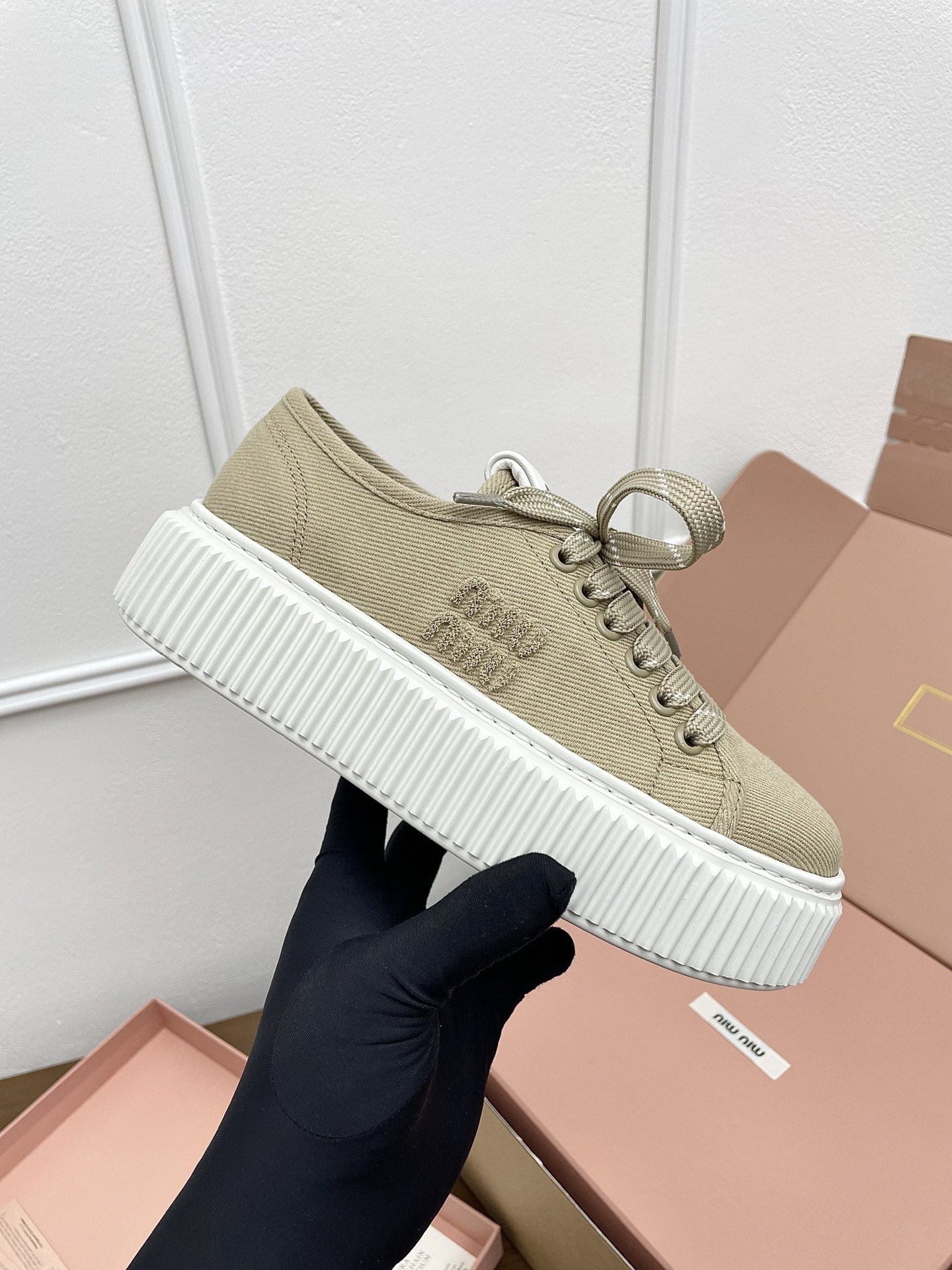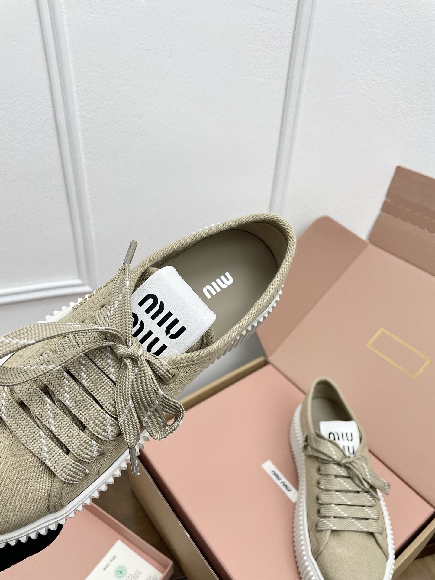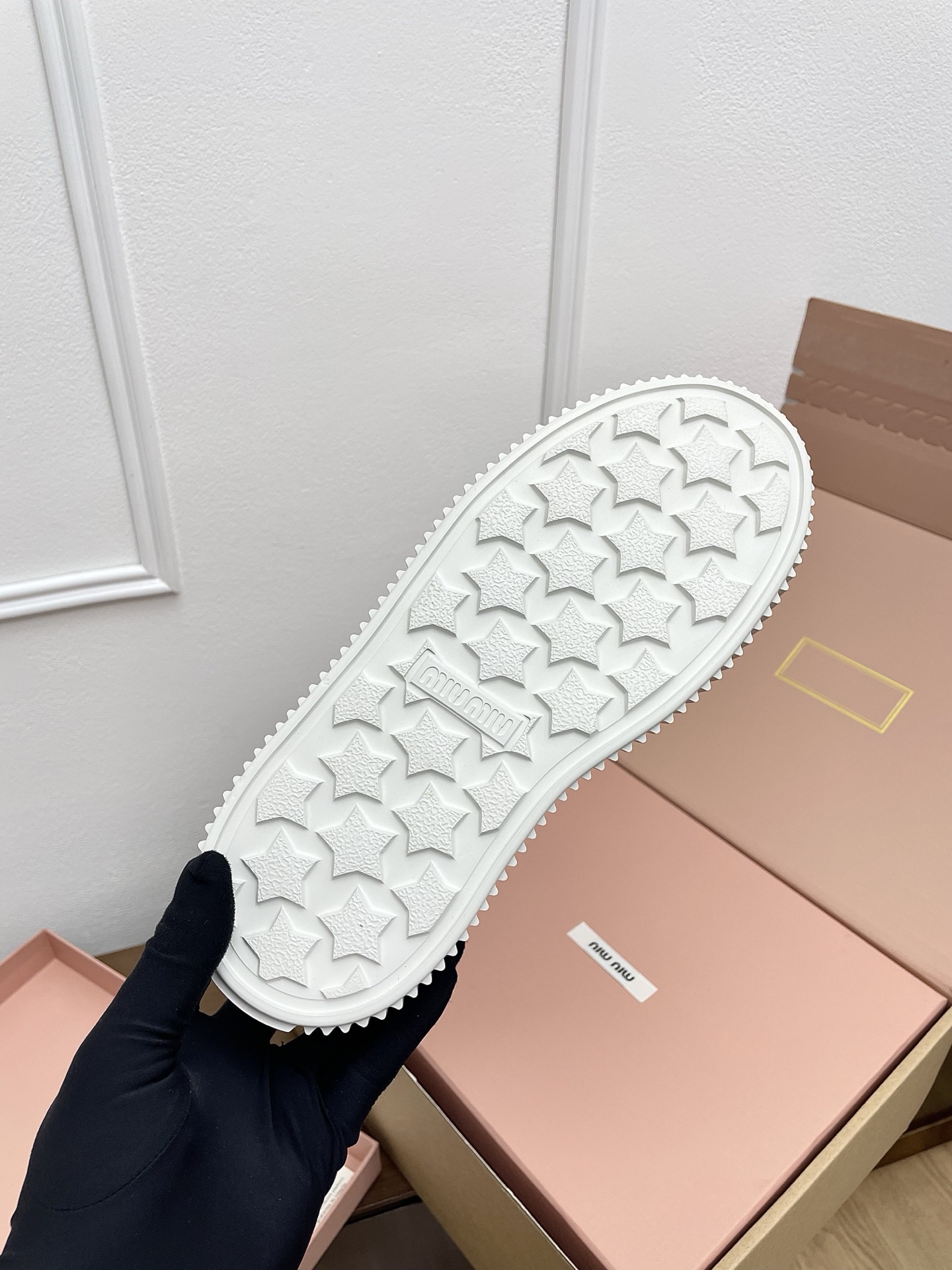 这款鞋子是AAAAA 1:1 质量 (非常棒). 使用了和原版一模一样的材料. 商标部分也保持了和缪缪/Miu Miu一样. 图片拍摄是实物鞋子拍摄, 您所收到的实物保证和我们图片一模一样.