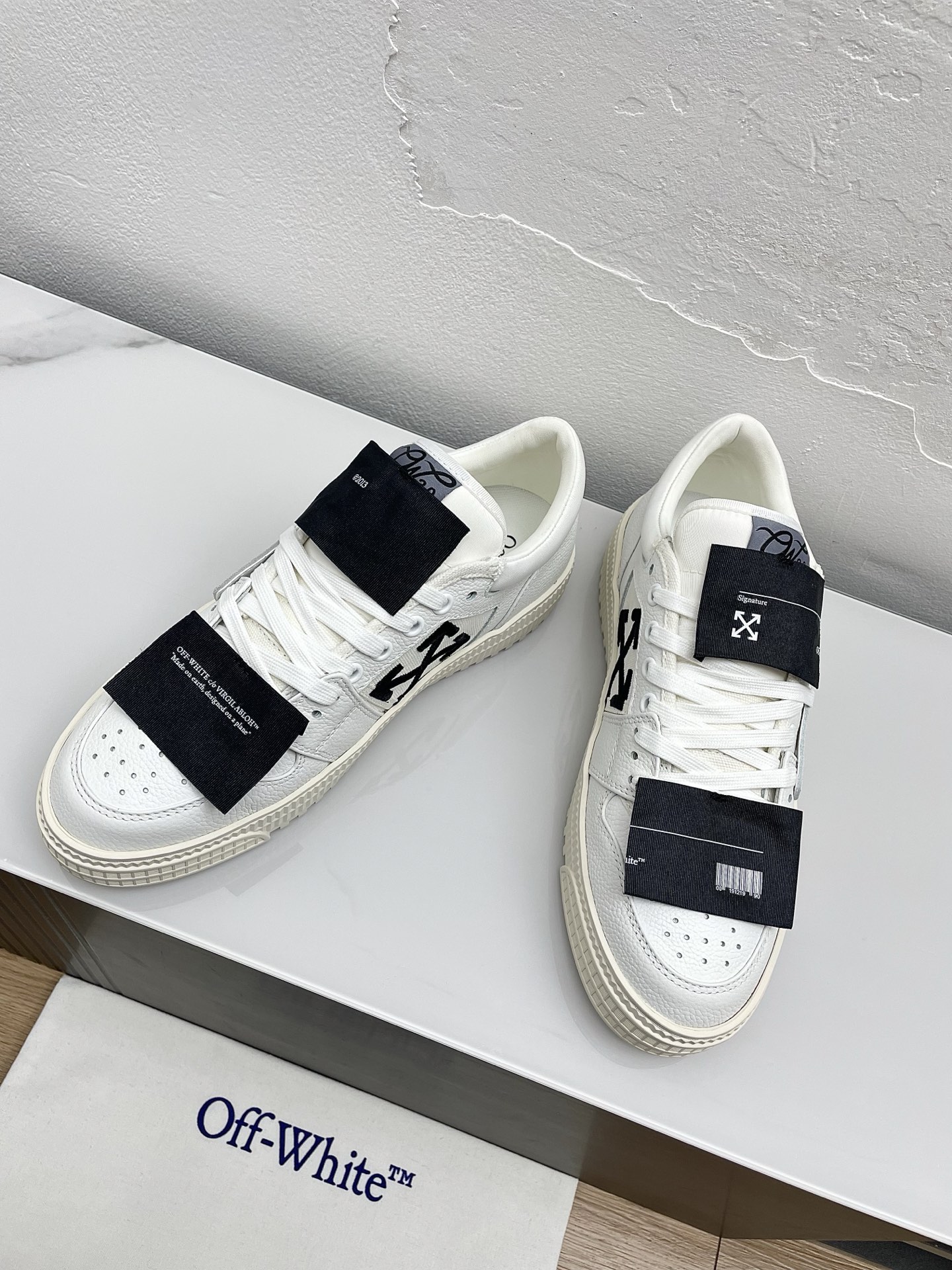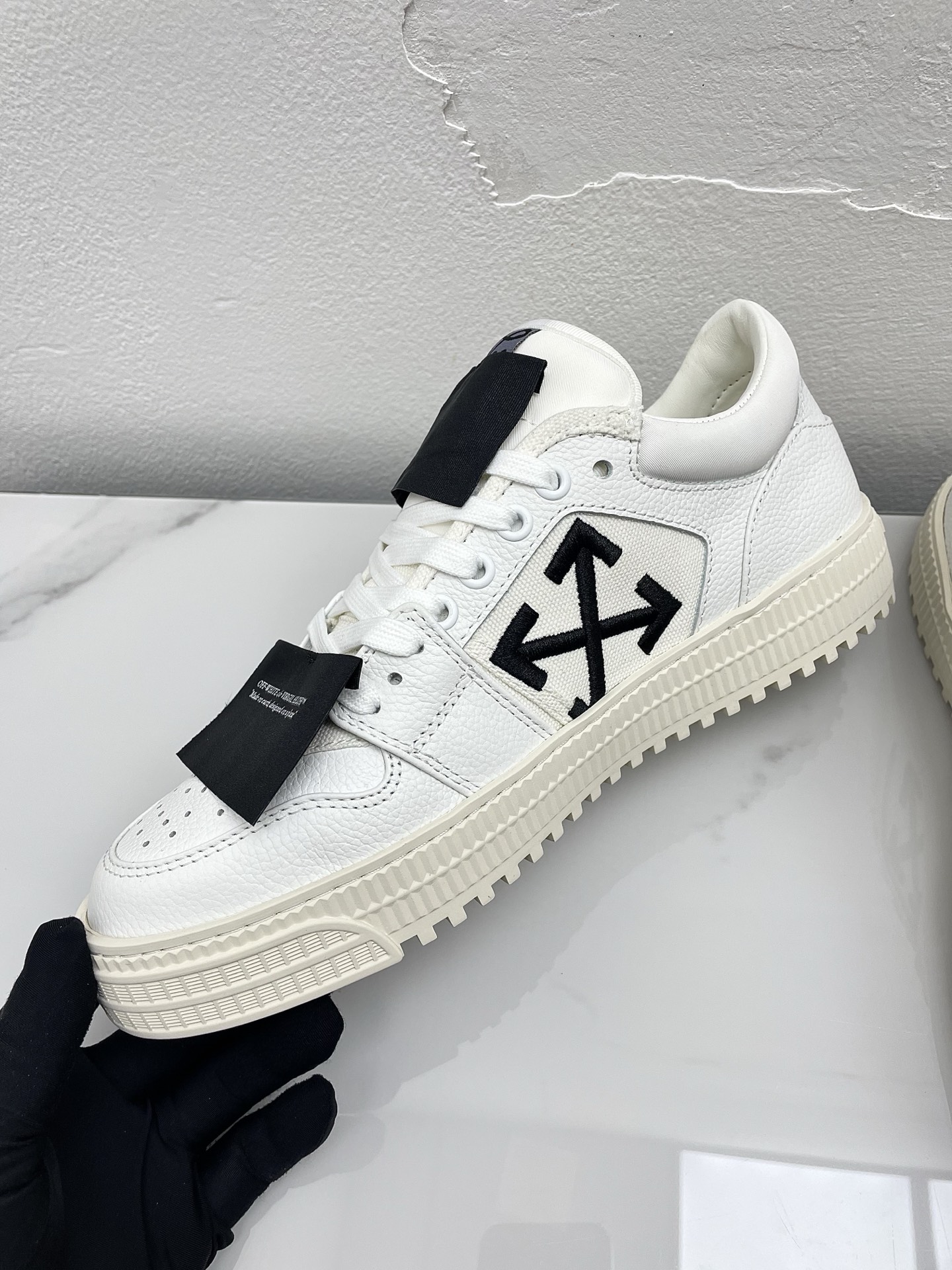这款鞋子是AAAAA 1:1 质量 (非常棒). 使用了和原版一模一样的材料. 商标部分也保持了和OFF WHITE一样. 图片拍摄是实物鞋子拍摄, 您所收到的实物保证和我们图片一模一样.