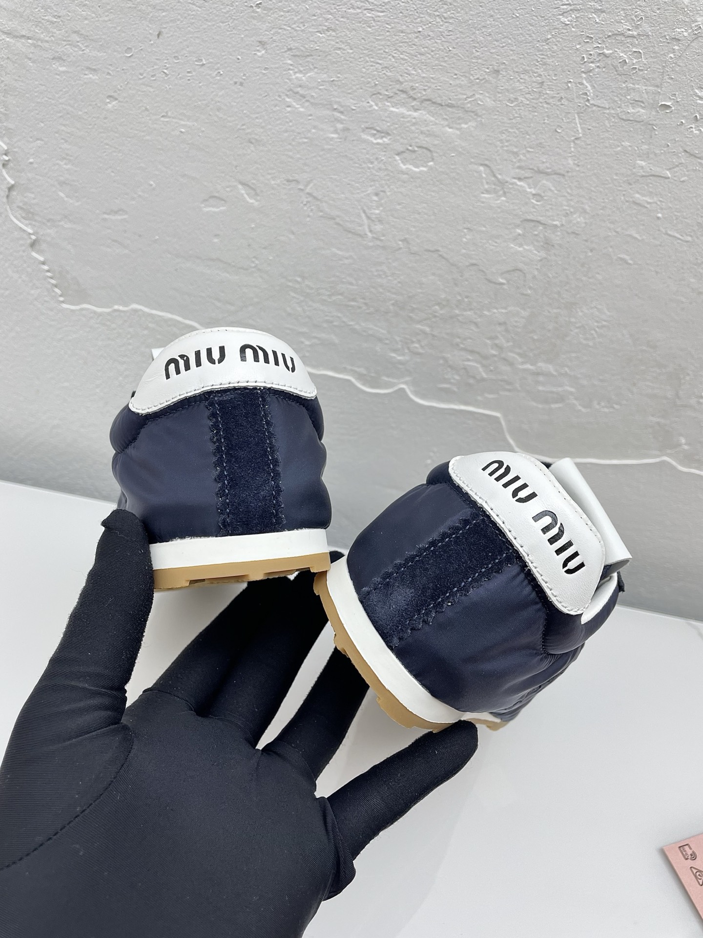 这款鞋子是AAAAA 1:1 质量 (非常棒). 使用了和原版一模一样的材料. 商标部分也保持了和缪缪/Miu Miu一样. 图片拍摄是实物鞋子拍摄, 您所收到的实物保证和我们图片一模一样.